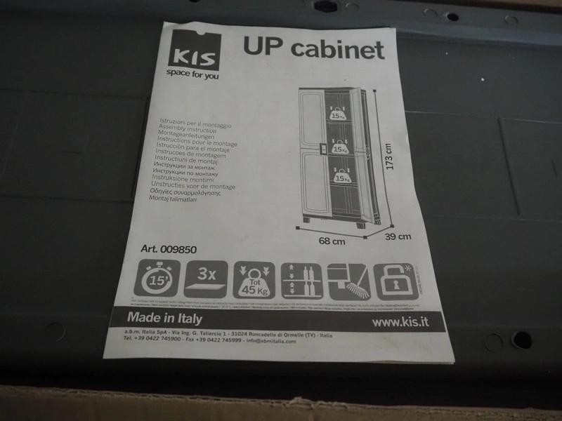 KIS plastic cabinet, dimensions: 680 mm x 390 mm x 1730 mm, box dimensions: 800 mm x 400 mm x 300 mm.