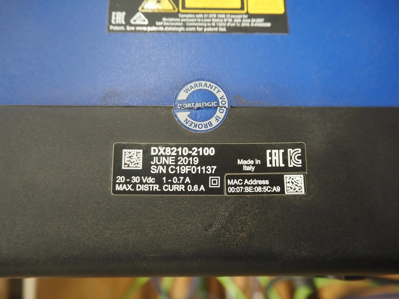 Datalogic barcode scanner, model: DX 8210-2100, serial number: C19F01137, year of construction: June 2019, dimensions: 380 mm x 335 mm.