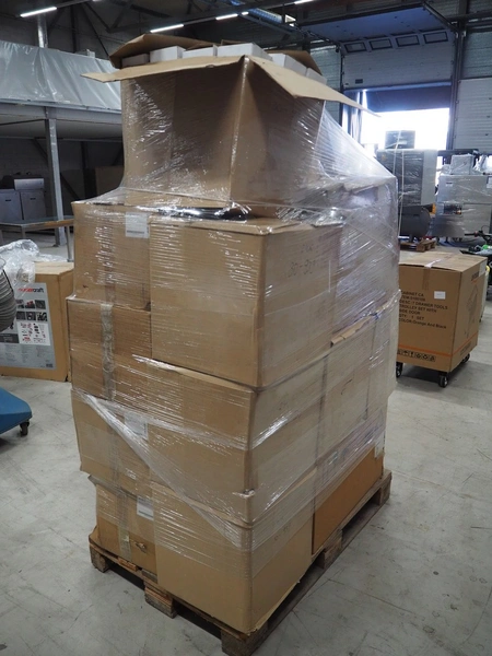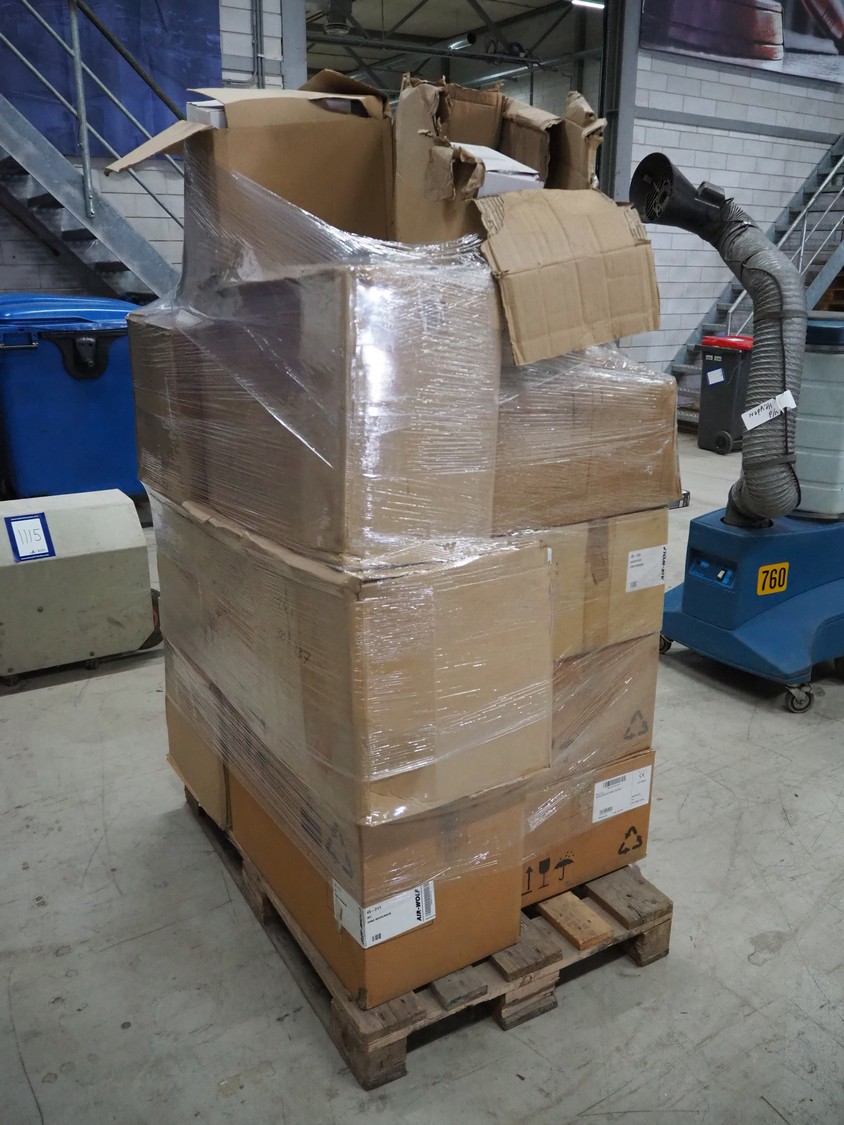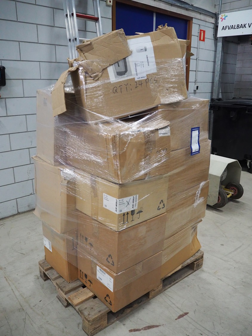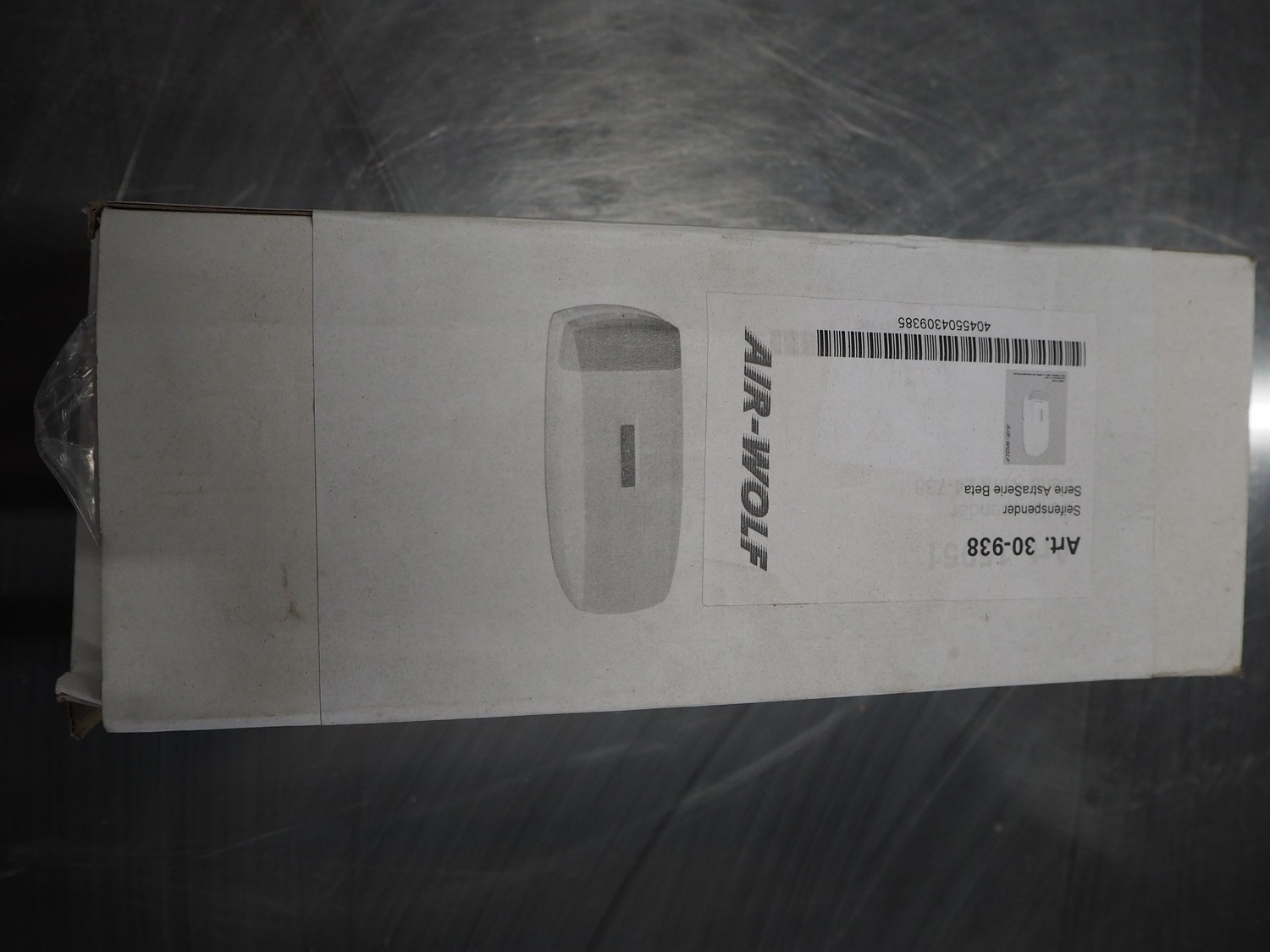 Pallet with 17 boxes with Air-Wolf soap dispensers, dimensions each dispenser: 290 mm x 110 mm x 110 mm, total dimensions: 1200 mm x 800 mm x 1850 mm.