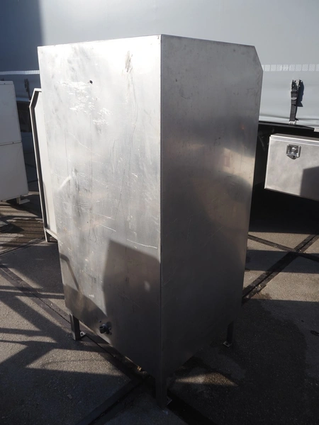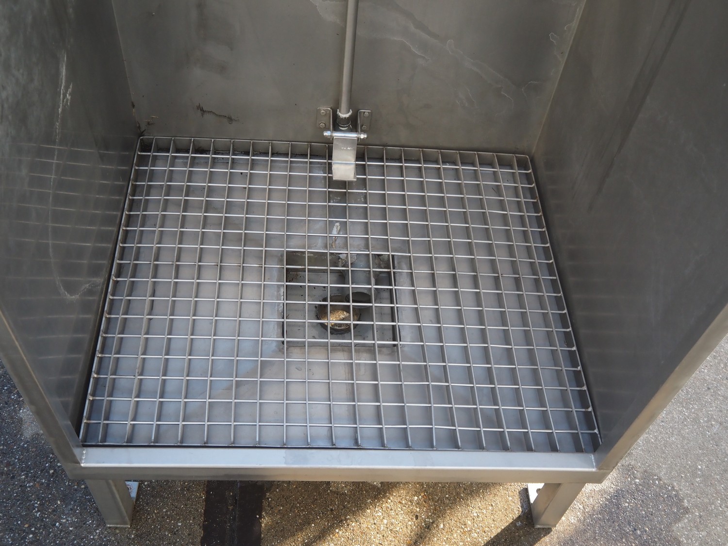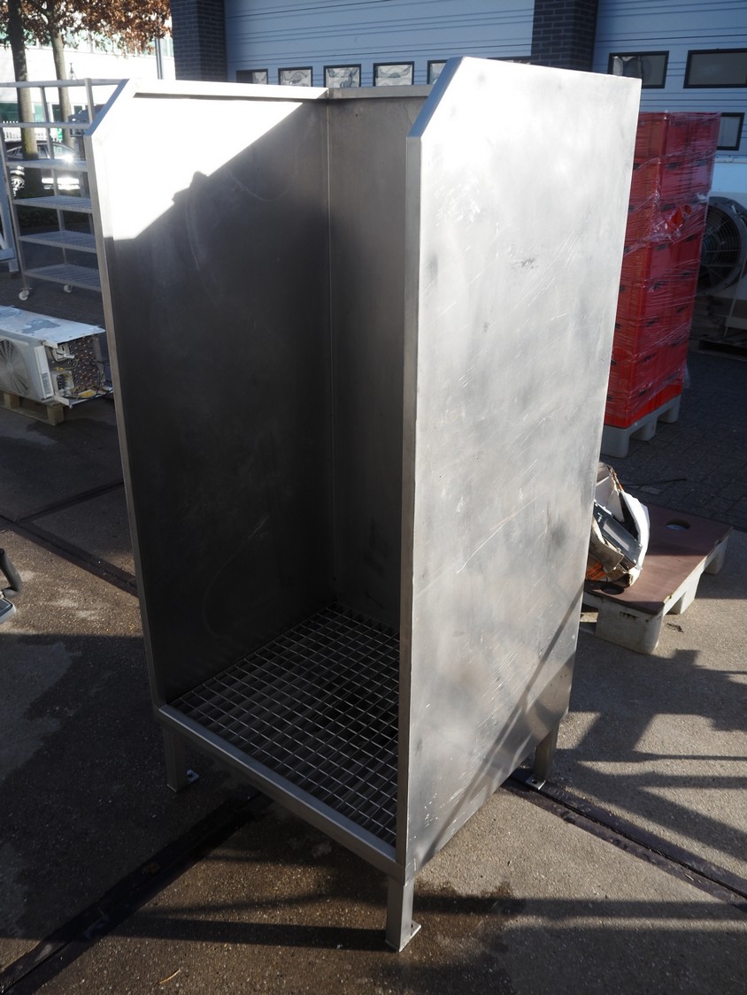 S/s apron washer, dimensions: 750 mm x 800 mm x 1700 mm.