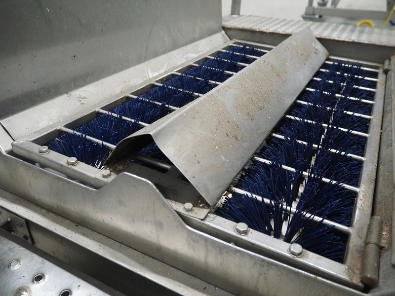 Sole cleaner, brush length: (2x) 800 mm, total dimensions: 2100 mm x 820 mm x 1230 mm.