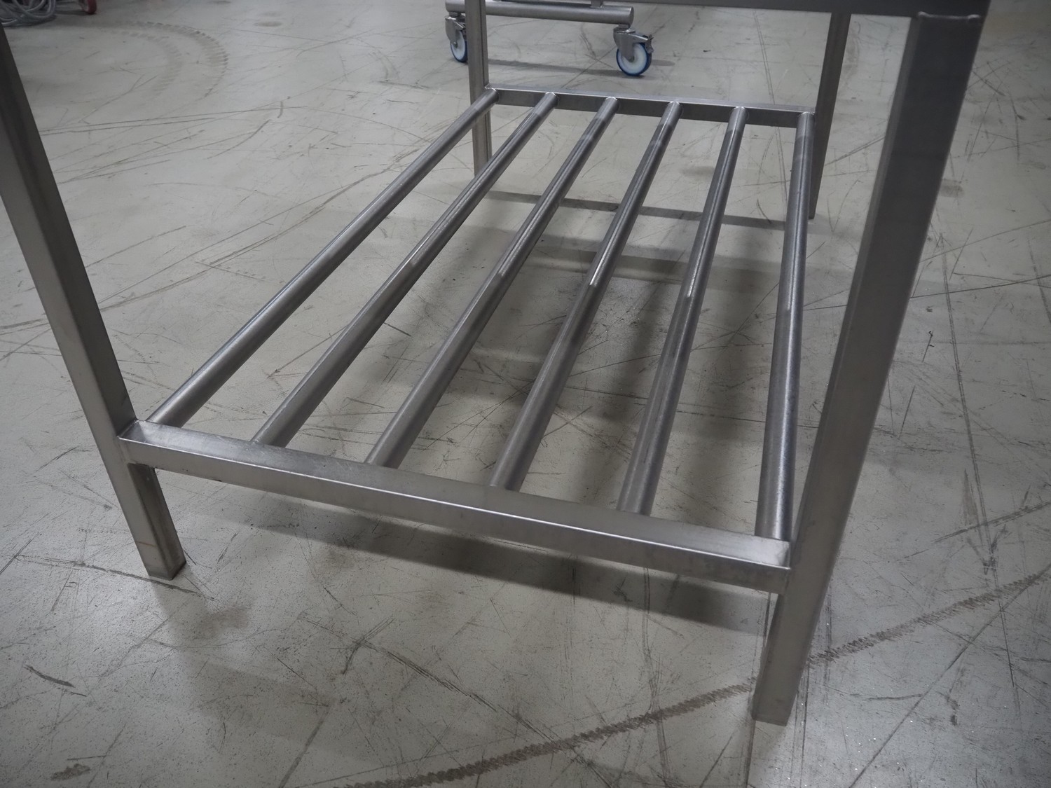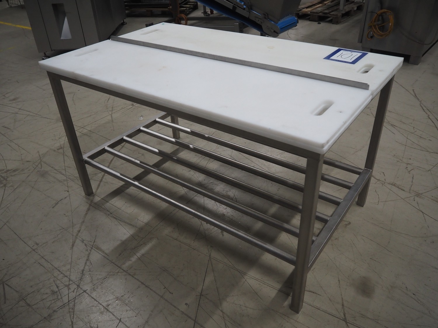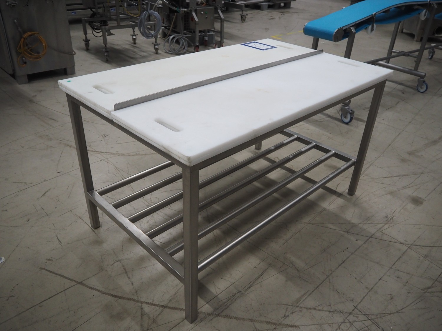 Table, s/s frame, plastic top, dimensions: 1500 mm x 920 mm x 850 mm.