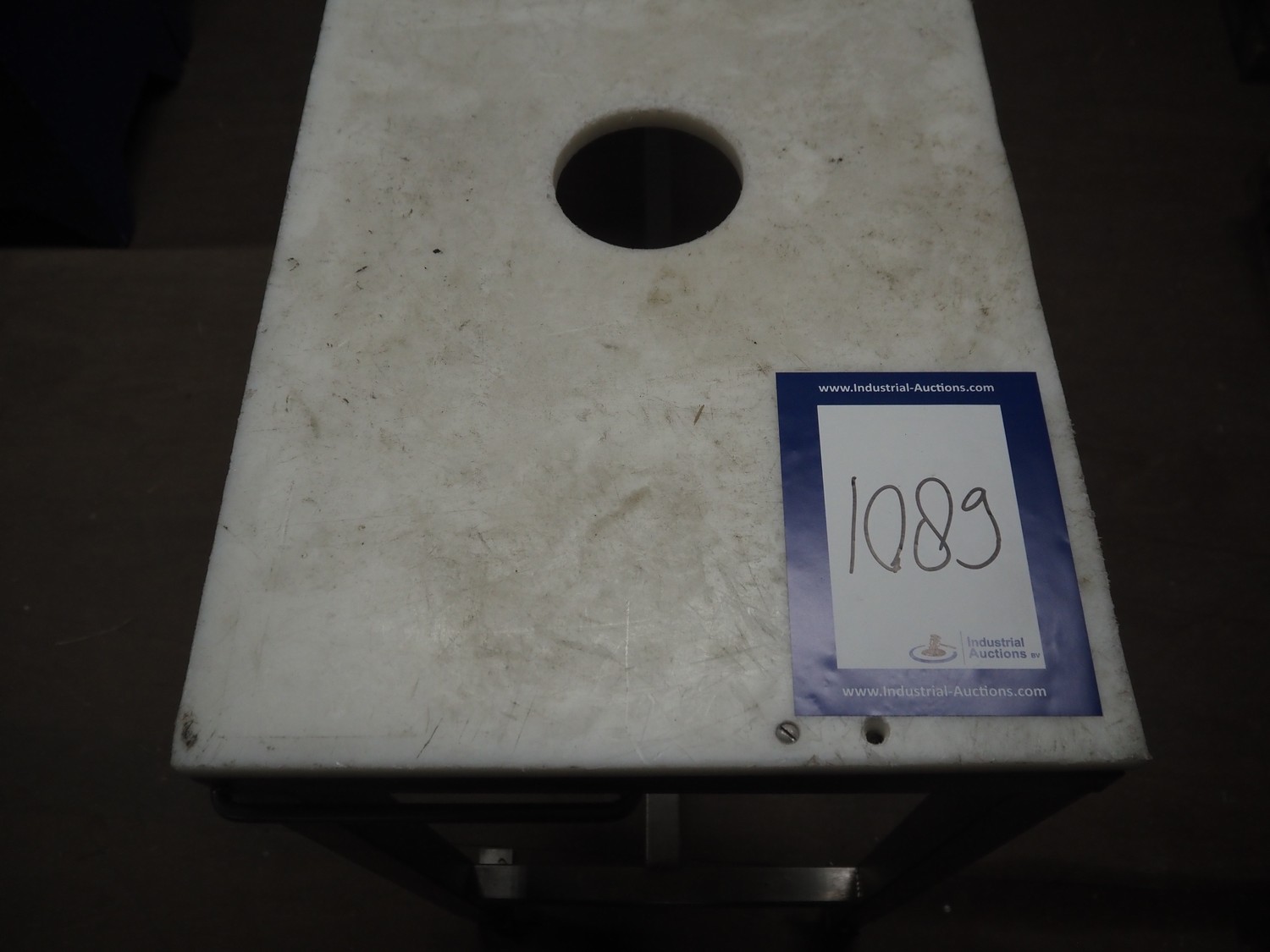 S/s table with plastic work top, dimensions: 460 mm x 1480 mm x 850 mm.