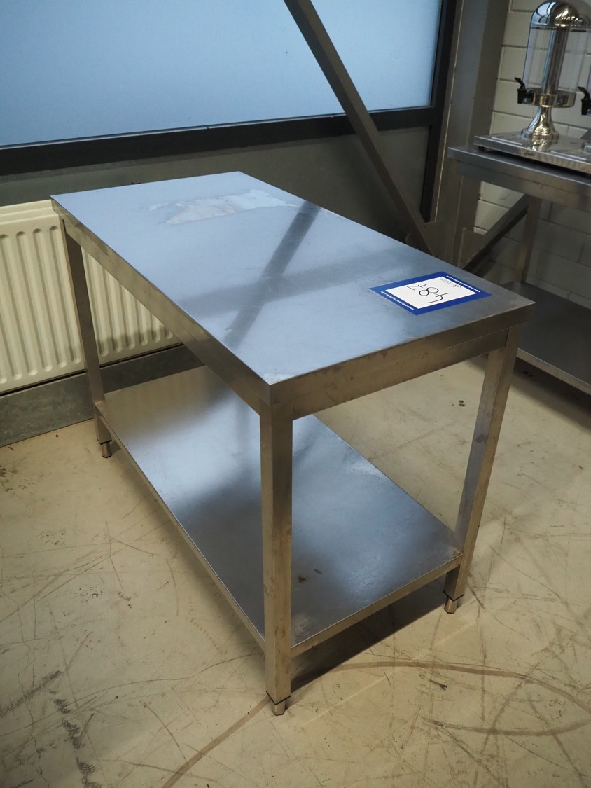 S/s table, dimensions: 1200 mm x 600 mm x 900 mm.