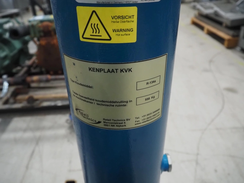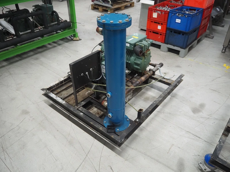 Bitzer Kühlmaschinenbau GmbH compressor rack with 2 Bitzer Kühlmaschinenbau GmbH cooling compressors, type: 6HE-25Y-40P and 4EC-6.2Y-40S, capacity: 110.5/156.2 and 22.7/27.4 m³ per hour, dimensions: 1300 mm x 1180 mm x 1050 mm.