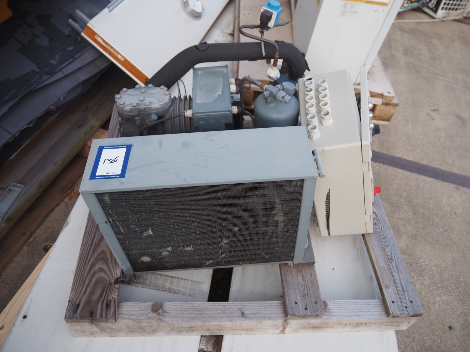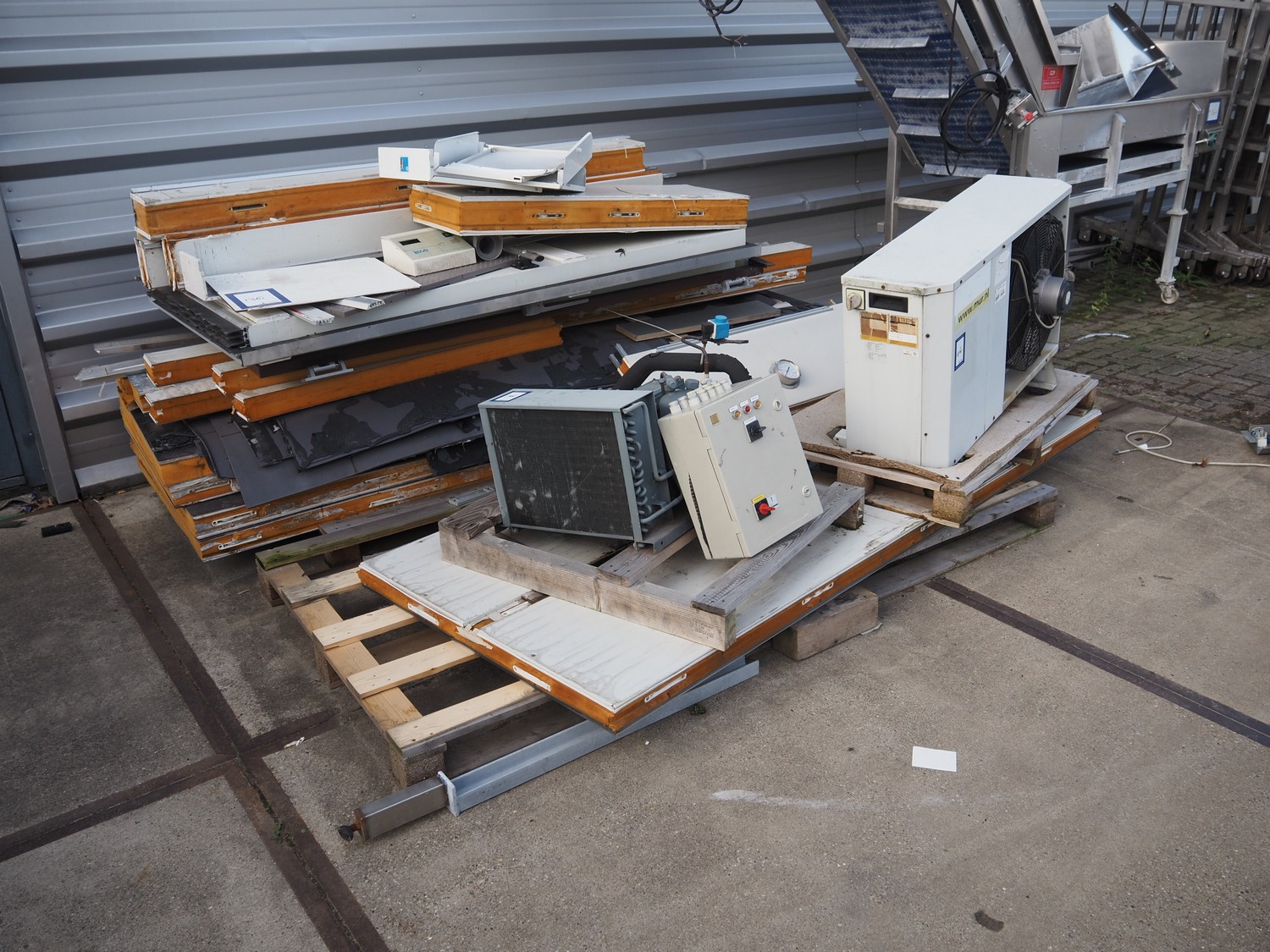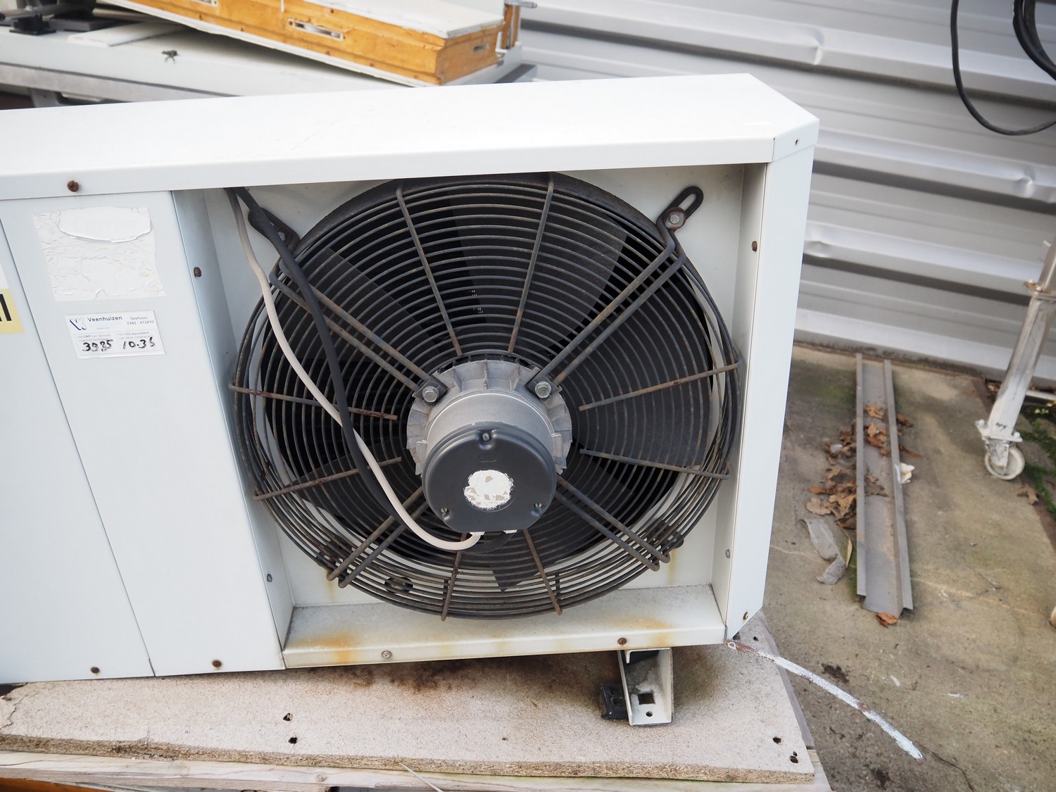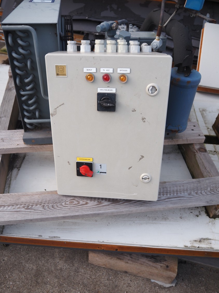 Cooling cell with Profoid condensing unit and DWM Copeland cooling compressor, type condensing unit: B90-R0031FCZAC, serial number: 108847/140/49853, year of construction: 2006, 400 V, 3 Ph, 50 Hz, dimensions: 1295 mm x 740 mm x 760 mm, type cooling compressor: DKLP-15X-EWL, serial number: 08G000949 M, capacity: 7.35 m³ per hour, dimensions: 840 mm x 930 mm x 540 mm, dimensions pallets with cooling panels: (1x) 2600 mm x 1200 mm x 300 mm, (1x) 3060 mm x 1350 mm x 1020 mm.