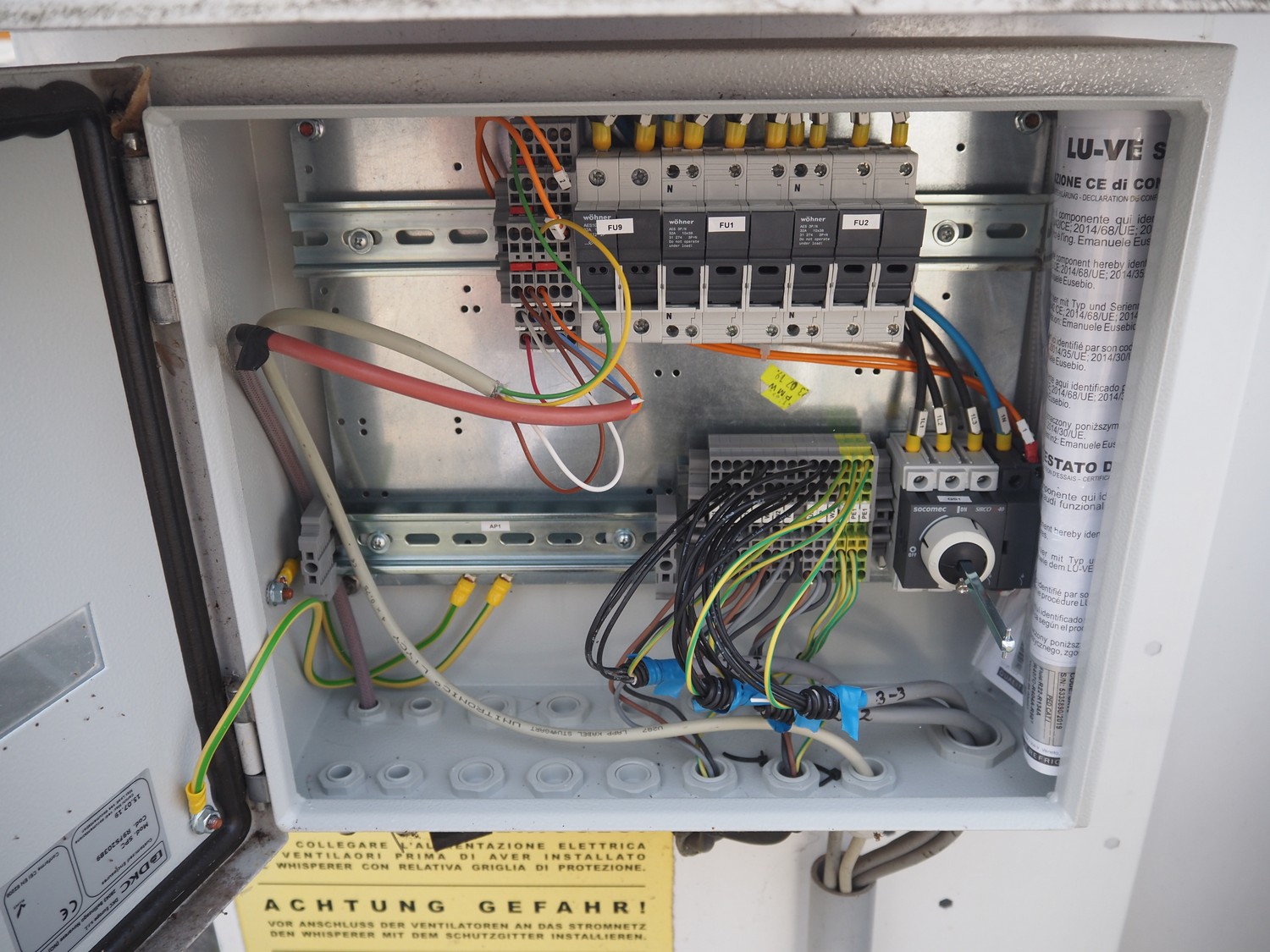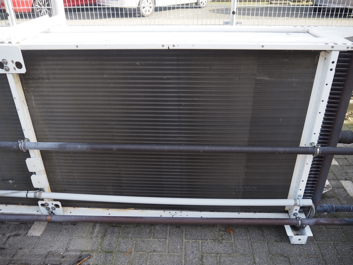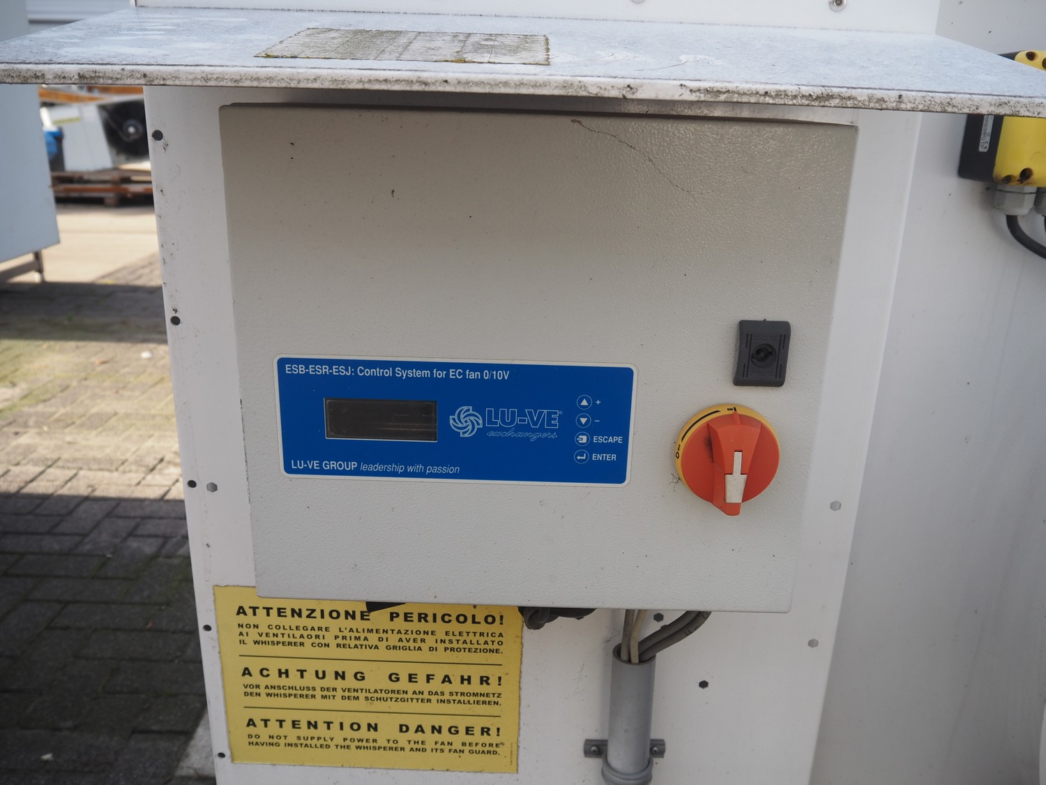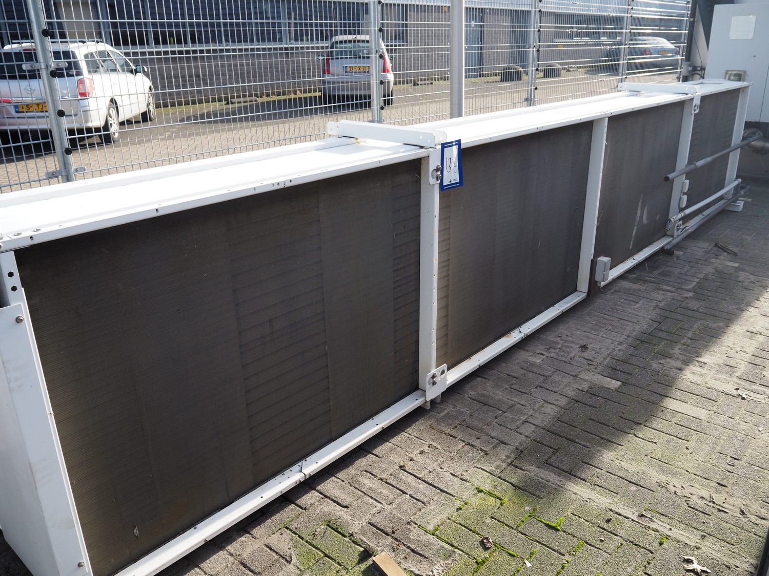 LU-VE S.p.A. condenser, model: SAV8T, serial number: 5335890, year of construction: 2019, 400 V, 50 Hz, 1.4 A, 840 W, refrigerant: R22-R134a-R407C-R404A-R507, volume: 86 dm³, 4 fans, dimensions: 6930 mm x 1350 mm x 1200 mm.