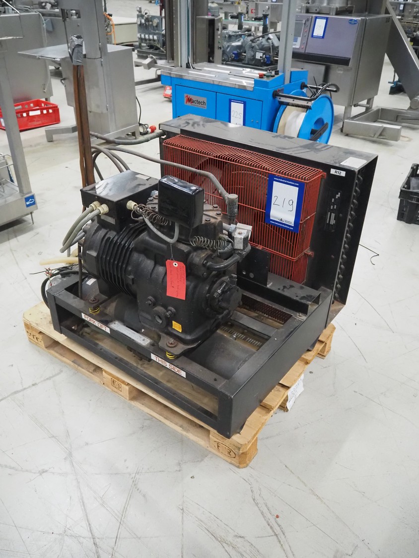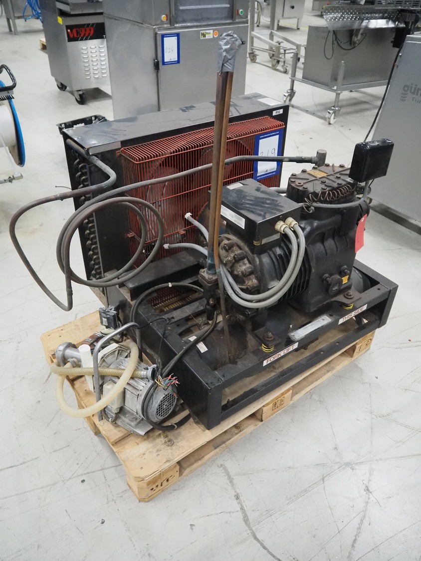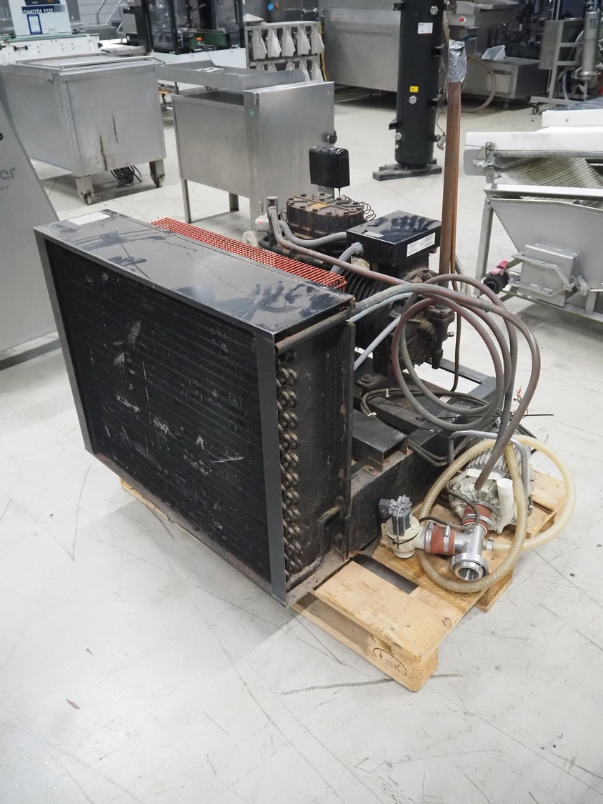 Delaval cooling compressor with condenser, type: ASR500 SD, 360/420 V, 3 Ph, 50 Hz, dimensions: 900 mm x 940 mm x 820 mm.