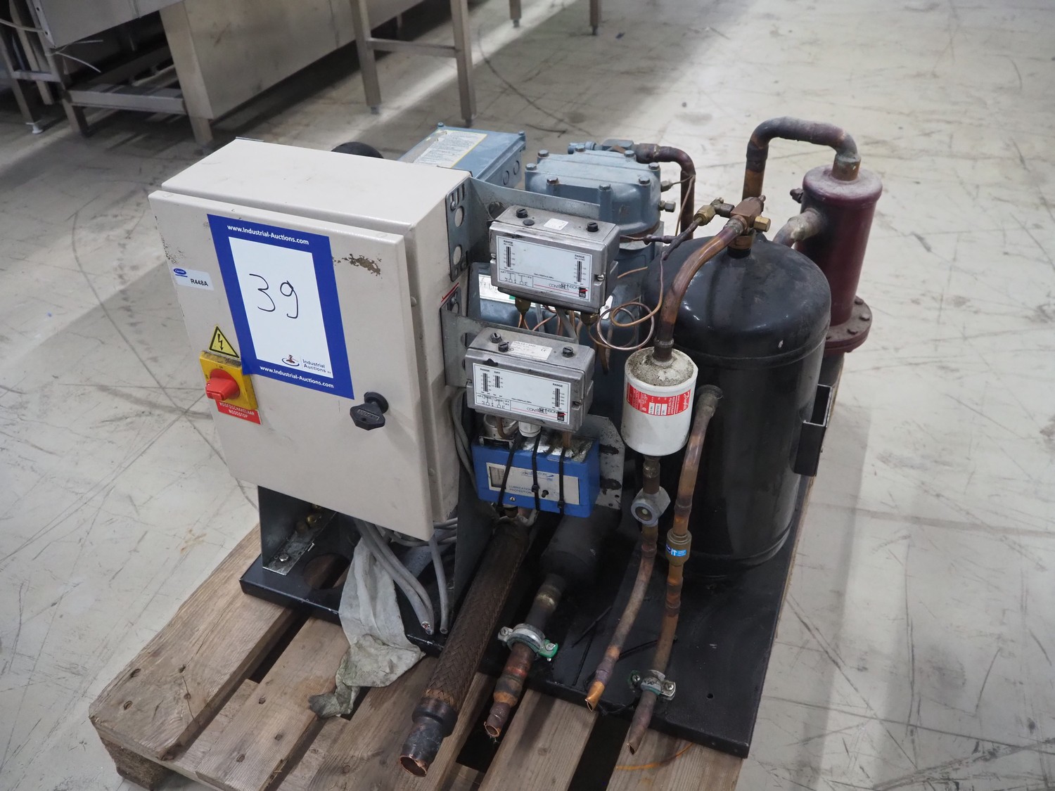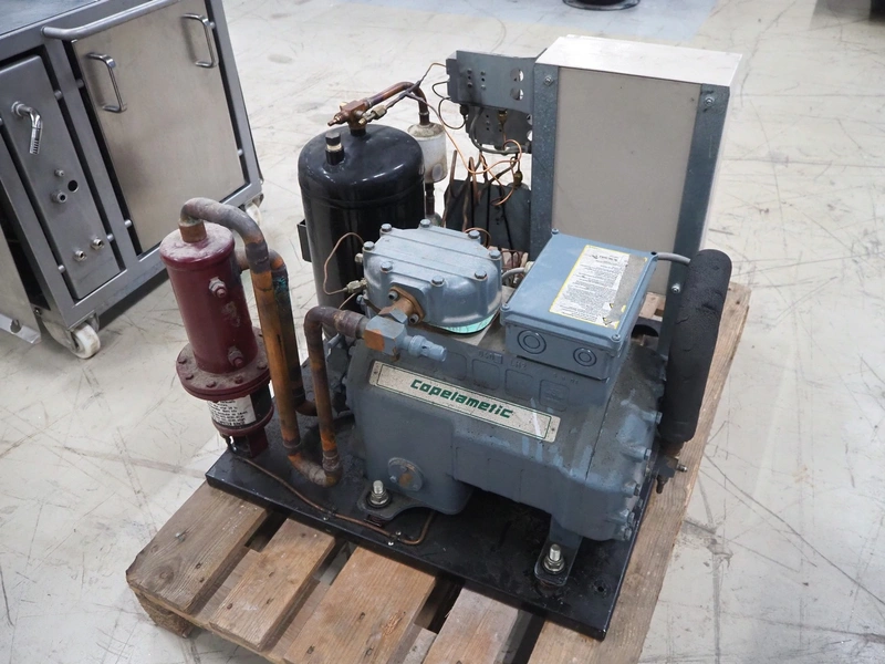 DWM Copeland cooling compressor, model: D2DL3-75X-AWM/D, serial number: 1886693, year of construction: 2001, capacity: 23.70 m³ per hour, dimensions: 900 mm x 800 mm x 630 mm.