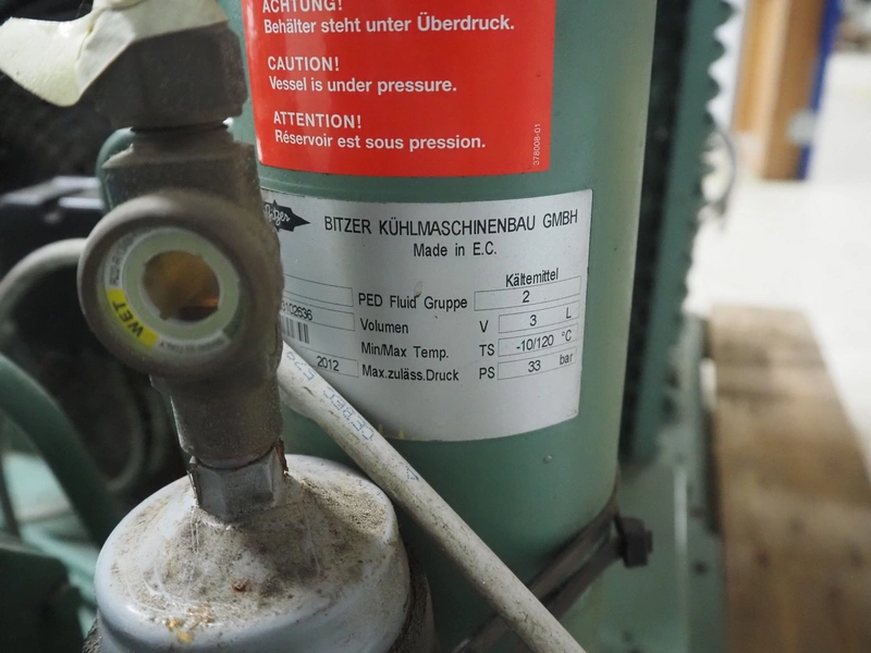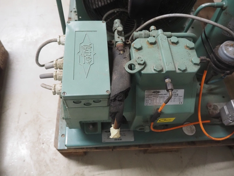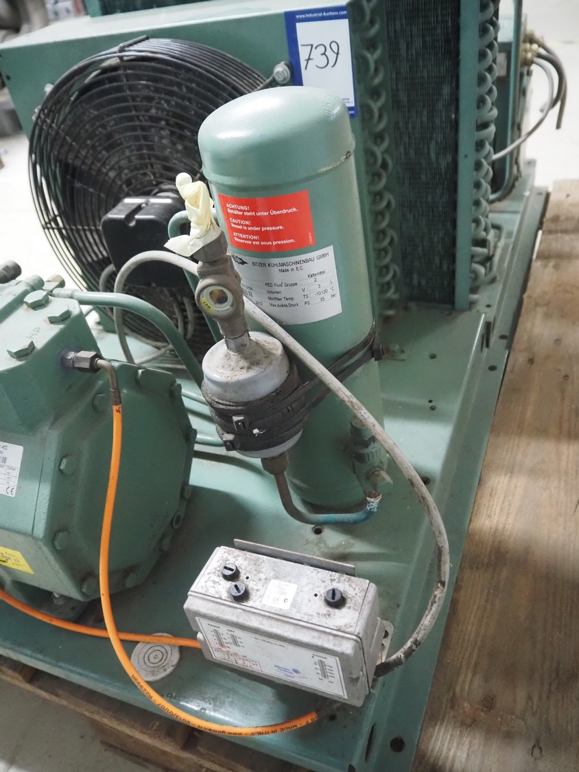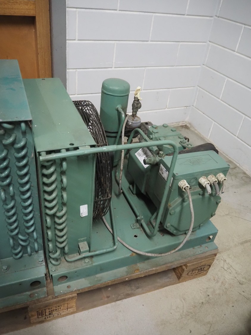 Bitzer Kühlmaschinenbau GmbH cooling compressor with condenser, type: 2JC-07.2Y-40S, serial number: 1684106484, dimensions: 650 mm x 550 mm x 500 mm.