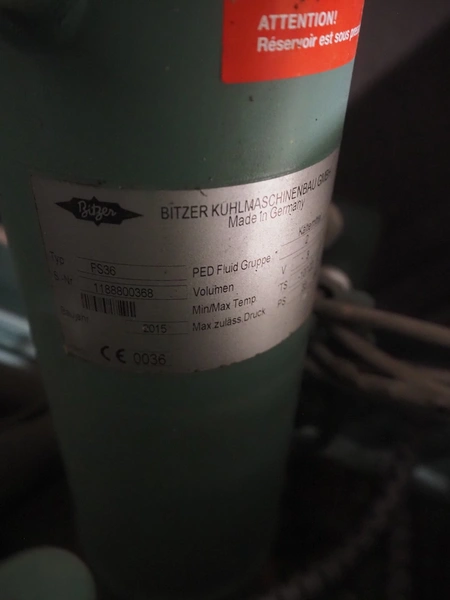 Bitzer Kühlmaschinenbau GmbH condensing unit with cooling compressor, type: 2KES-05Y-40S, capacity: 4,1/4,9 m3 per hour, dimensions: 850 mm x 850 mm x 600 mm.