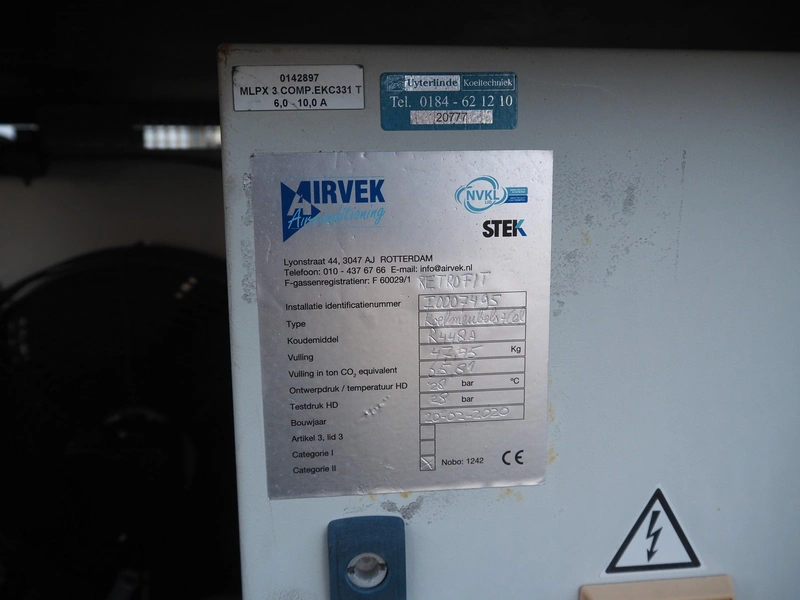 Cabinet with 3 Tecumseh cooling compressors, model: TFHP4540X, refrigerant: R507, dimensions: 2400 mm x 750 mm x 800 mm.