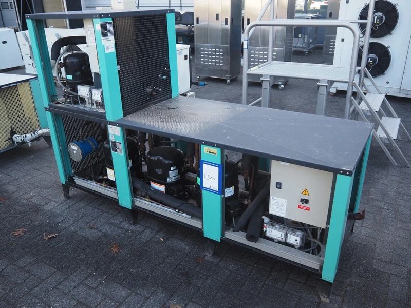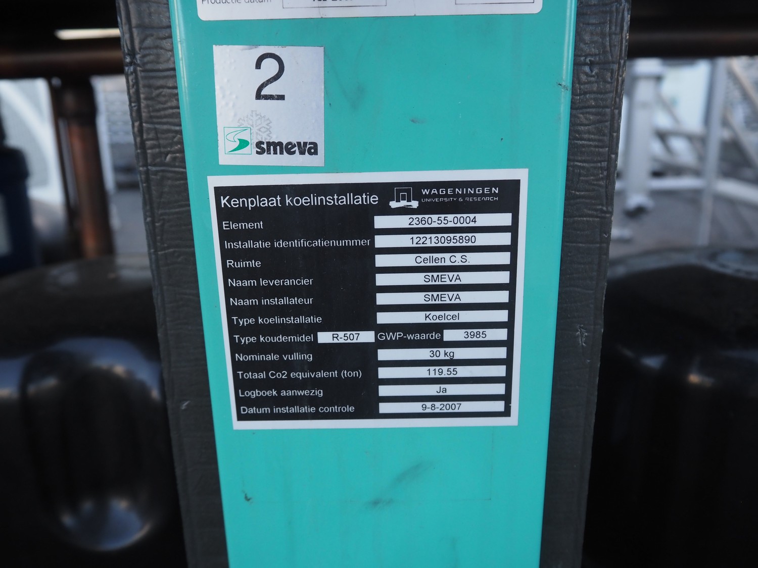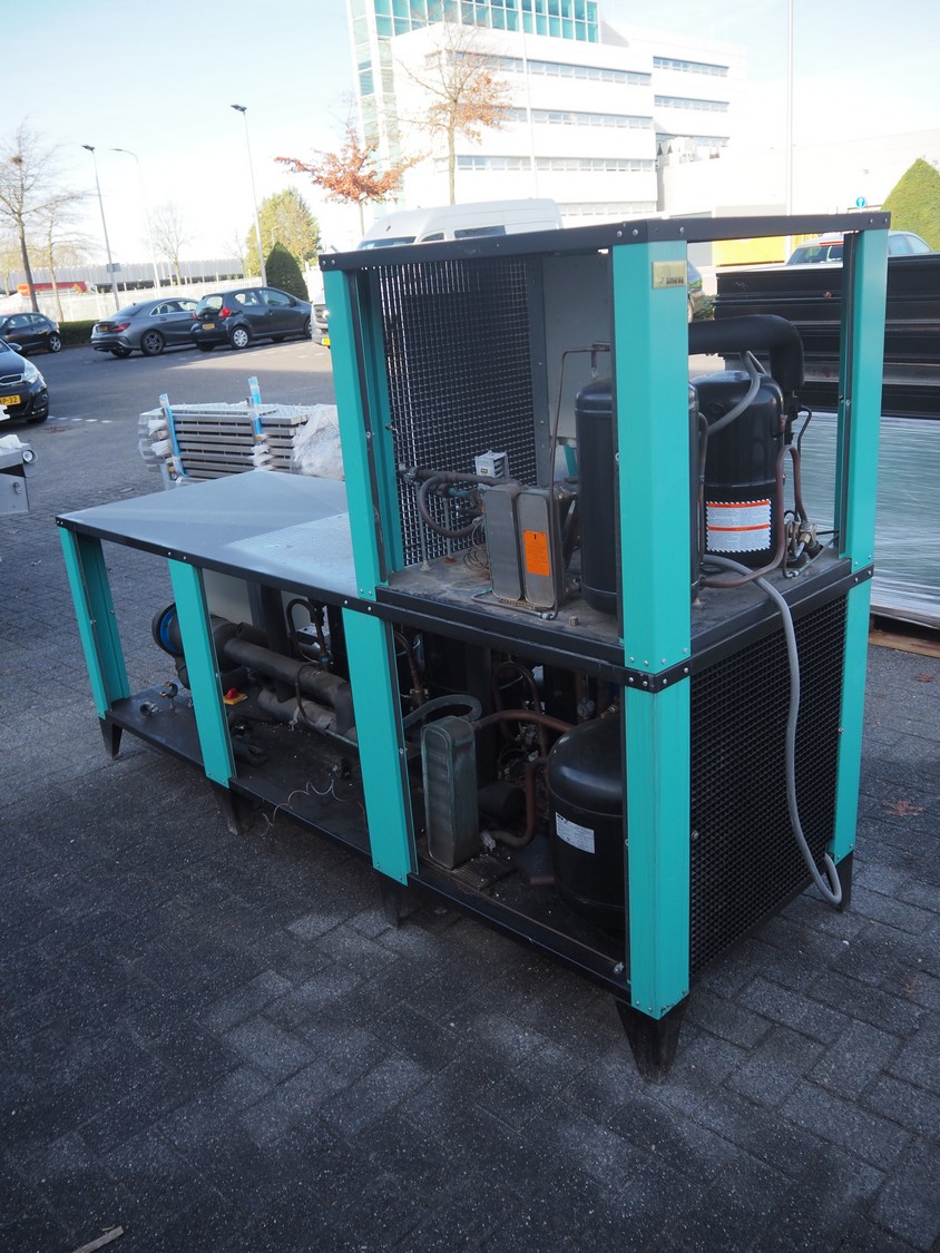 Cabinet with 4 Tecumseh cooling compressors, model: TFHP2480Z, TAGP4561X and (2x) TAGP4561Z, refrigerant: R507, 30 and 10 kg, dimensions: 2300 mm x 750 mm x 1550 mm. 1 compressor defect.