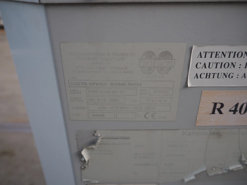 Profroid condensing unit, type: Quietis WPH19A, serial number: 139514/140/8C112, year of construction: 2010, 400 V, 3 Ph, 50 Hz, refrigerant: R404a, dimensions: 1200 mm x 400 mm x 750 mm.