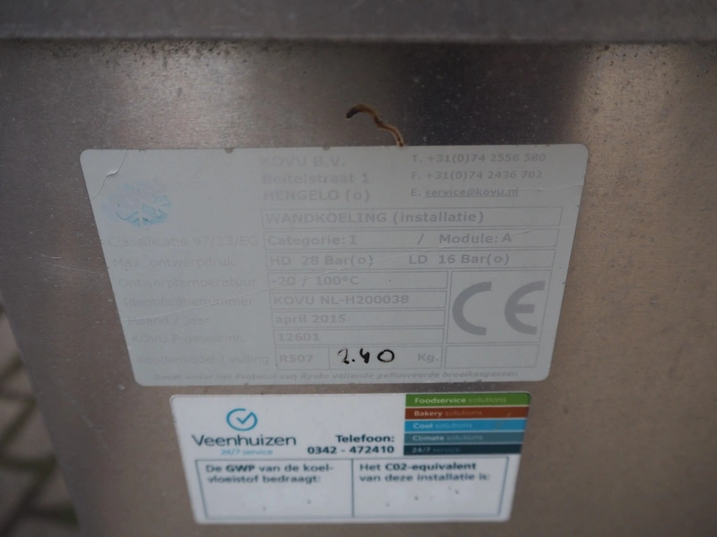 S/s cabinet with Kovu cooling compressor, refrigerant: R507, dimensions: 770 mm x 570 mm x 600 mm.