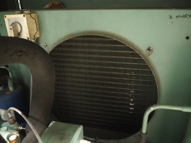 Bitzer Kühlmaschinenbau GmbH condensing unit with cooling compressor, type condensing unit: FS76, serial number: 1676702501, type cooling compressor: 2CES-3Y-40S, serial number: 1696313488, capacity: 16.2/19.4 m³ per hour, dimensions: 900 mm x 1070 mm x 930 mm.