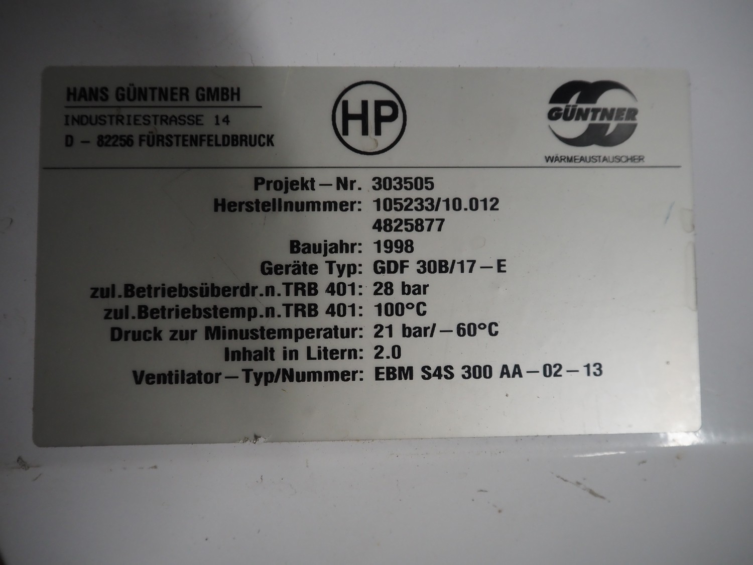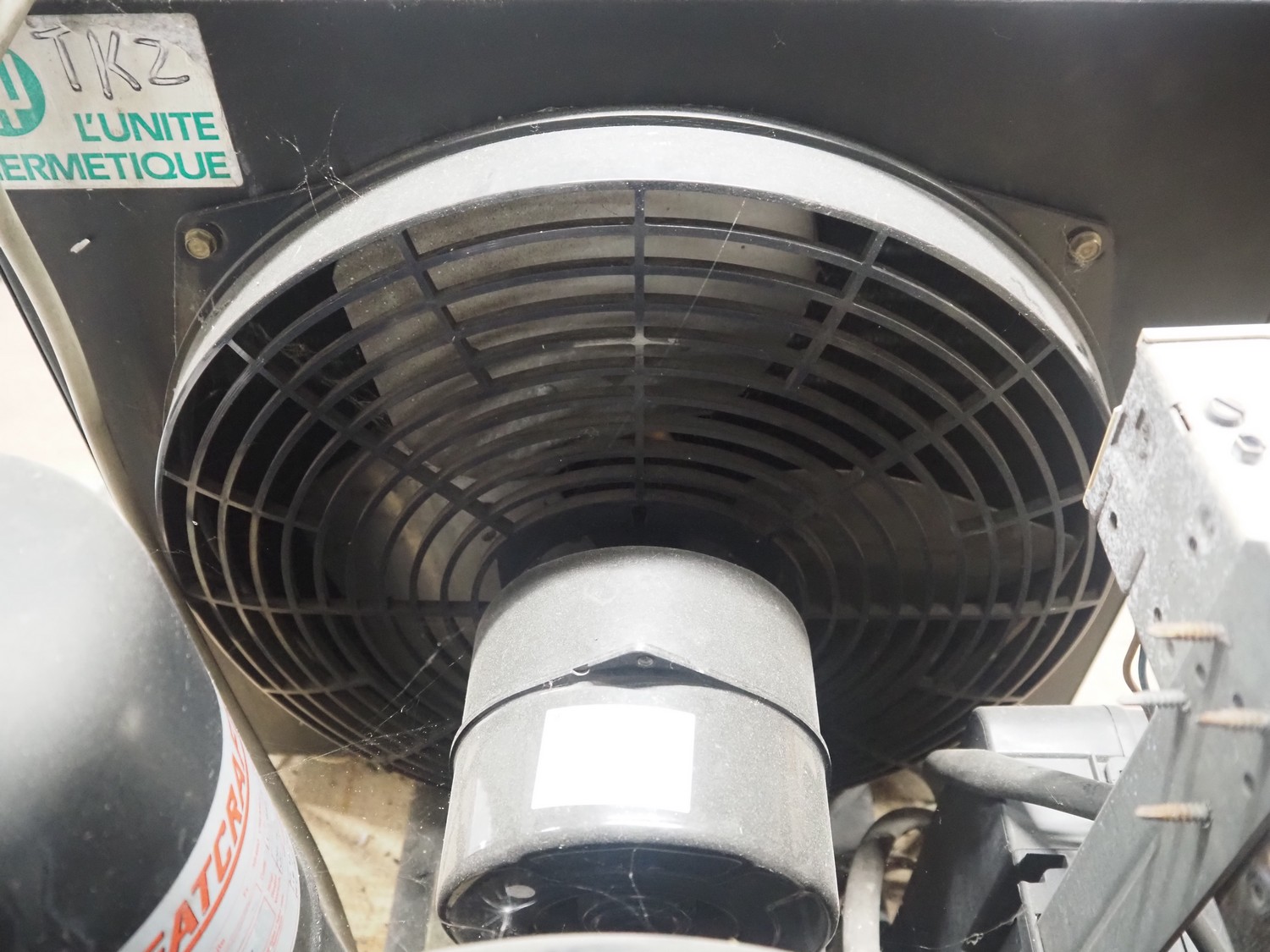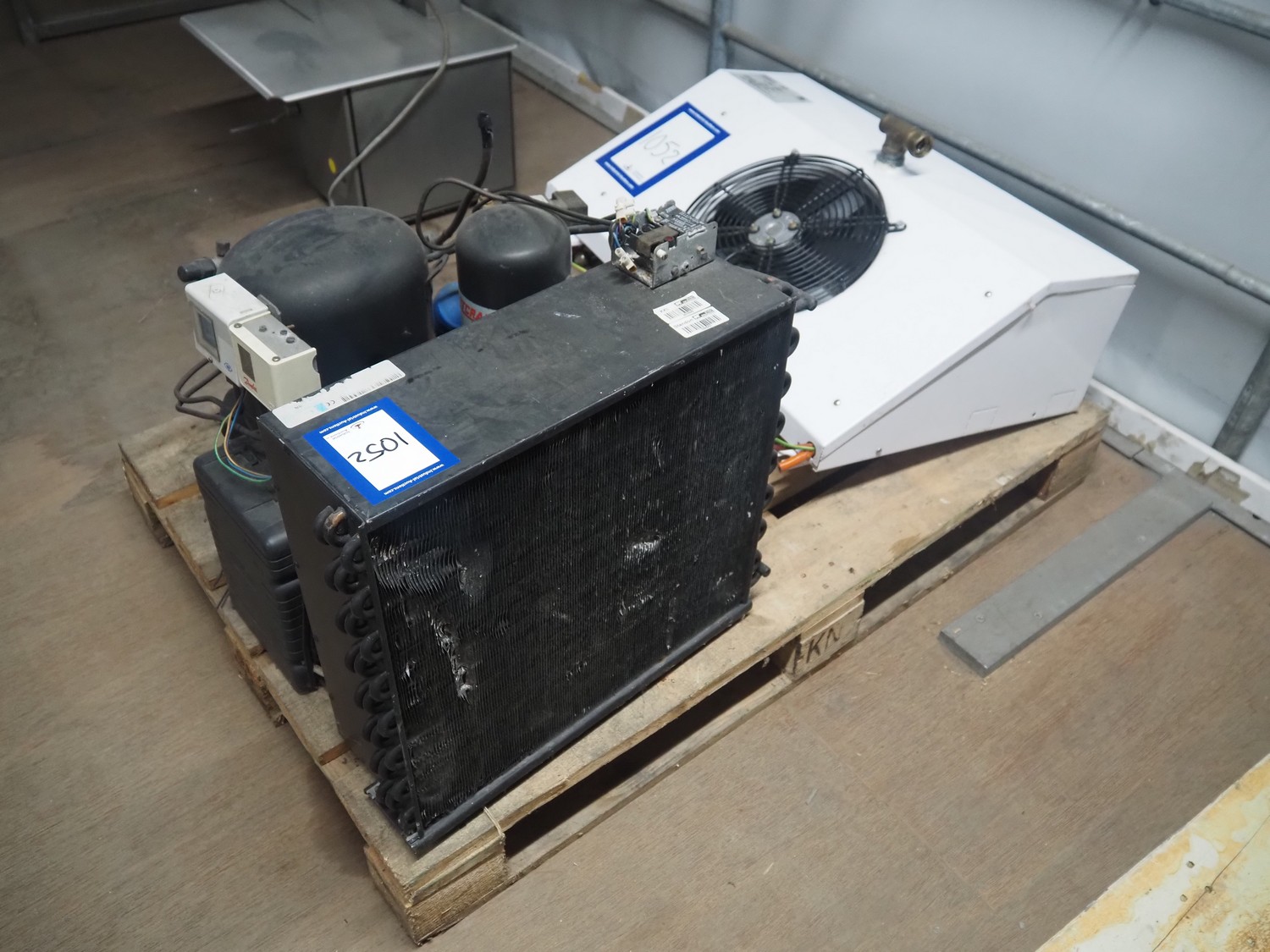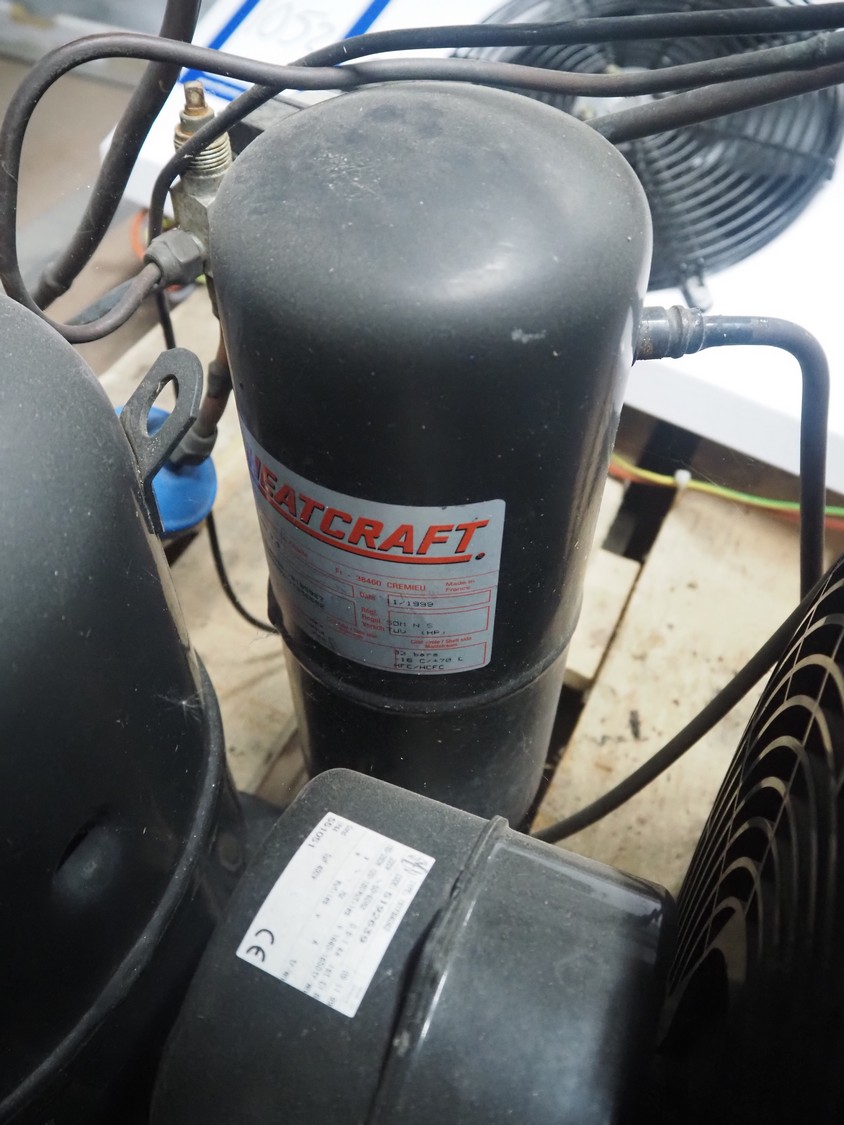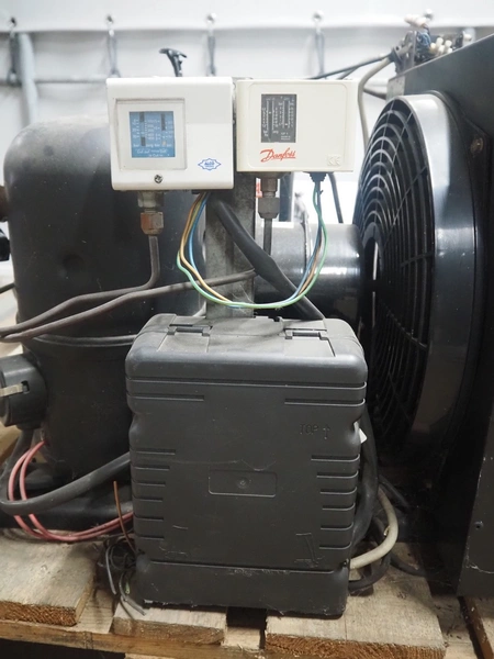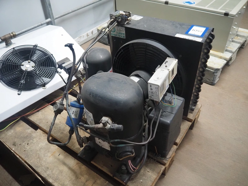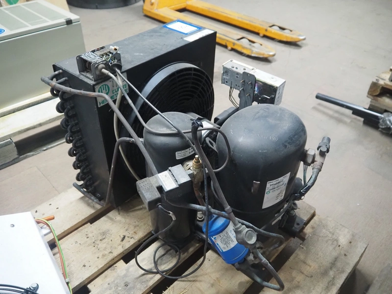 Güntner evaporator, type: GDF 30B/17-E, year of construction: 1998, dimensions: 500 mm x 800 mm x 240 mm with L'unite Hermetique cooling compressor, dimensions: 550 mm x 600 mm x 500 mm.