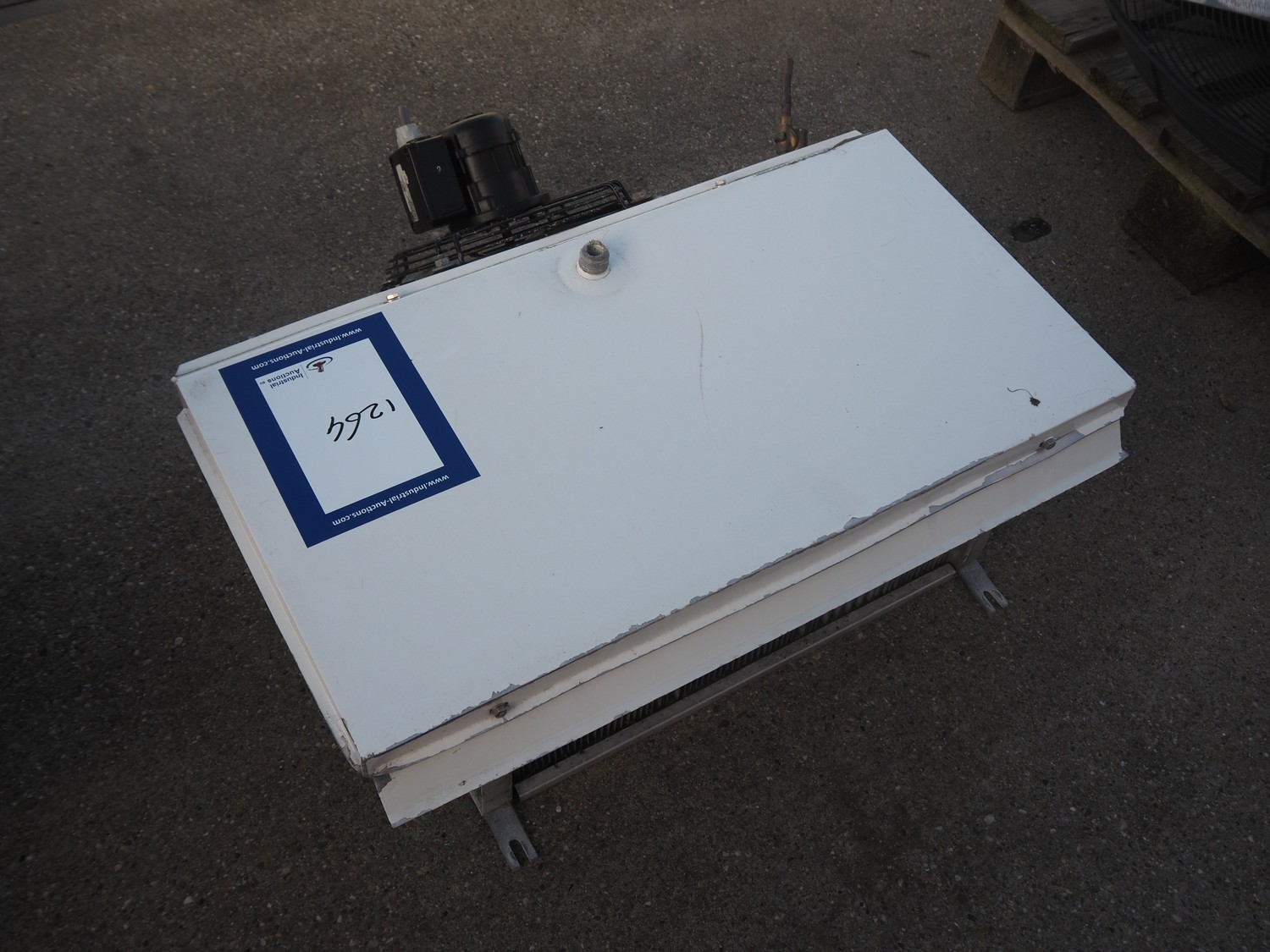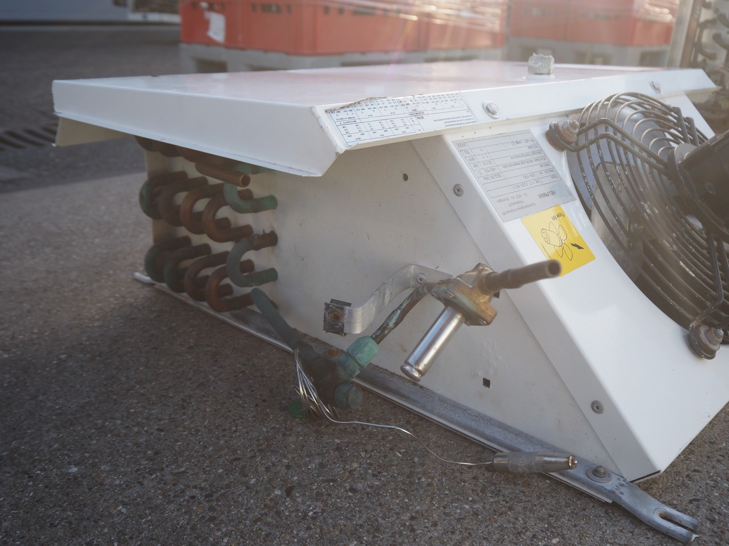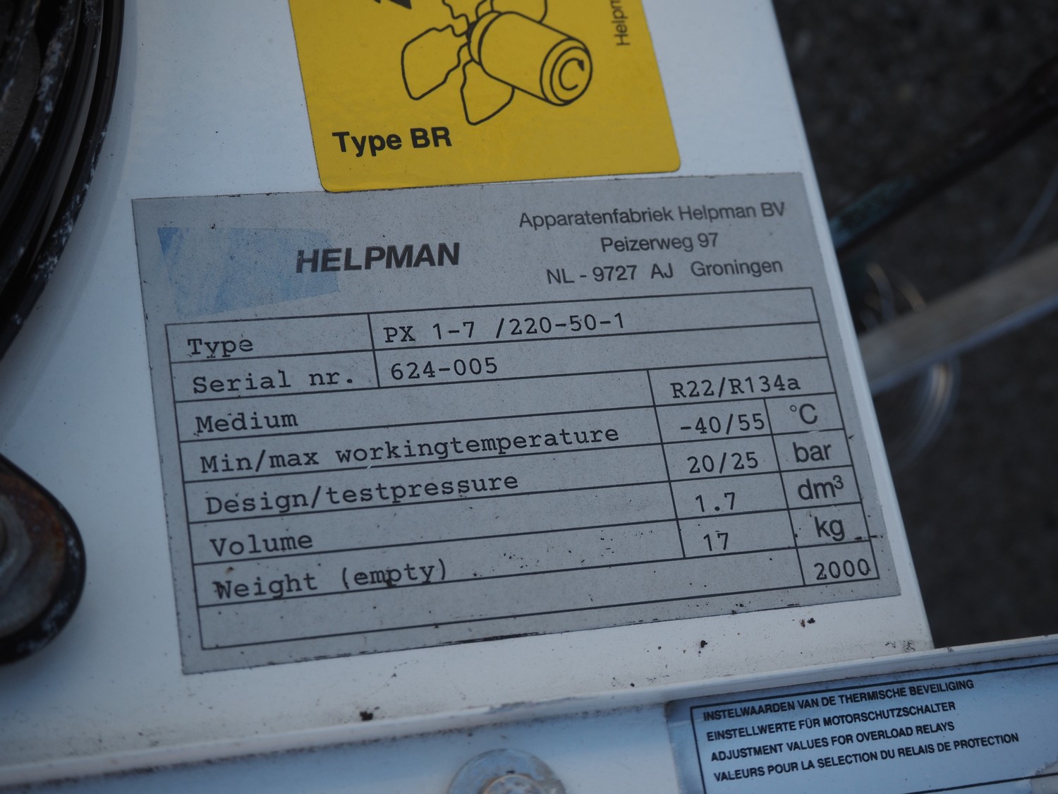 Helpman evaporator, type: PX 1-7, serial number: 624-005, year of construction: 2000, 220 V, 1 Ph, 50 Hz, refrigerant: R22 / R134a, dimensions: 750 mm x 670 mm x 270 mm.