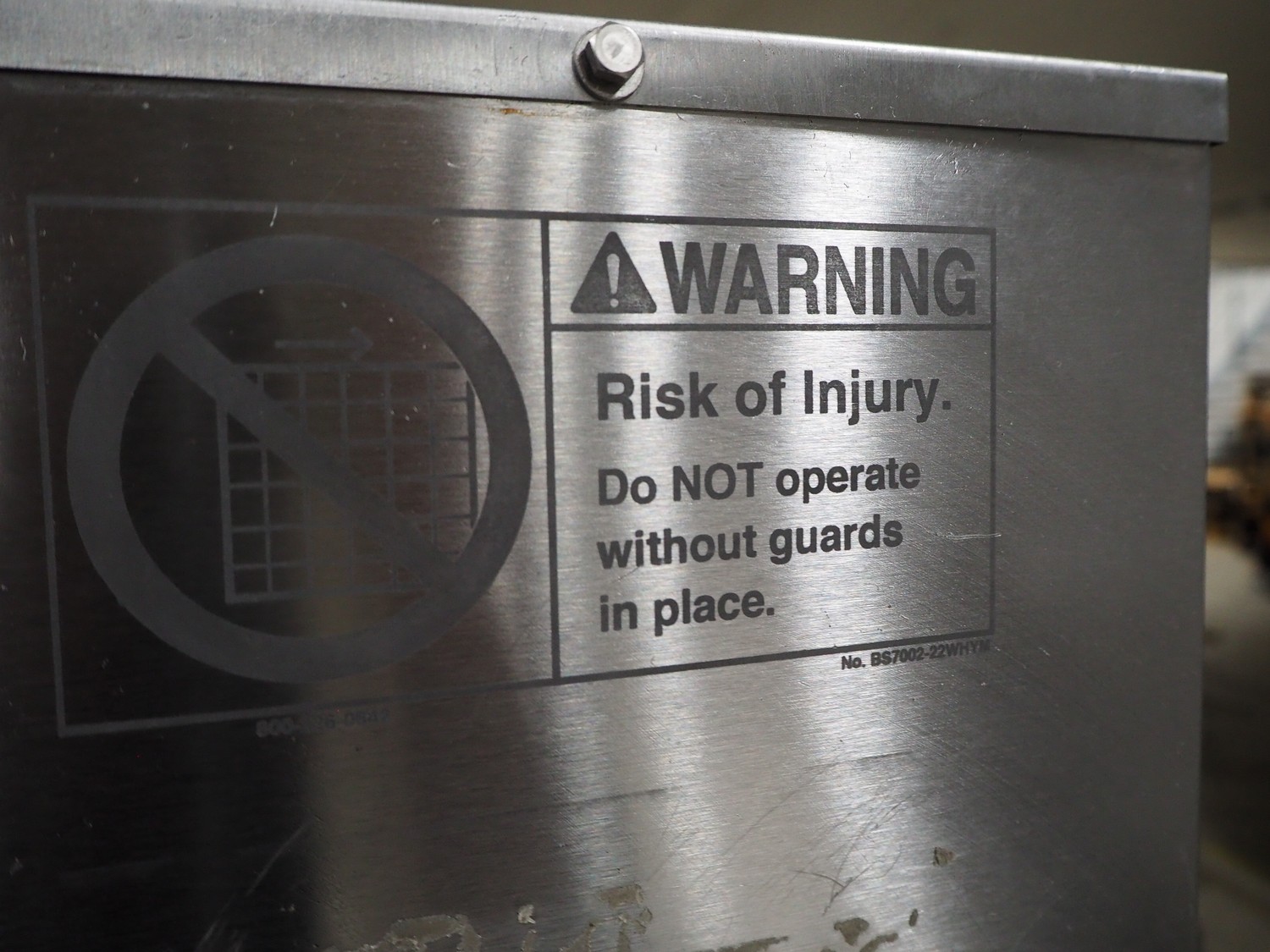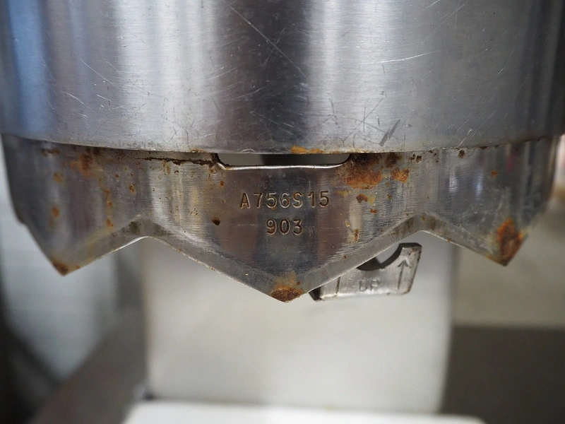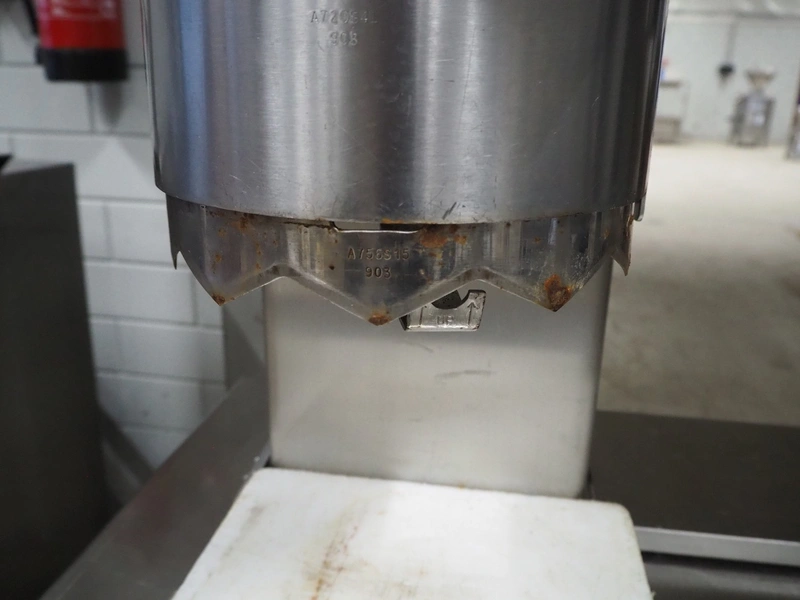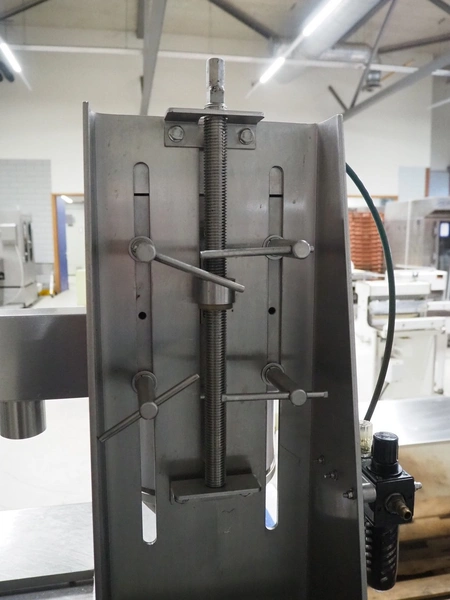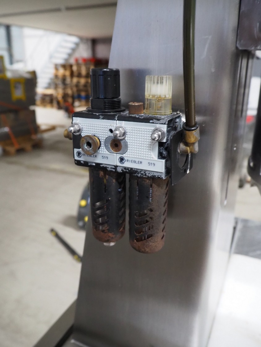 Pfluka can opener, model: PD 10, machine number: 1105, working width: Ø 220 mm, total dimensions: 900 mm x 700 mm x 1800 mm.
