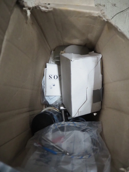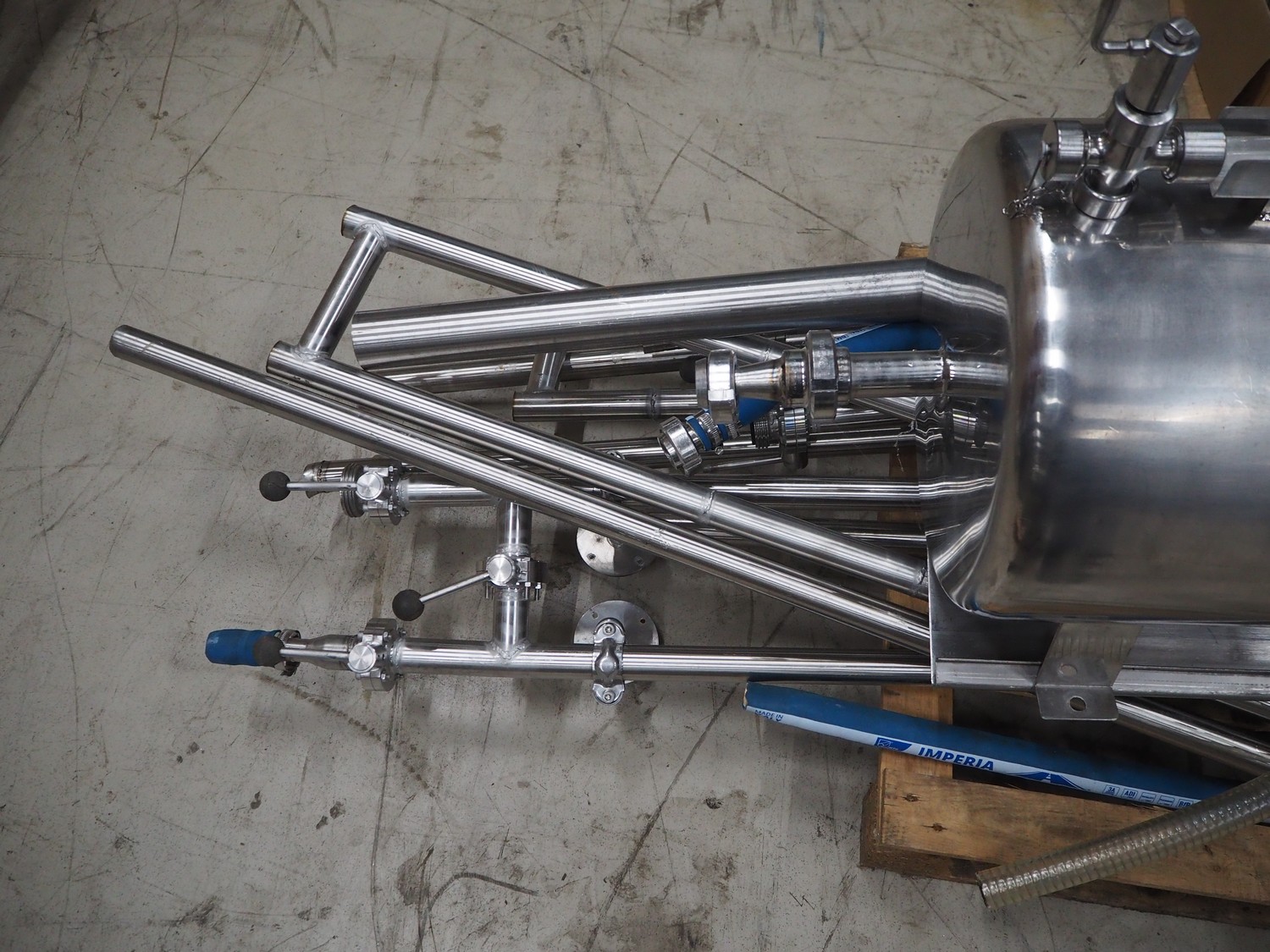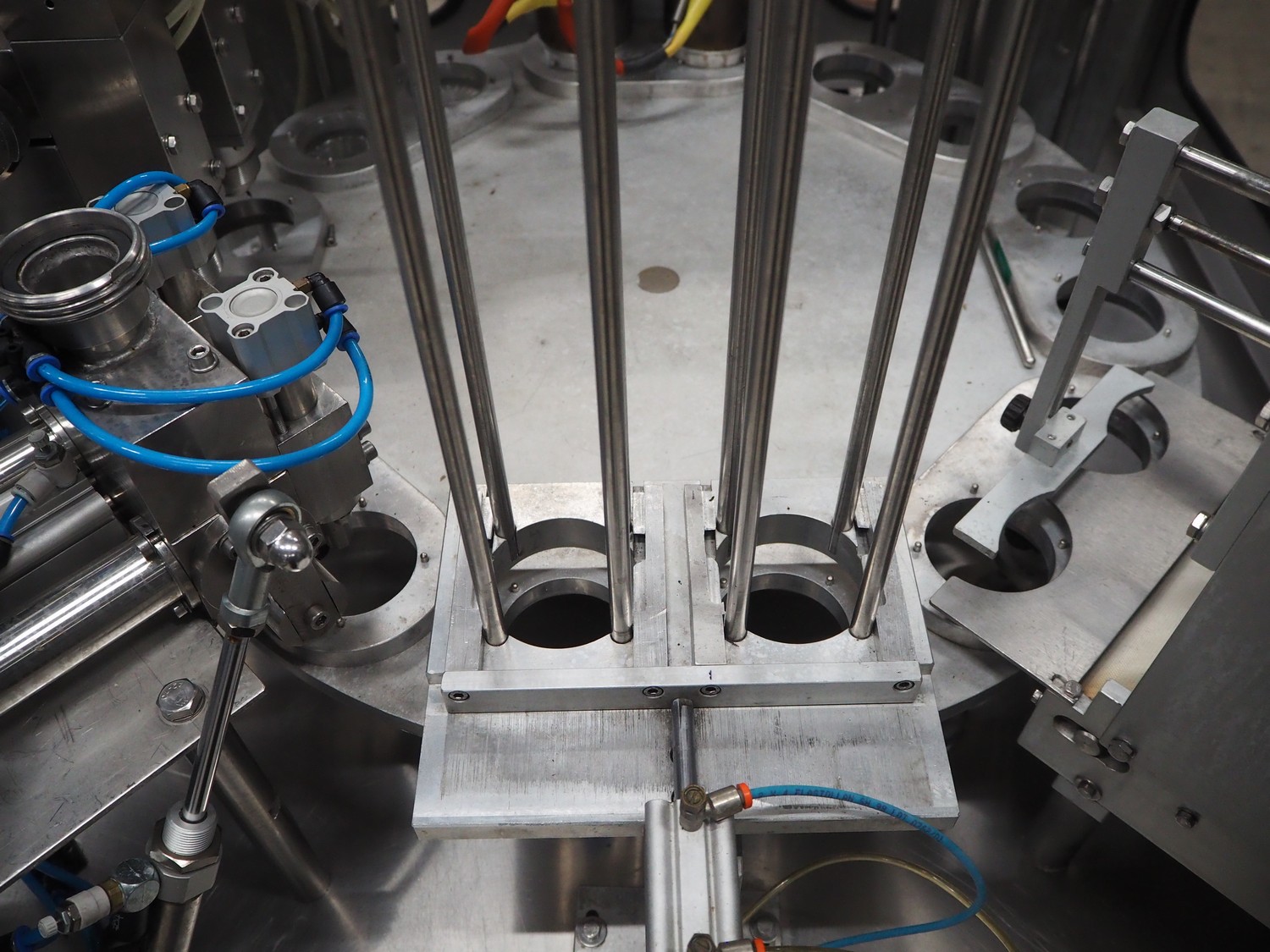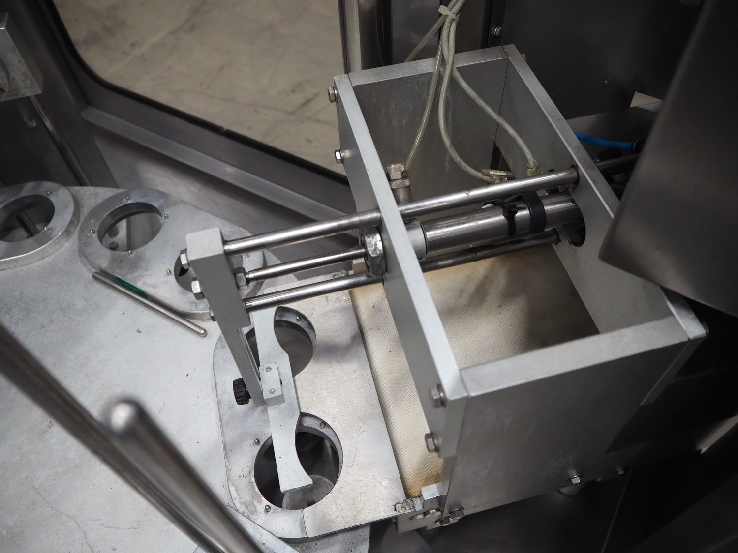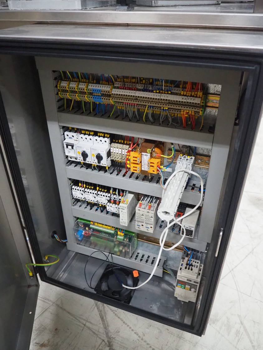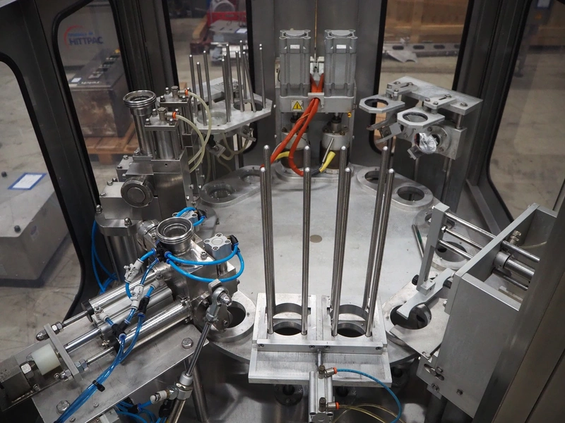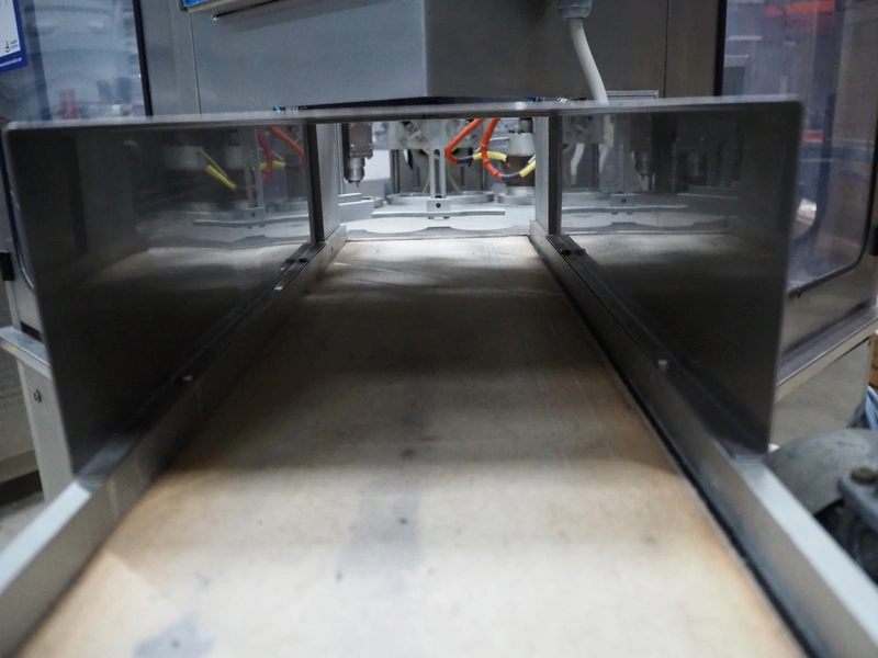 Ilpra cup filling and sealing machine, model: 4000 cip, number: FS 502, year of construction: 2003, 380 V, cup diameter: 70 mm, plastic belt, belt width: 210 mm, total dimensions: 1800 mm x 1600 mm x 1700 mm. Including s/s tank, dimensions: 1100 mm x 500 mm x 600, and pallet with s/s pipes, dimensions: 2700 mm x 1100 mm x 450 mm.