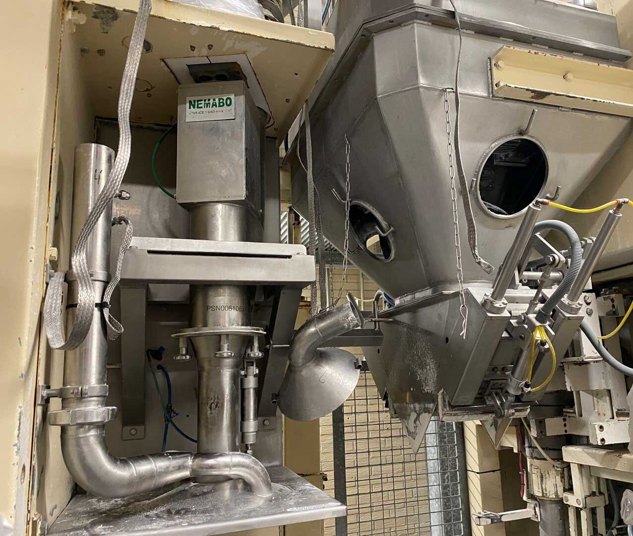 Matam milk powder bag filling line, capacity: 250 bags of 20-25 kg per hour. Lot dismantled and located in Lopik (NL), viewing and pick up in consultation with Industrial Auctions B.V.