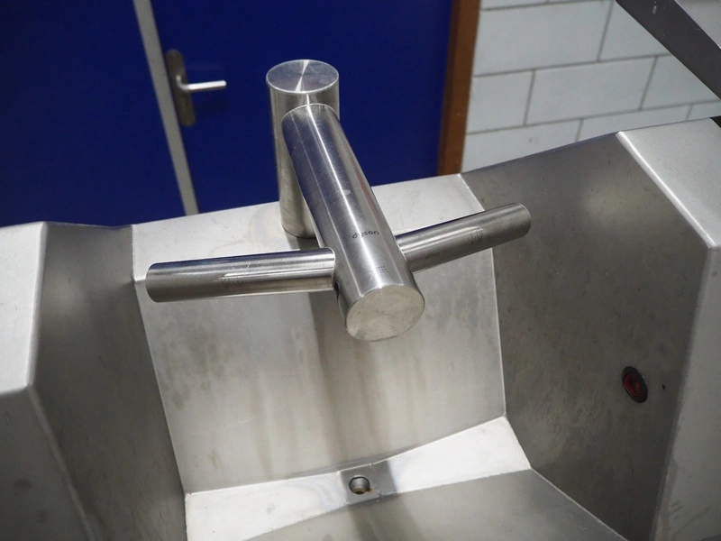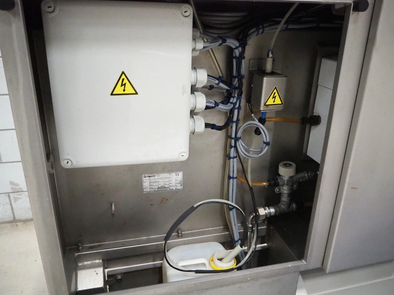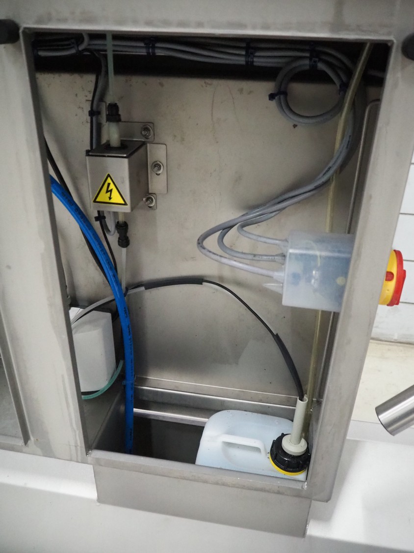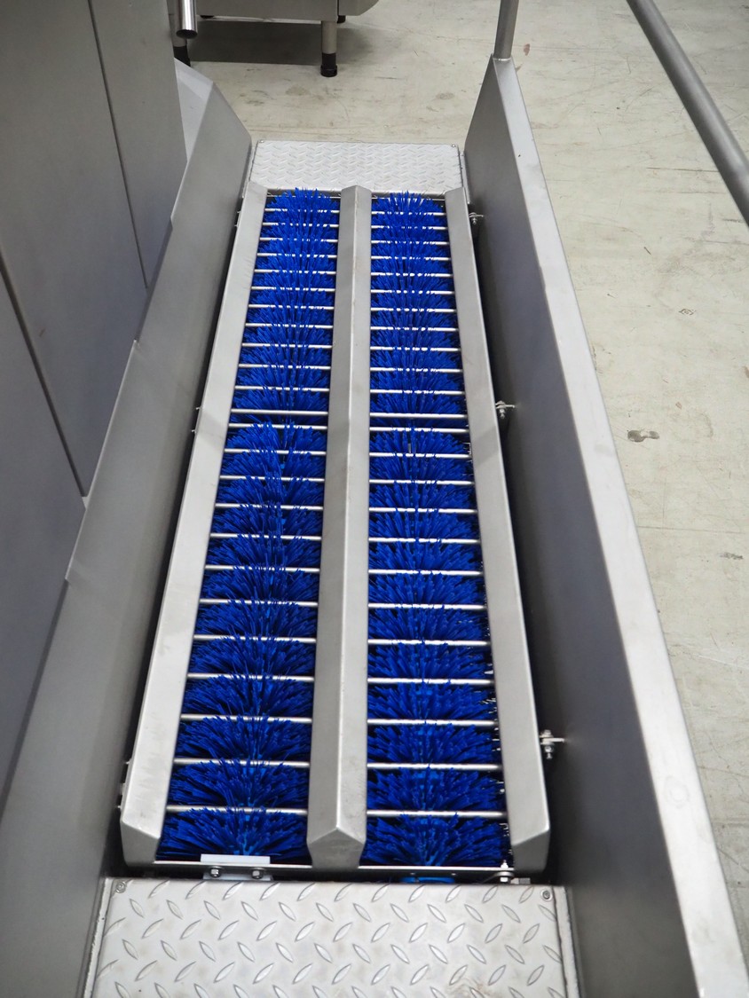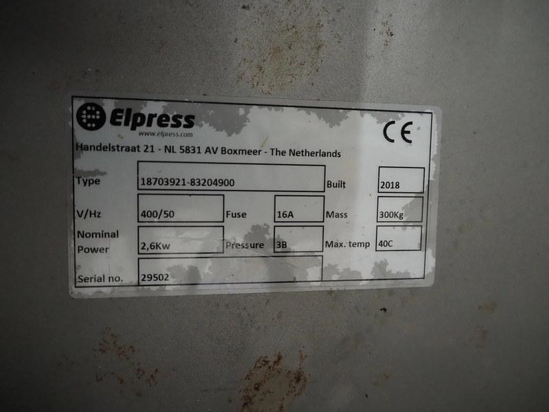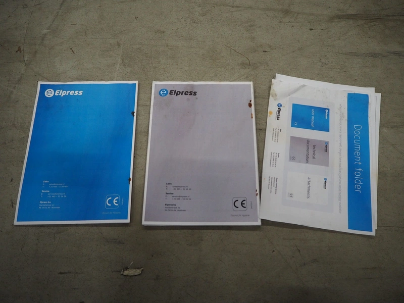 Elpress hygiene station, consisting of: 2 hand disinfection units, hand dryer, sole cleaner and tourniquette, type: 18703921-83204900, serial number: 29502, year of construction: 2018, 400 V, 50 Hz, 16 A, 2.6 kW, pressure: 3 bar, weight: 300 kg, brush length: (2x) 1450 mm, total dimensions: 2650 mm x 1050 mm x 1680 mm.