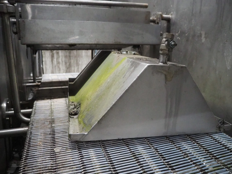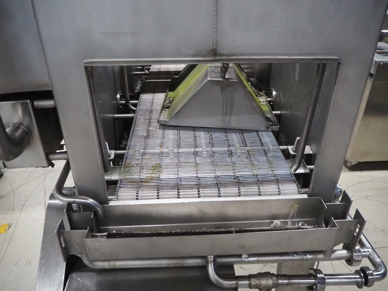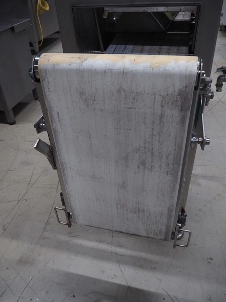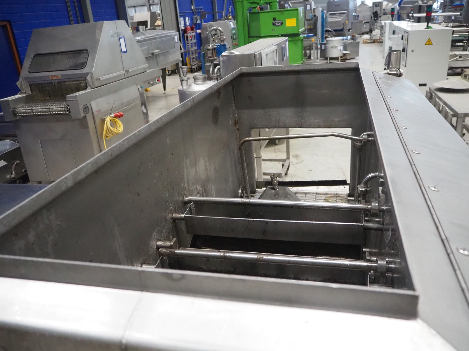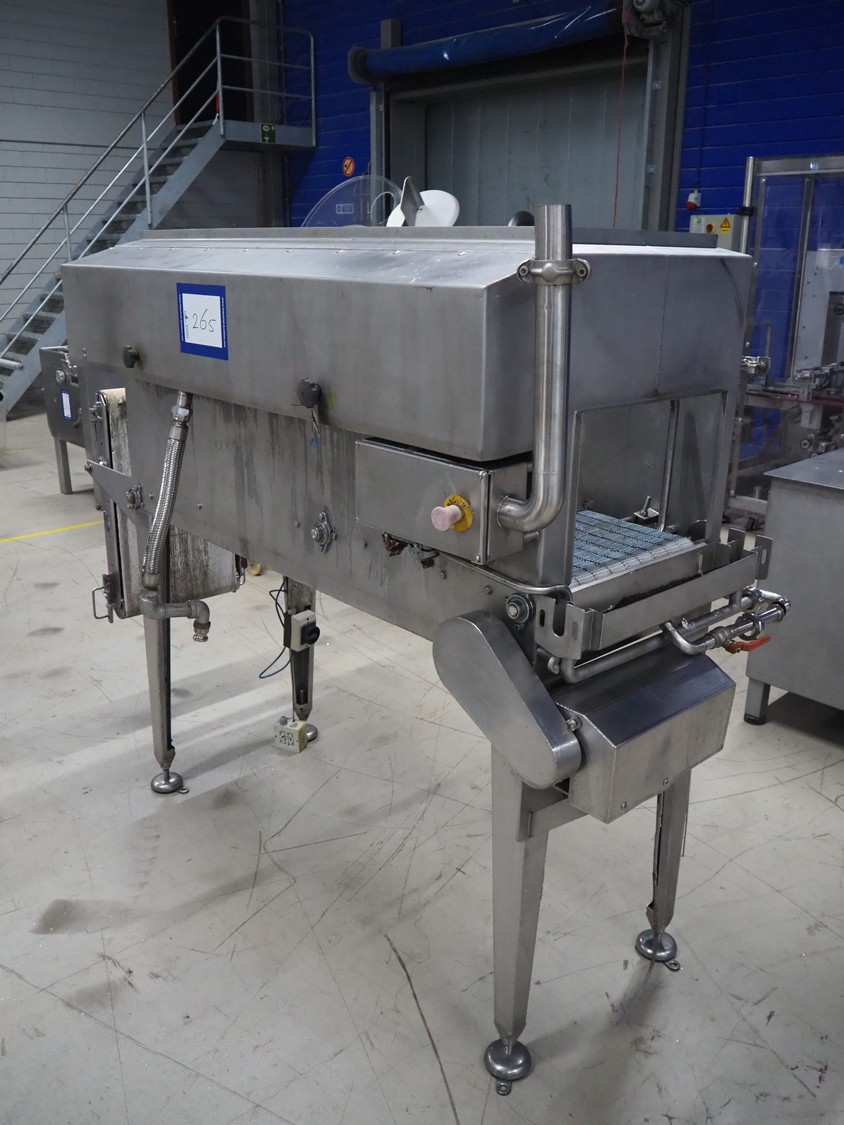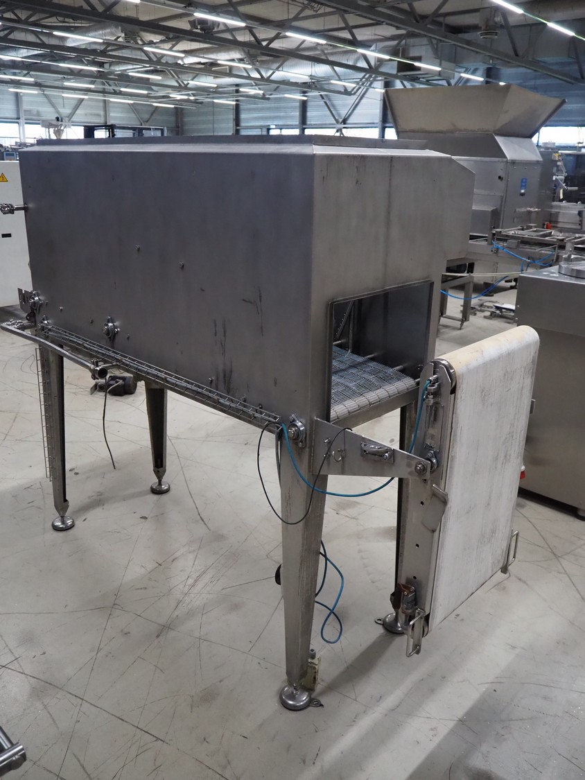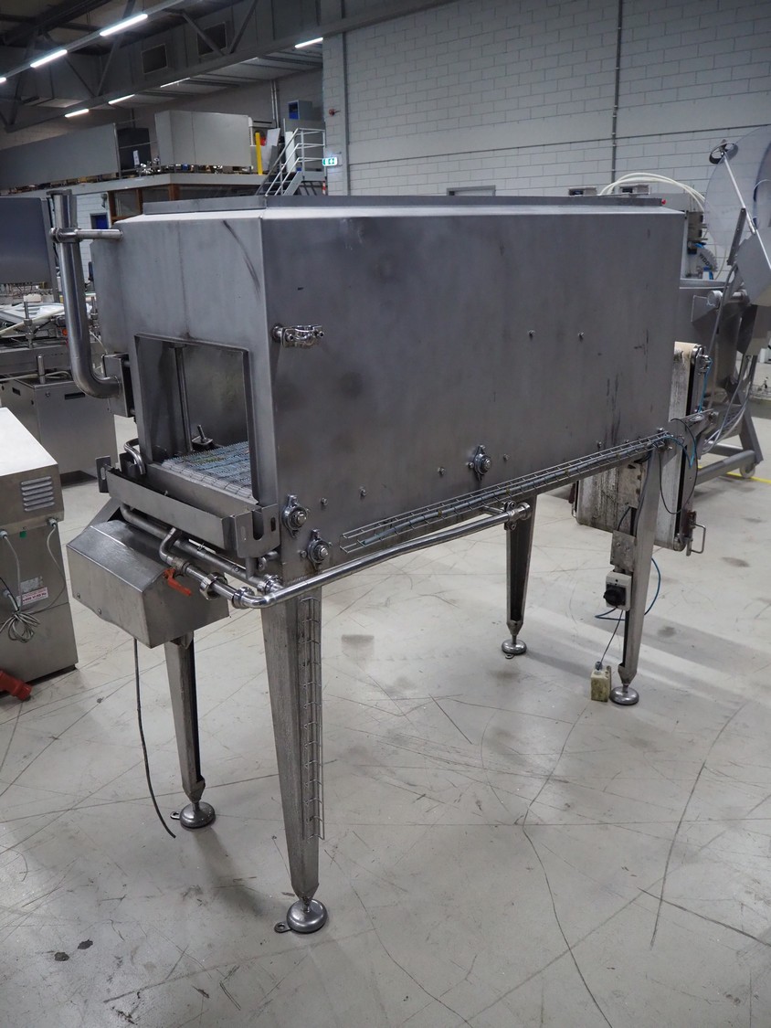 S/s paraffine tunnel, s/s mesh belt, belt width: 430 mm, clearance: 430 mmm x 180 mm, plastic outfeed belt, belt width: 430 mm, total dimensions: 2100 mm x 900 mm x 2900 mm.