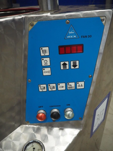 Düker / Rex piston filler, model: FAN 30, volume: 30 liter, dimensions: 820 mm x 600 mm x 1200 mm.