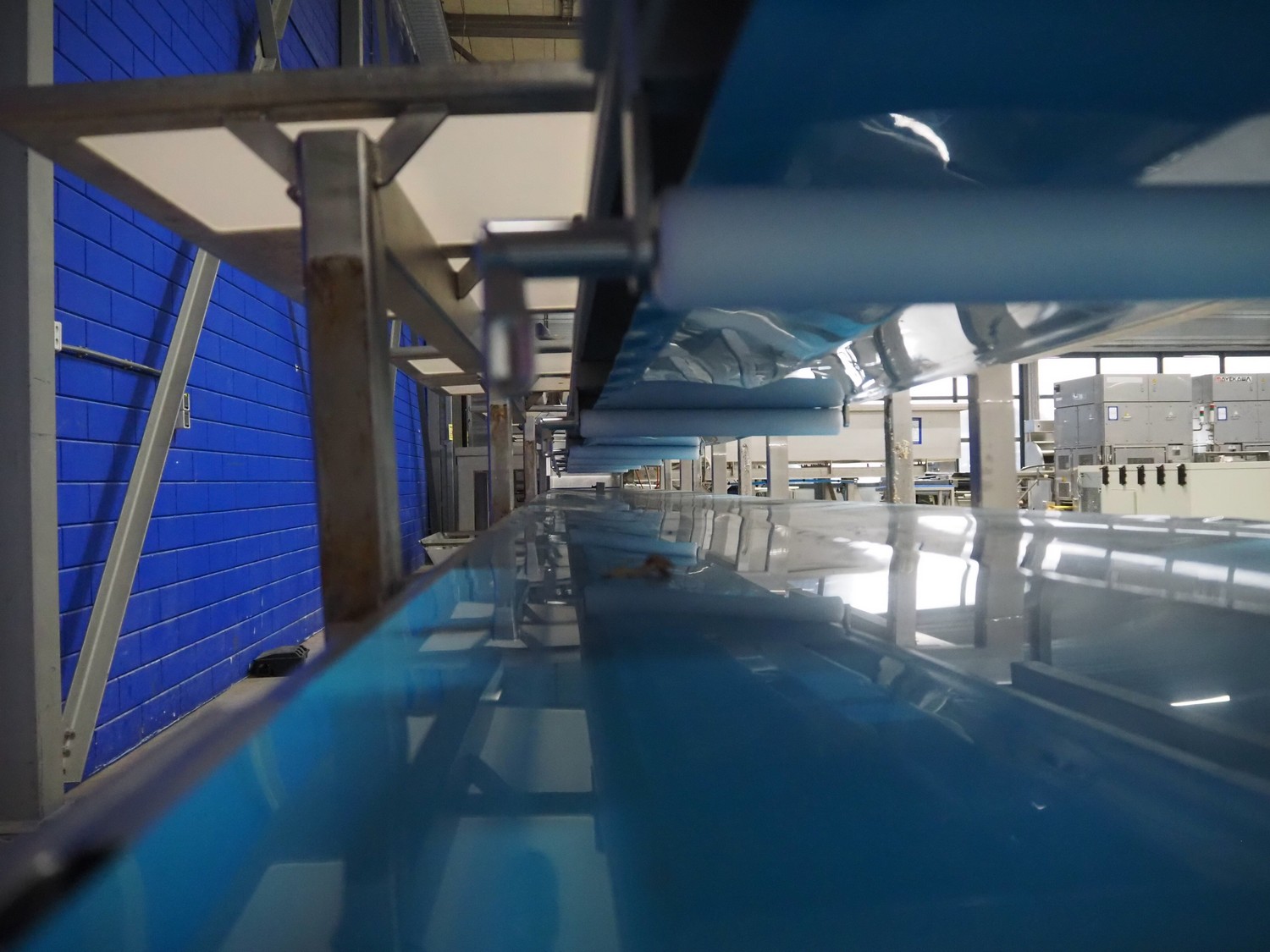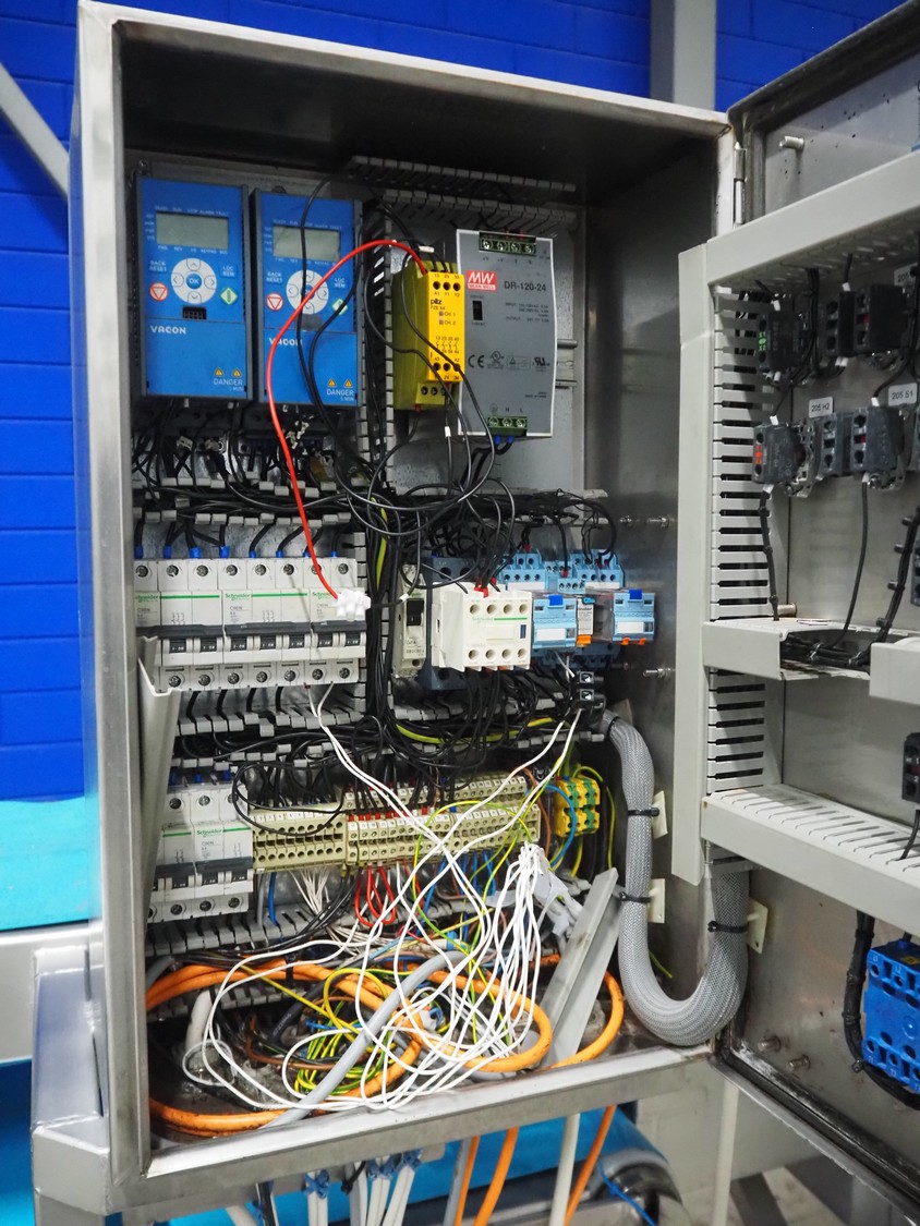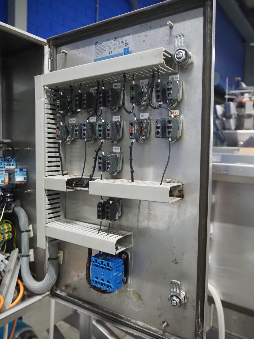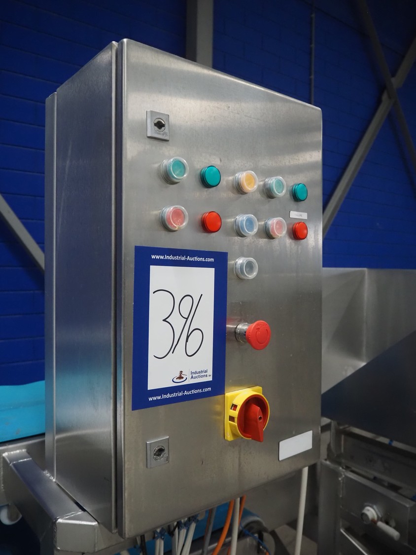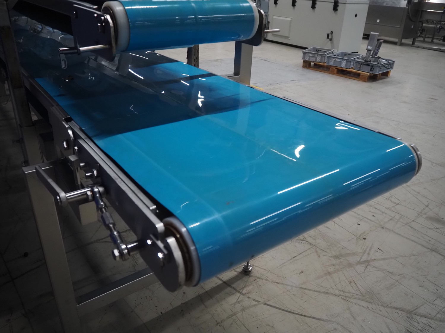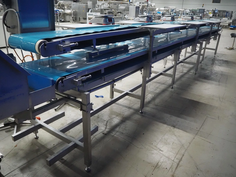 Sorting belt, s/s frame, plastic belts, belt width: 345 mm and 570 mm, total dimensions: 7800 mm x 1100 mm x 1820 mm.