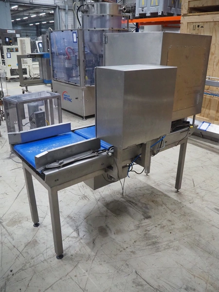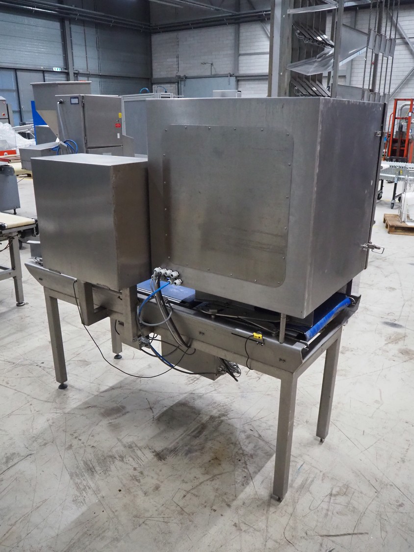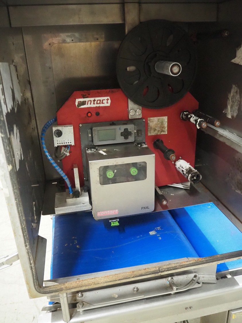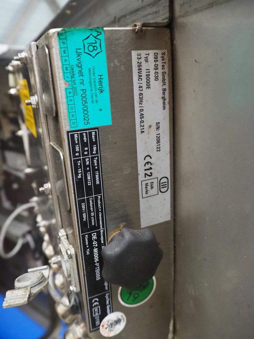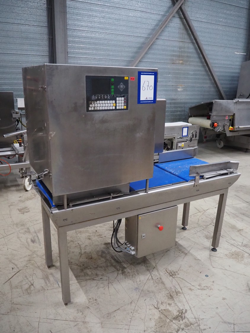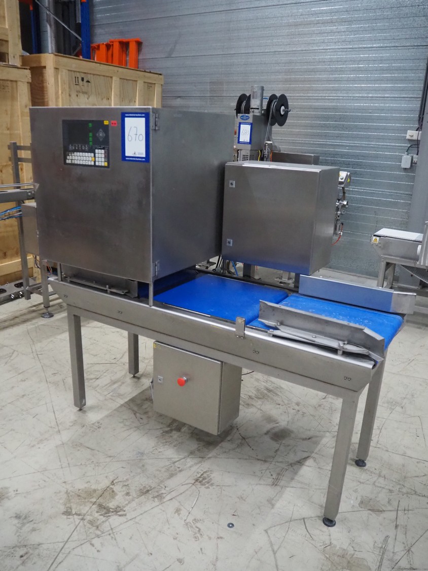 Checkweigher with labeller, plastic belts, belt width: 500 mm, total dimensions: 1700 mm x 900 mm x 1670 mm.