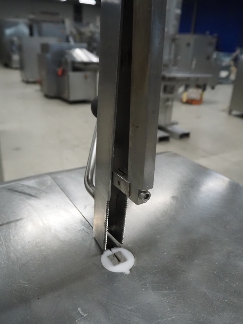 Reich bandsaw, model: 4205, number: 1034, 380 V, 50 Hz, 3.6 kW, dimensions table: 680 mm x 660 mm, total dimensions: 900 mm x 660 mm x 1580 mm.