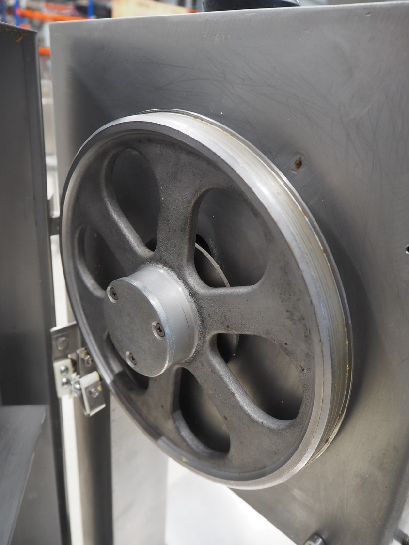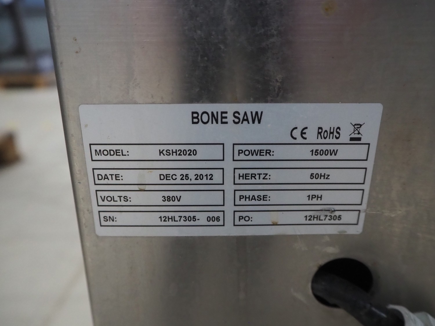 Mobile bandsaw, model: KSH 2020, serial number: 12HL7305-006, year of construction: 25-12-2012, 380 V, 1 PH, 50 Hz, 1500 W, dimensions table: 650 mm x 570 mm, total dimensions: 650 mm x 580 mm x 1560 mm. Without saw.