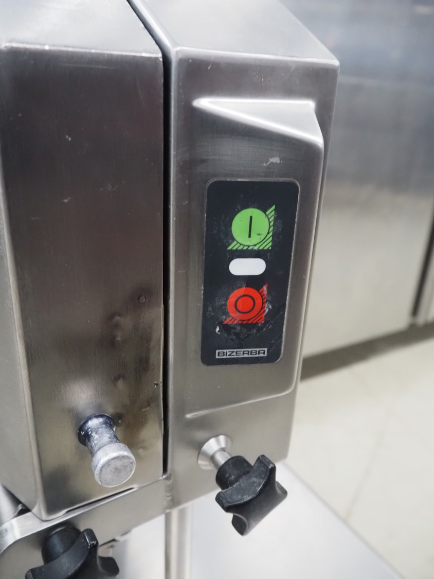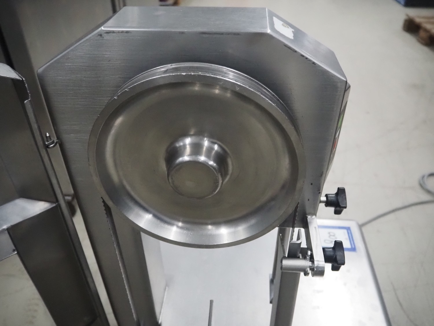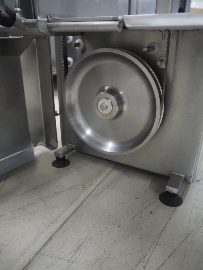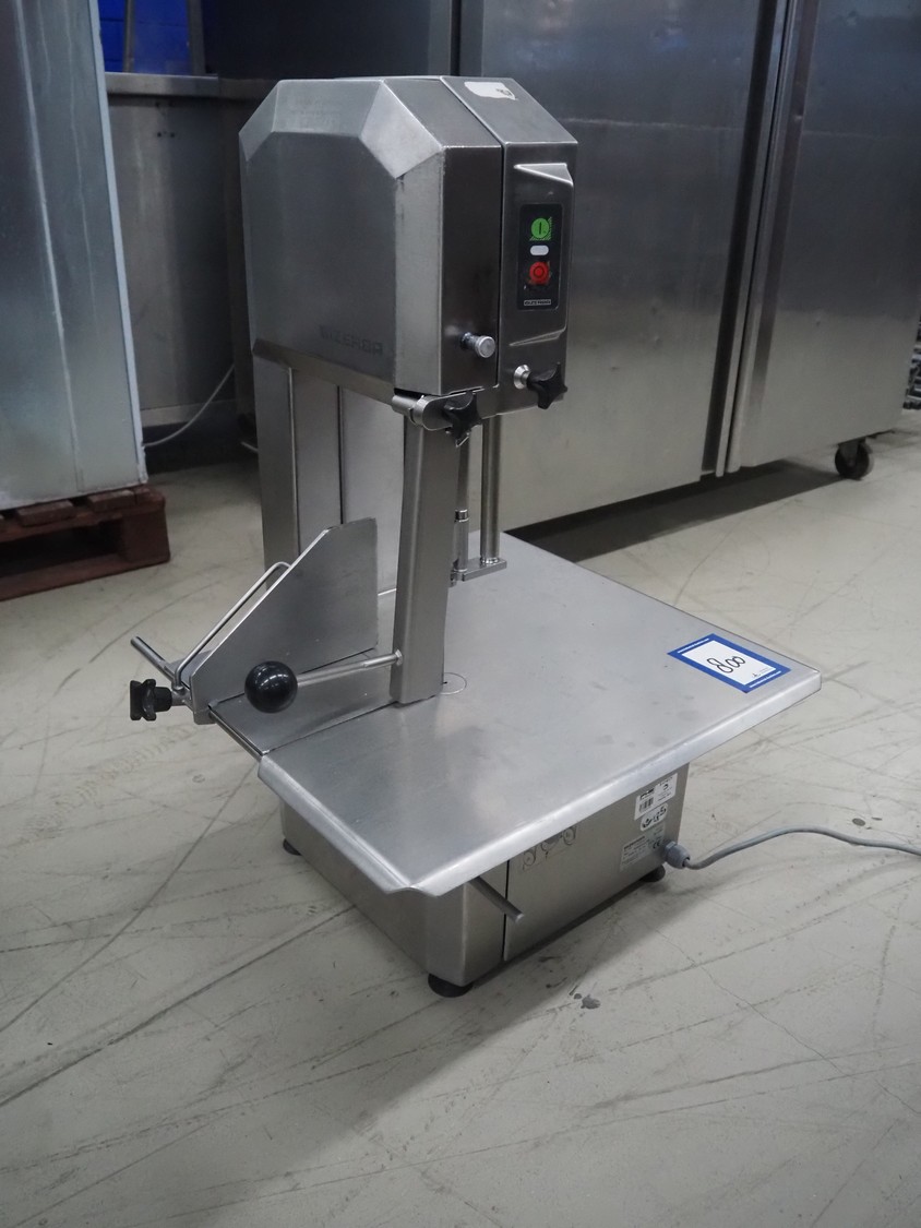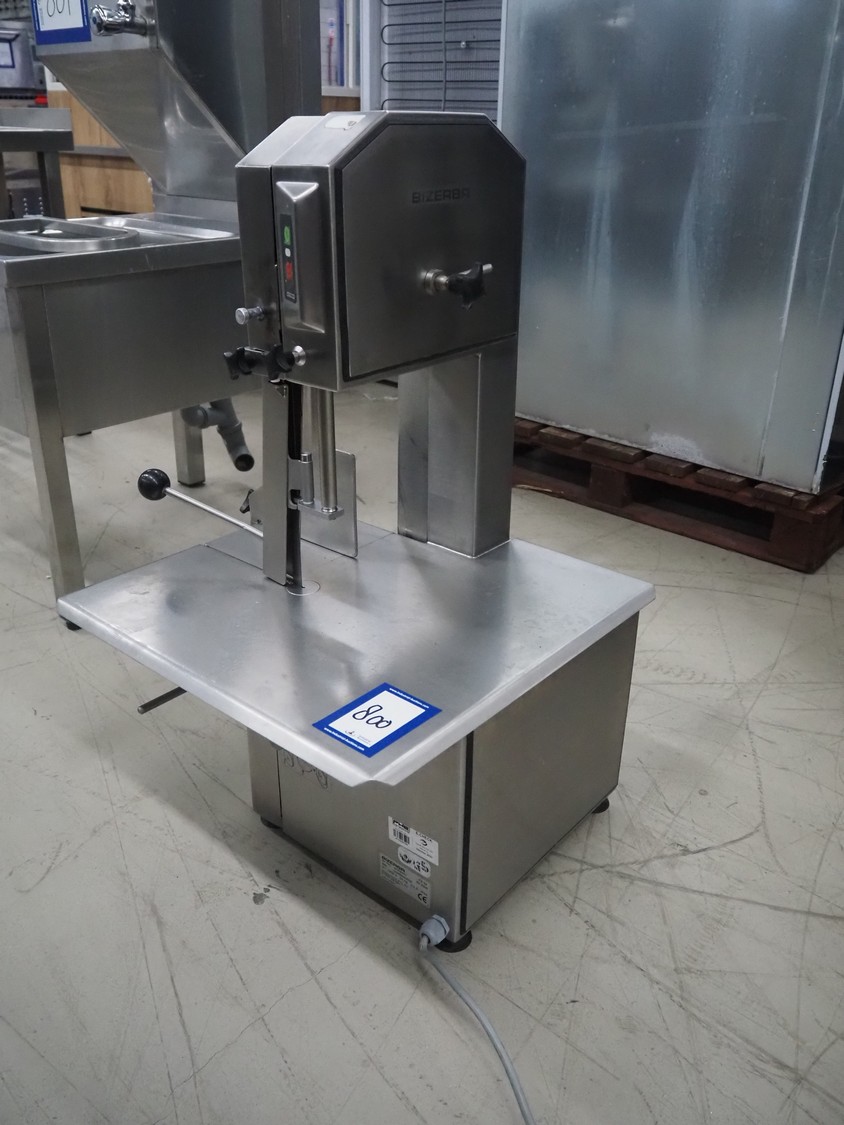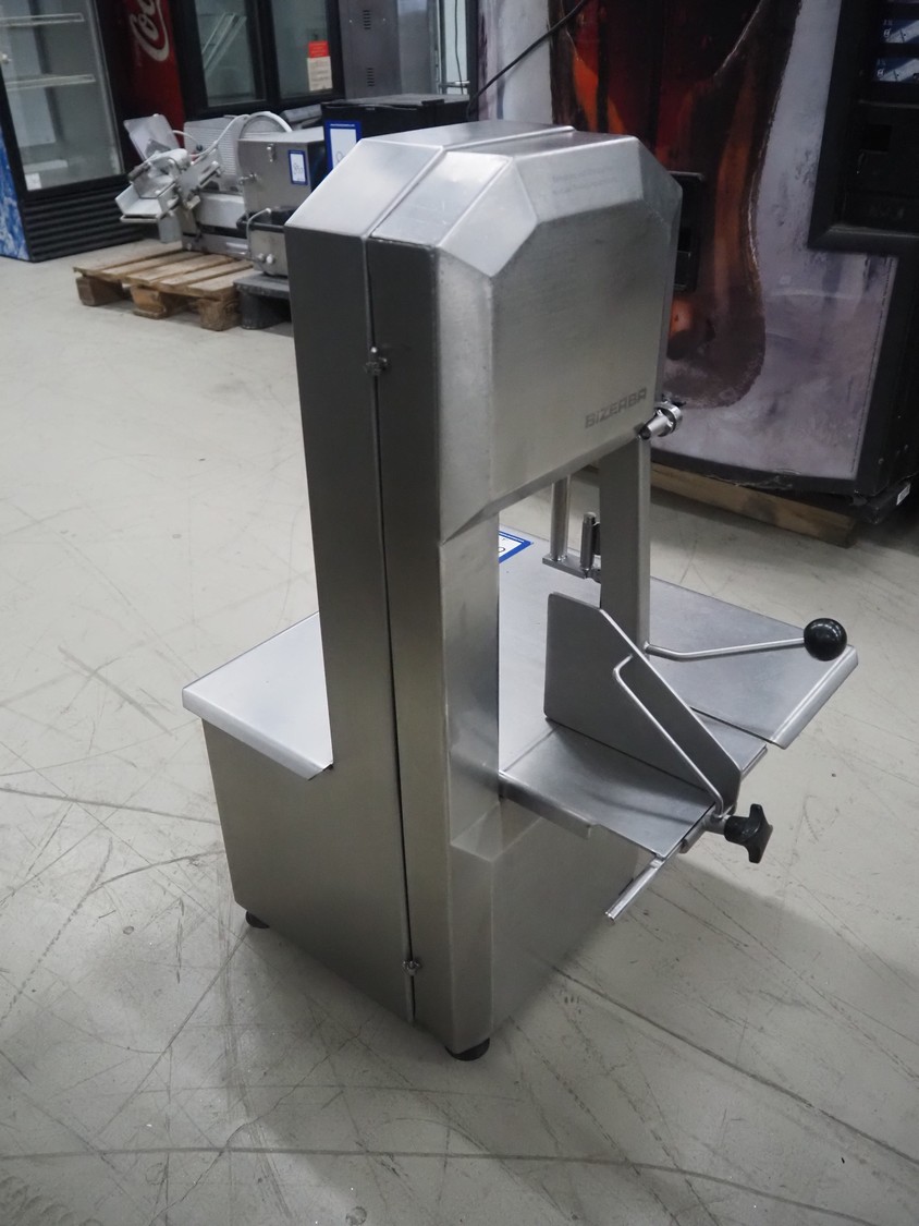 Bizerba bandsaw, model: FK 23, number: 10558007, year of construction: 2009, 400 V, 3 Ph, 50 Hz, 2.3 A, dimensions: 530 mm x 520 mm x 830 mm.
