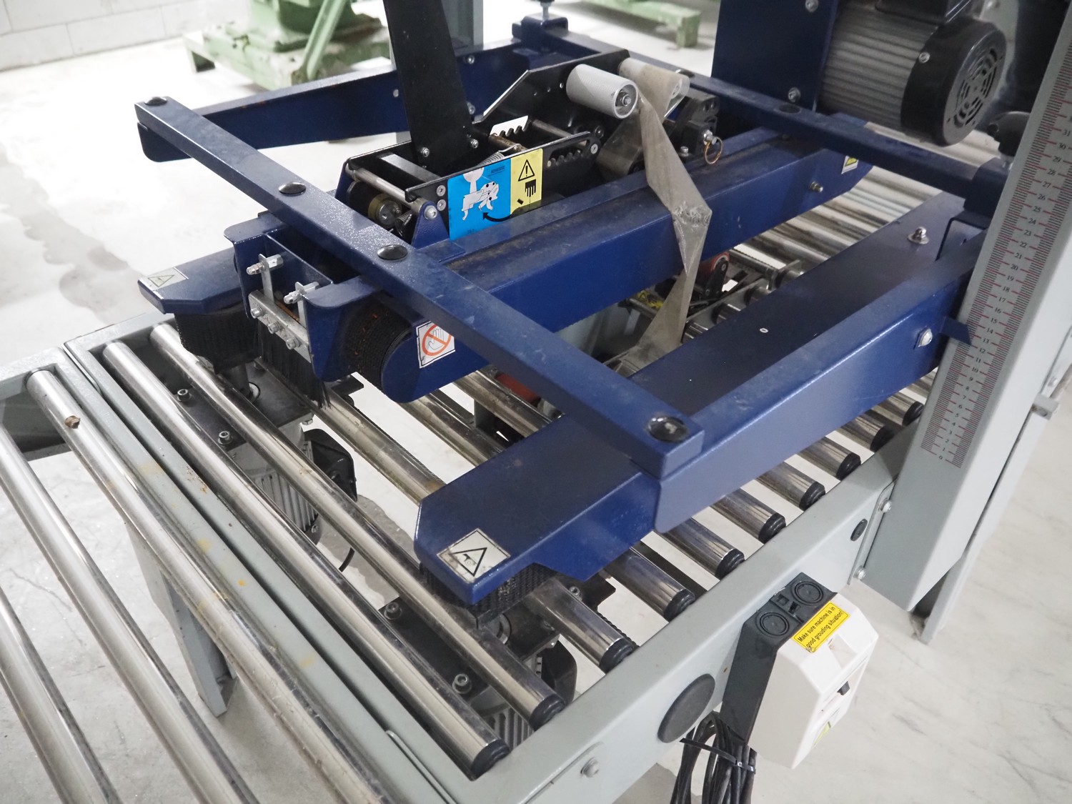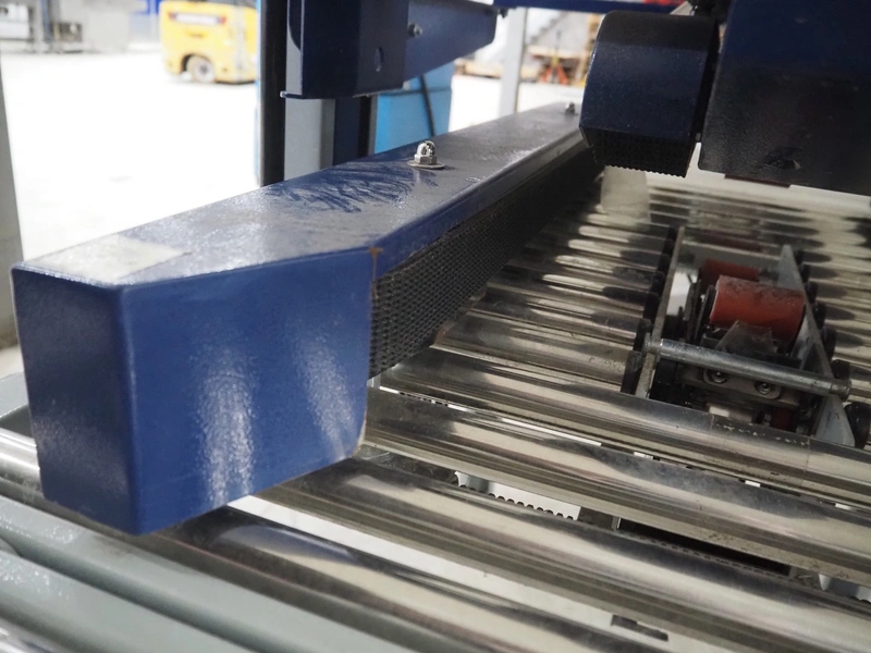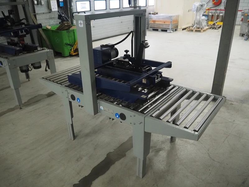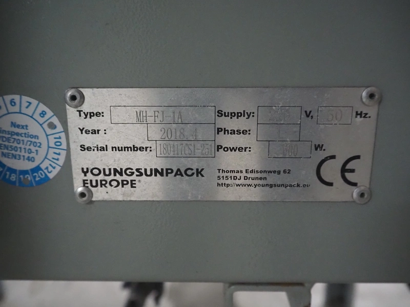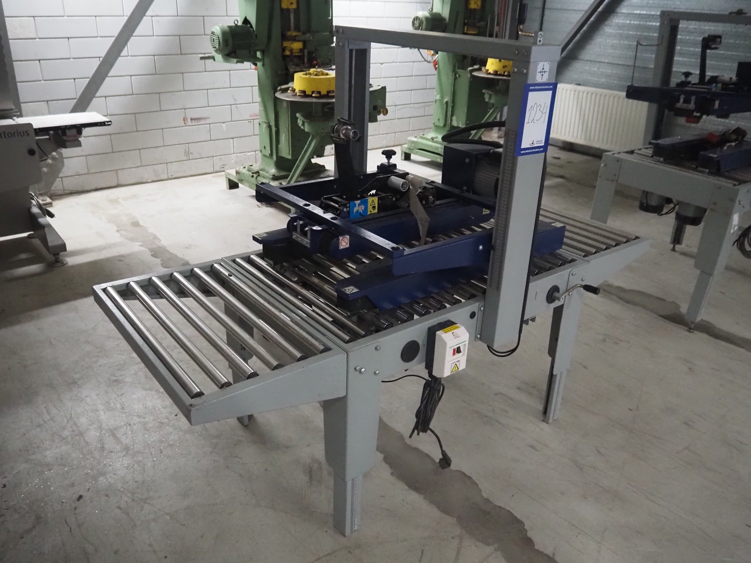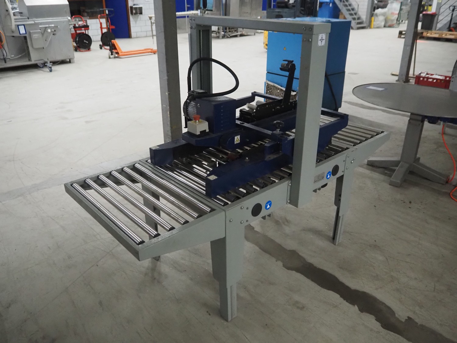 Youngsunpack Europe box closing machine, type: MH-FJ-1A, serial number: 180417CSI-251, year of construction: 4.2018, 220 V, 1 Ph, 50 H, 600 W, s/s rollers, roller width: 680 mm, plastic belts, belt width: 50 mm, total dimensions: 1980 mm x 950 mm x 1580