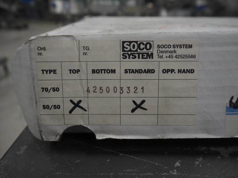 2 boxes with Soco Systems taper for box closing machine, dimensions: (2x) 420 mm x 80 mm x 220 mm.