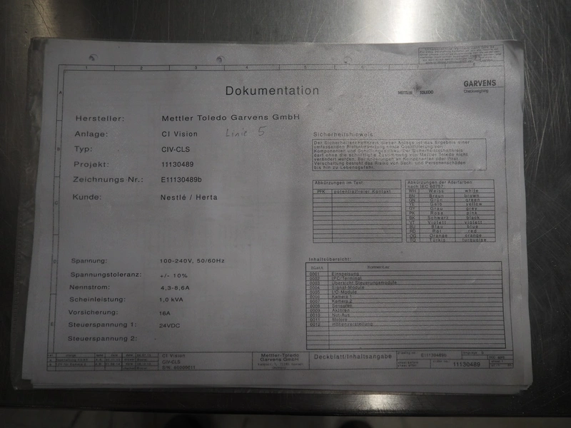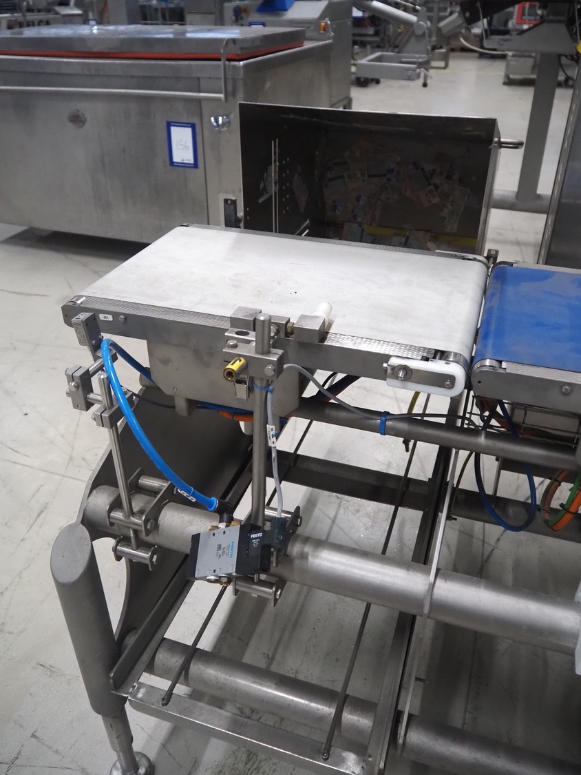 Mettler-Toledo Garvens GmbH checkweigher, type: CLS 200, number: 60000011, year of construction: 2013, 230 V, 50 Hz, plastic belt, belt width: 300 mm, clearance: 300 mm x 35 mm, total dimensions: 1800 mm x 1200 mm x 1700 mm.