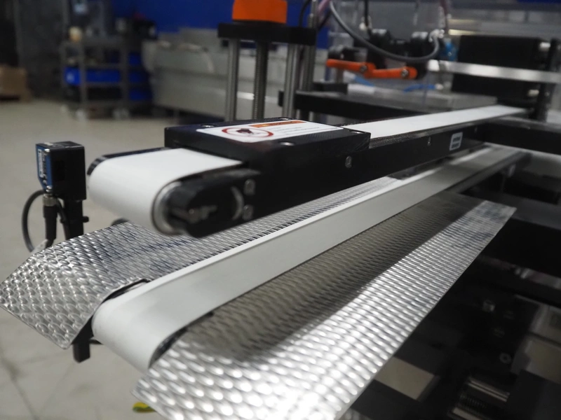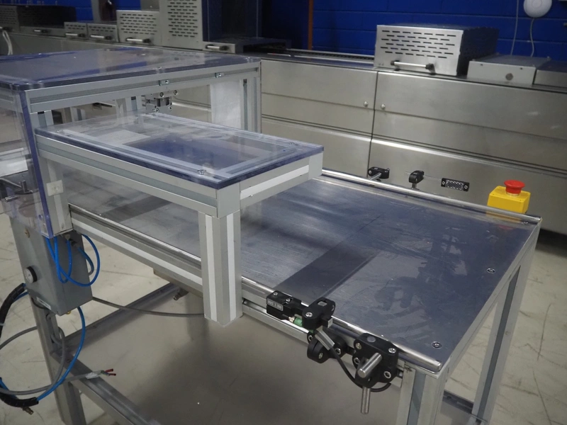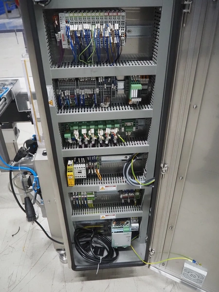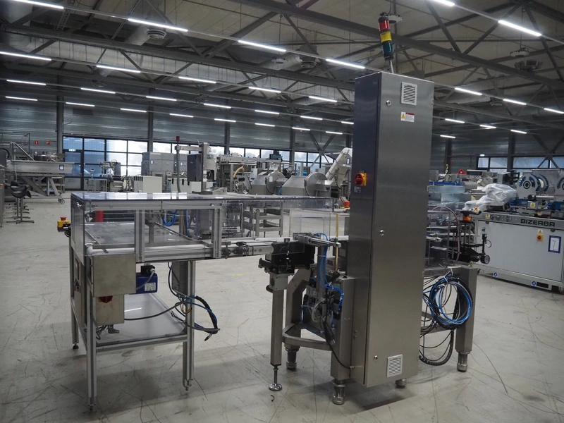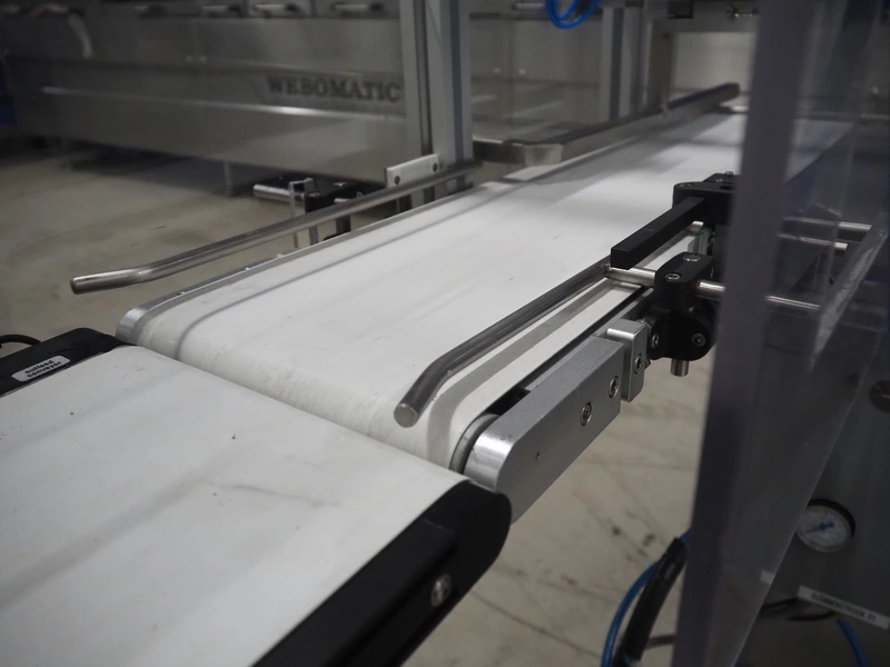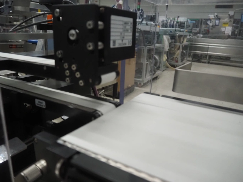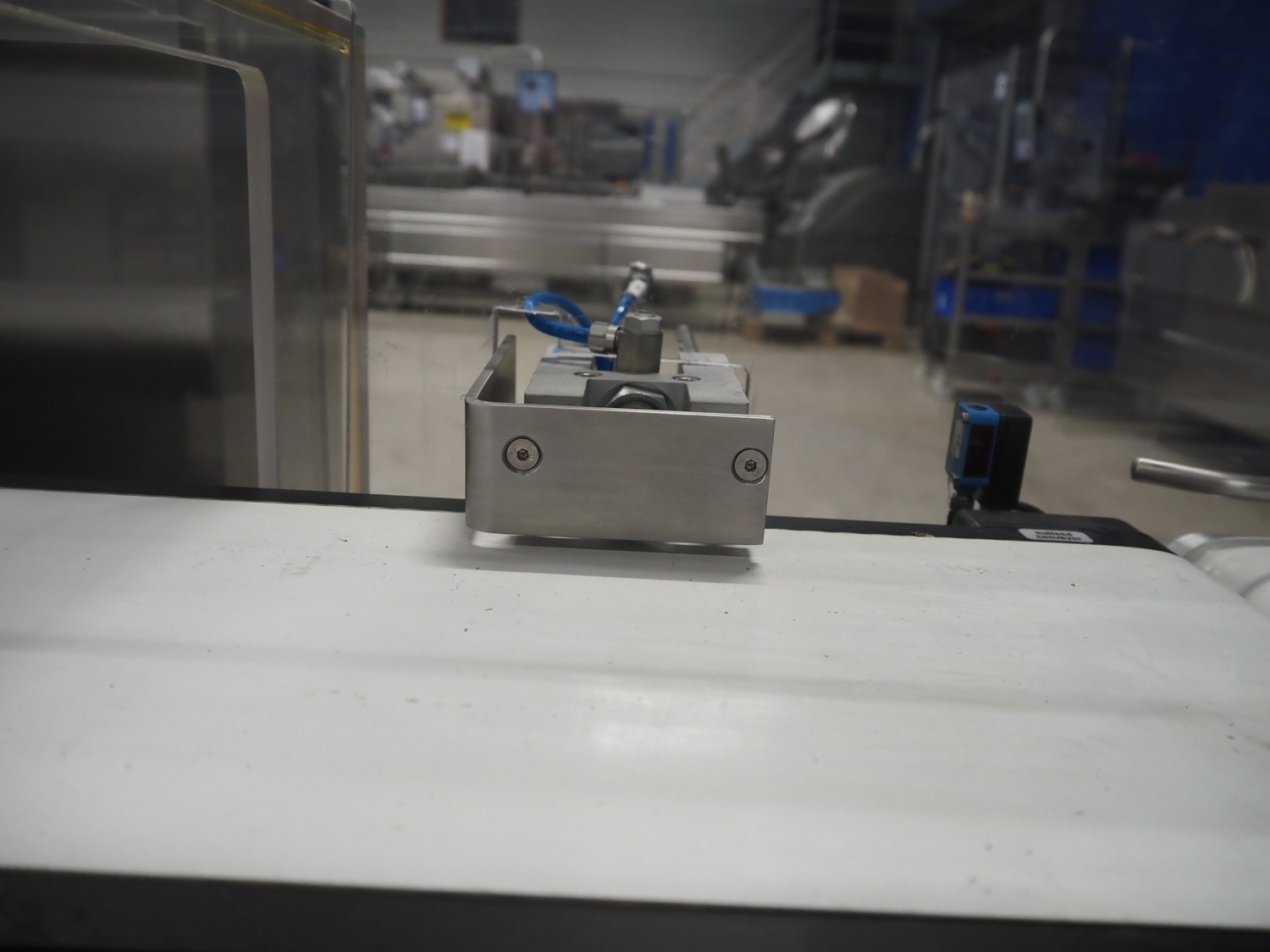OCS Checkweighers GmbH checkweigher with 2 rejecters, type: HC, serial number: 9003420, year of construction: 2015, 230 V, 1 Ph, 50 Hz, capacity: 750 gram, plastic belts, belt width: 32 mm, 195 mm and 220 mm, total dimensions: 2800 mm x 1650 mm x 1800 mm.