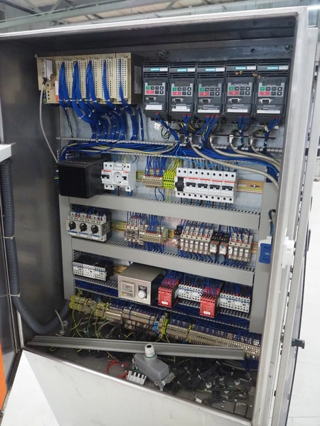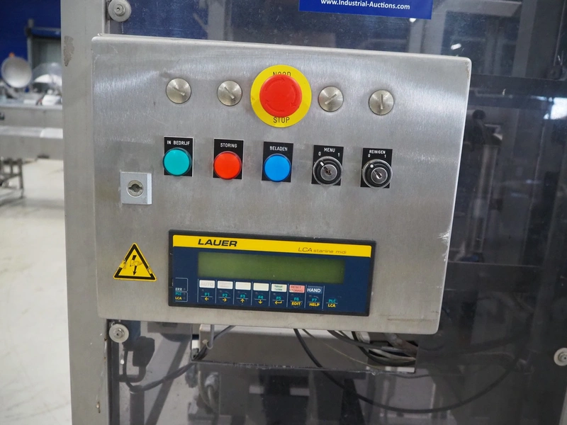 Groba horizontal cheese divider, type: HHDM 520-S, year of construction: 1999, belt width: 340 mm and 235 mm, roll width: 2 x 250 mm, consisting of 2 parts, dimensions: 3250 mm x 1100 mm x 2100 mm and 2800 mm x 1100 mm x 2080 mm.