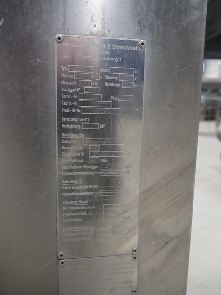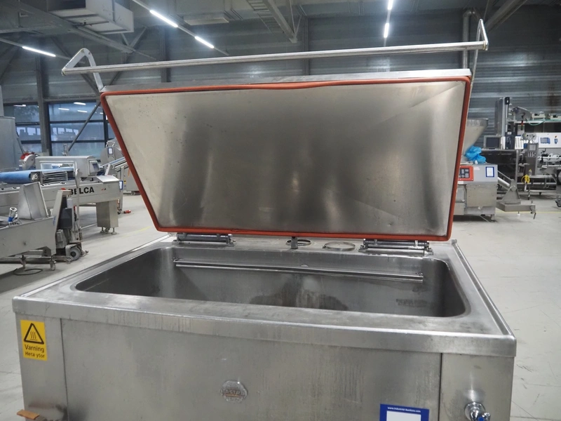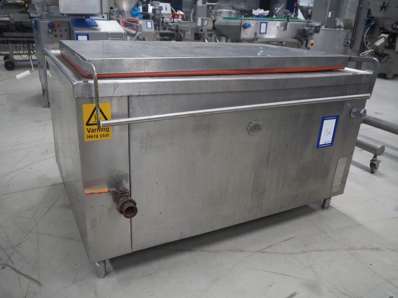 Bastra cooking vessel, type: 8110, year of construction: 2006, 230 V, 50 Hz, 1.5 kW, volume: 500 liter, gas heated, dimensions: 1700 mm x 1350 mm x 1100 mm.