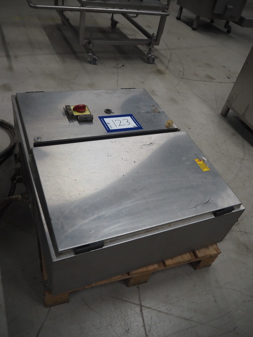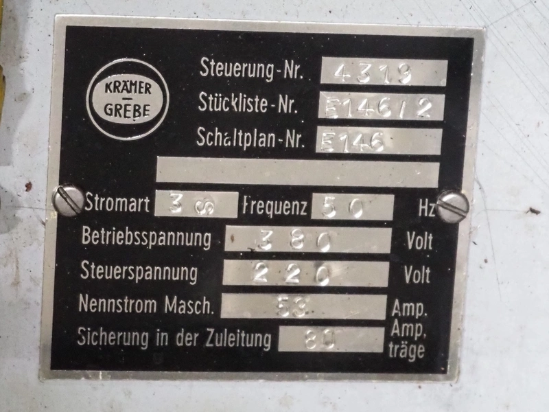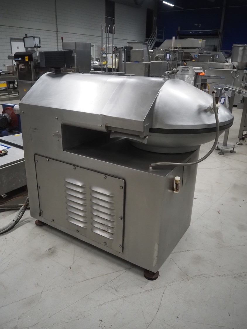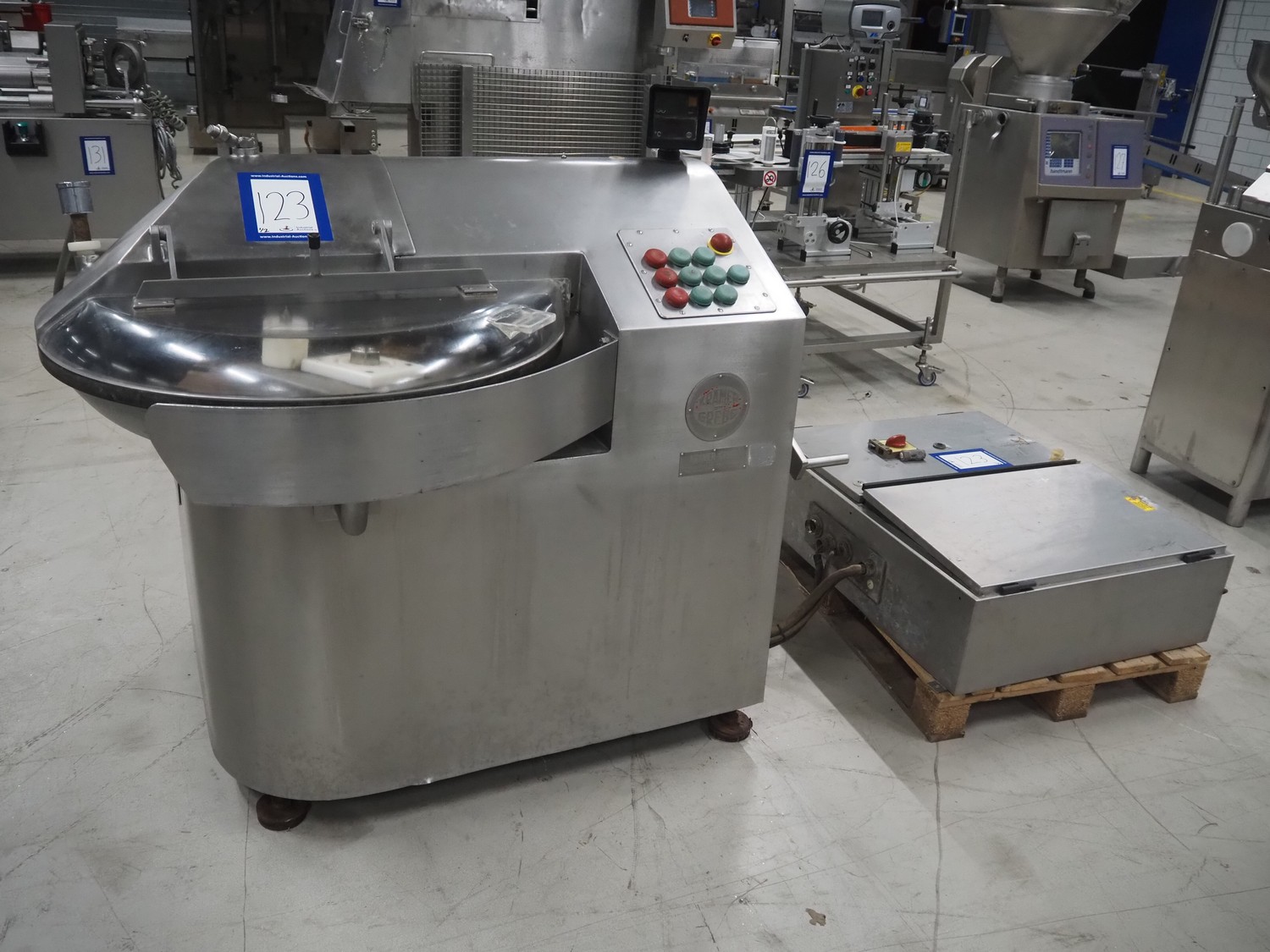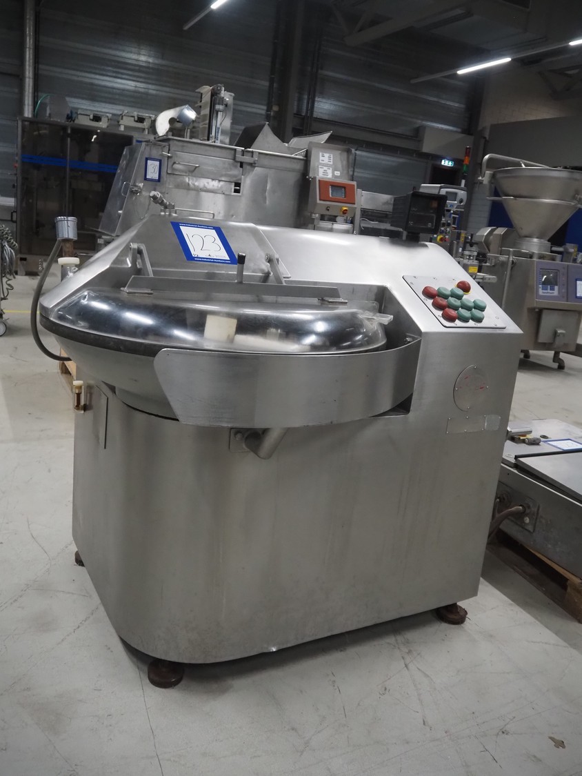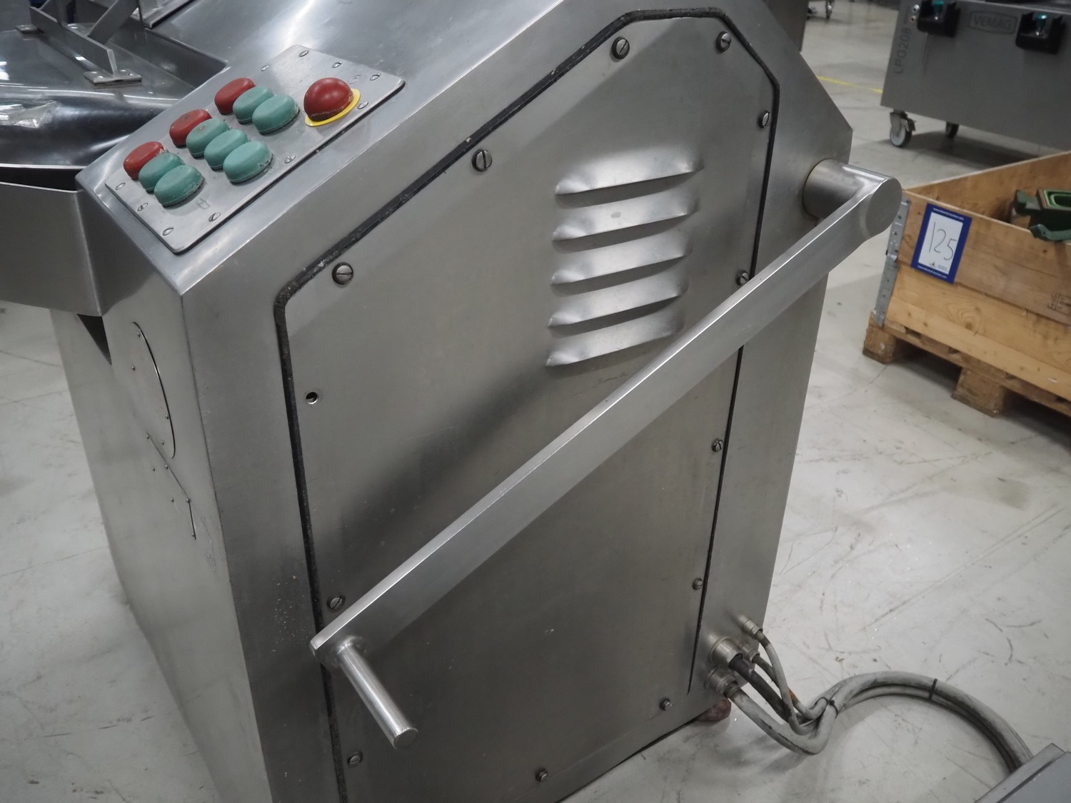 Kramer + Grebe cutter with s/s switch cabinet, type: SM 65, machine number: 1 8/623/1 83, year of construction: 1983, 380/220 V, 3 Ph, 50 Hz, 53 A, steel bowl, volume: 65 liter, dimensions: 1600 mm x 1150 mm x 1400 mm, dimensions switch cabinet: 1000 mm x 300 mm x 850 mm. Including extra knives.