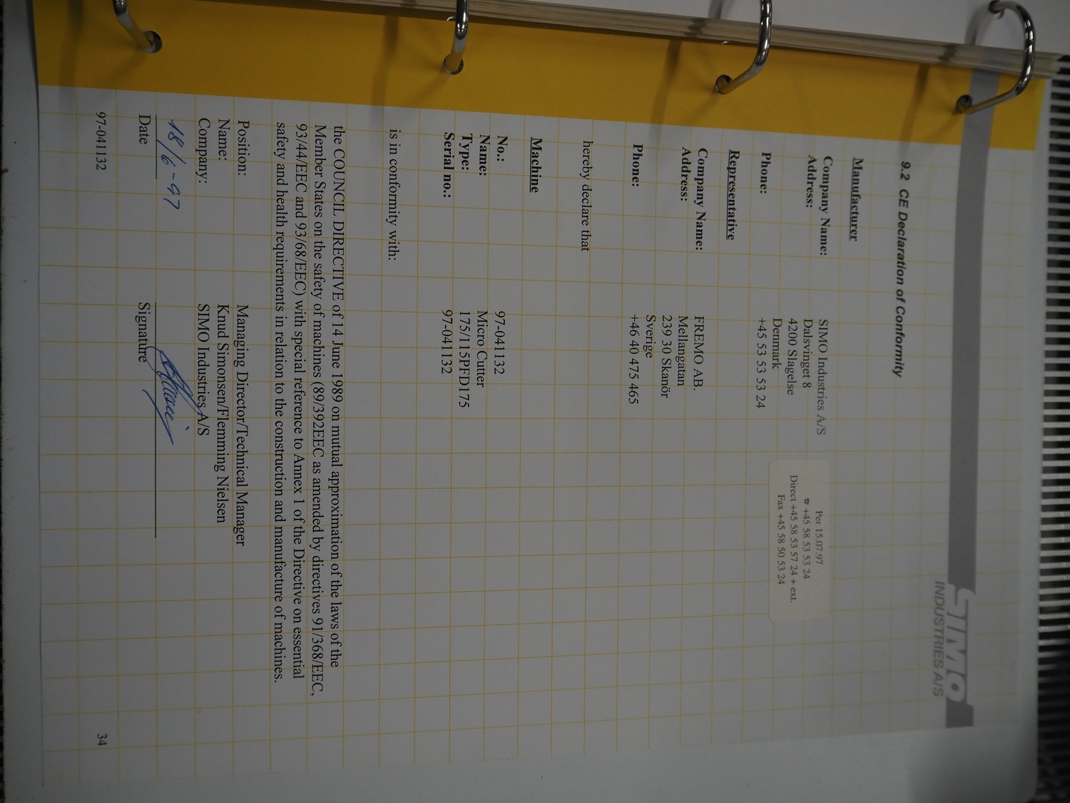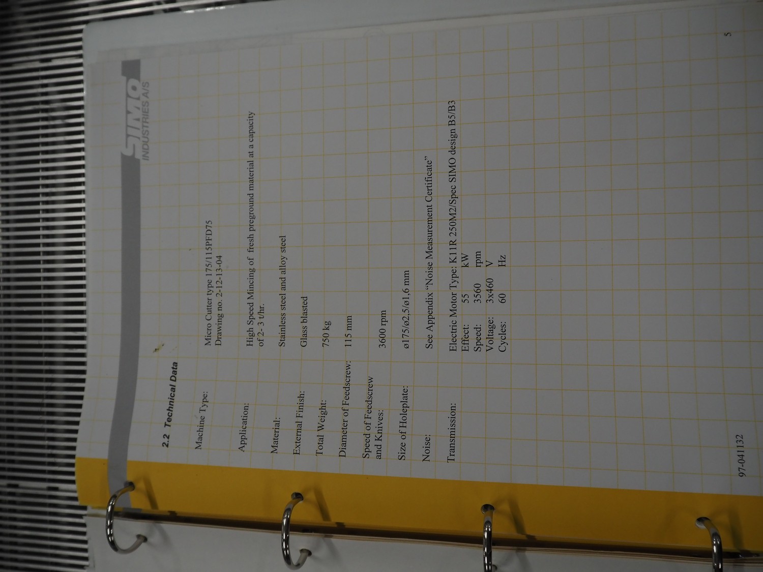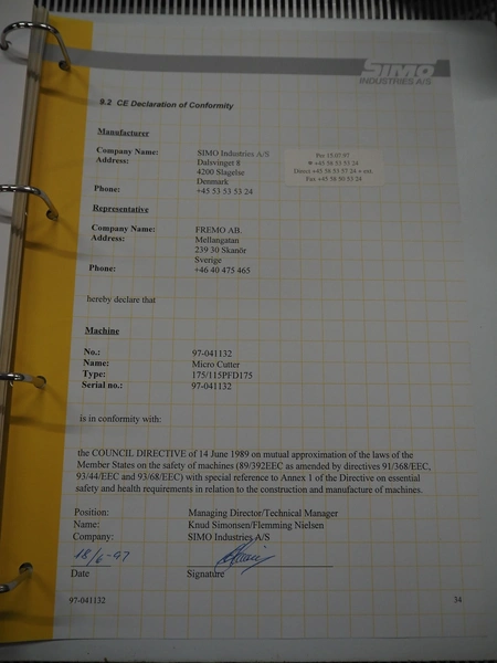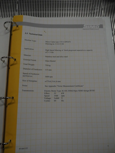 Simo microcutter, type: 175/115PFD175, serial number: 97-041132, year of construction: 1997, diameter plate: 210 mm, total dimensions: 1400 mm x 700 mm x 1450 mm.