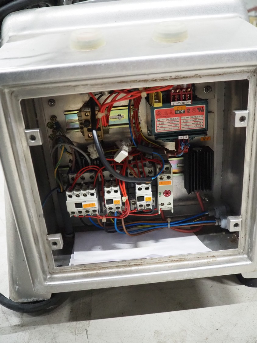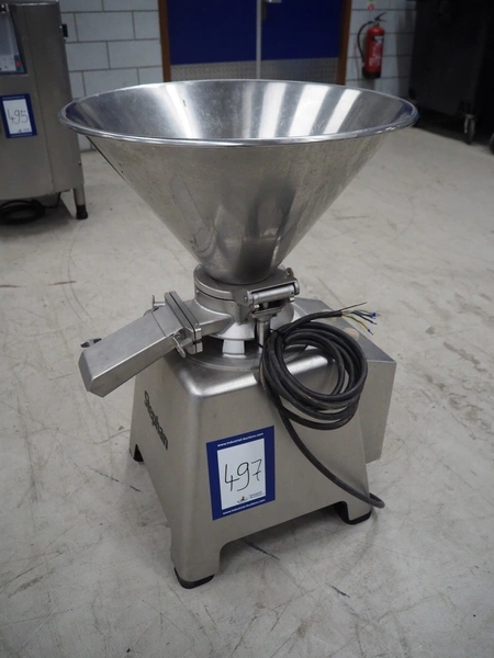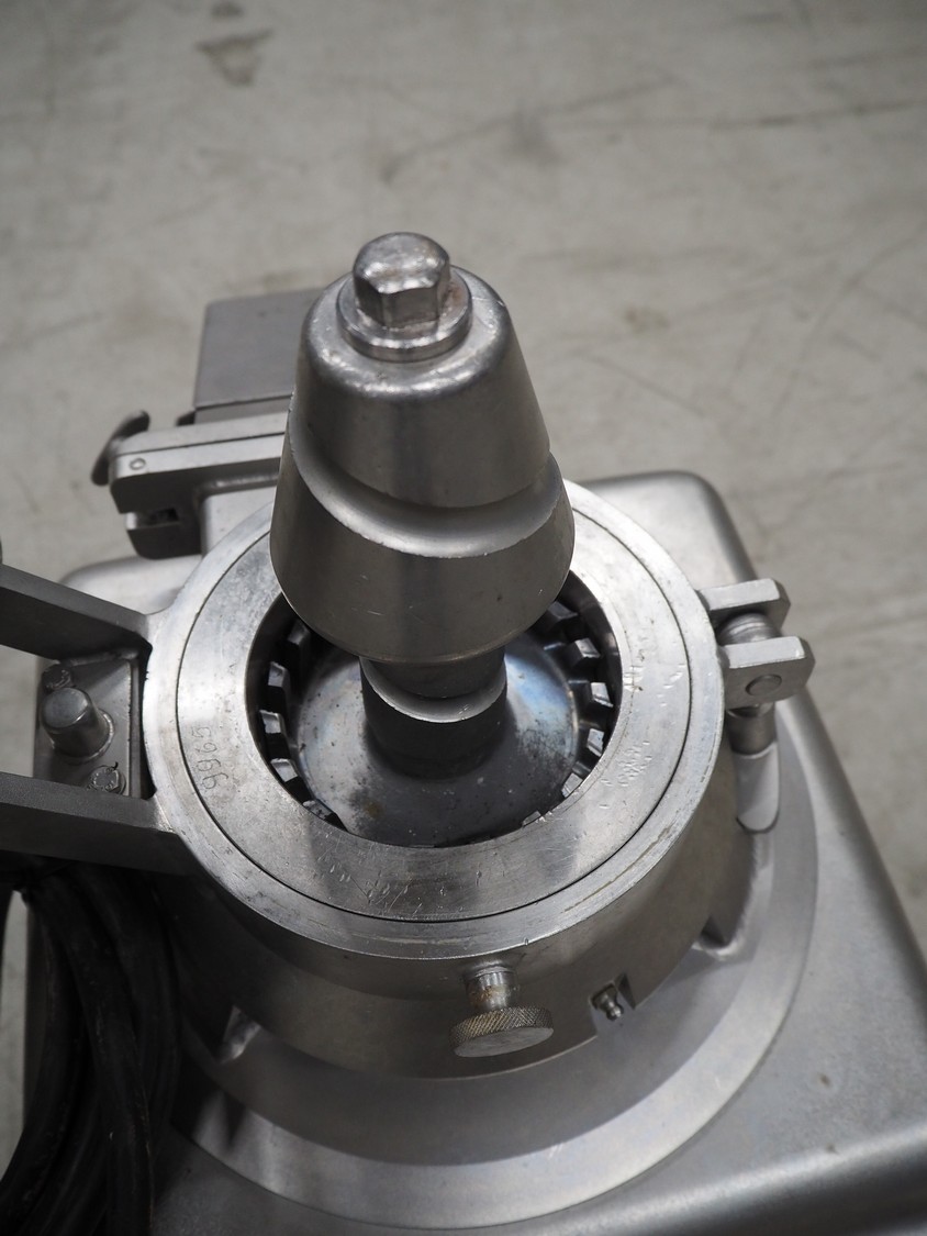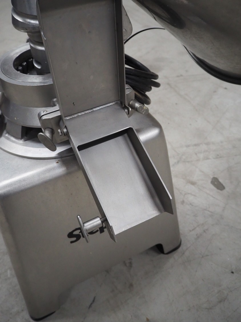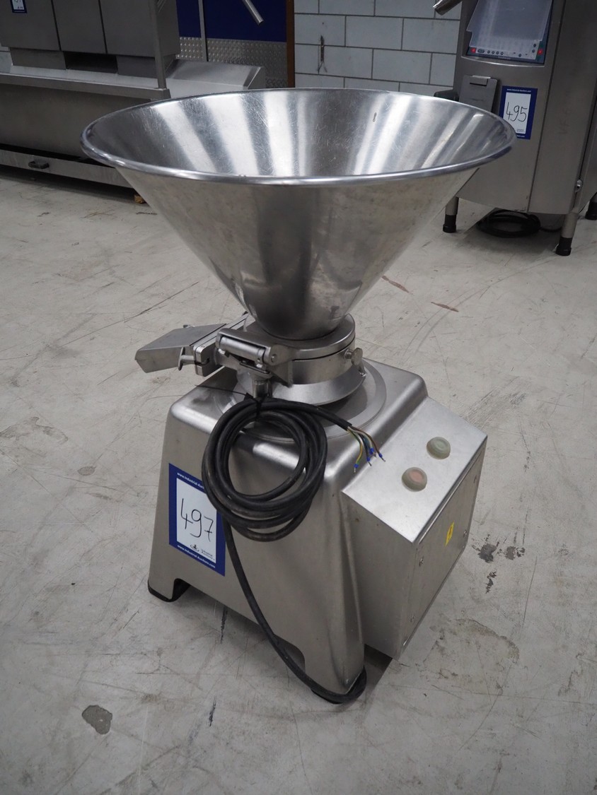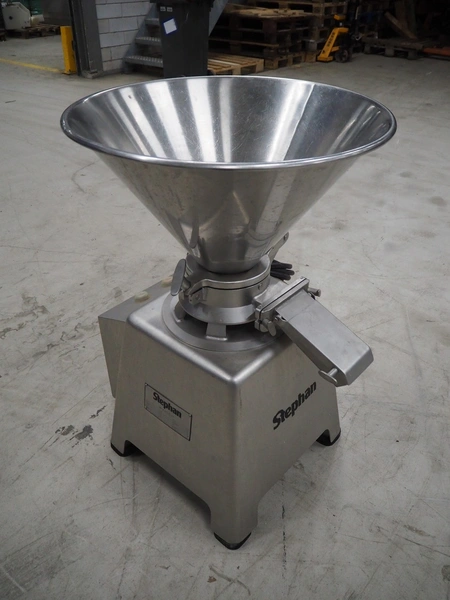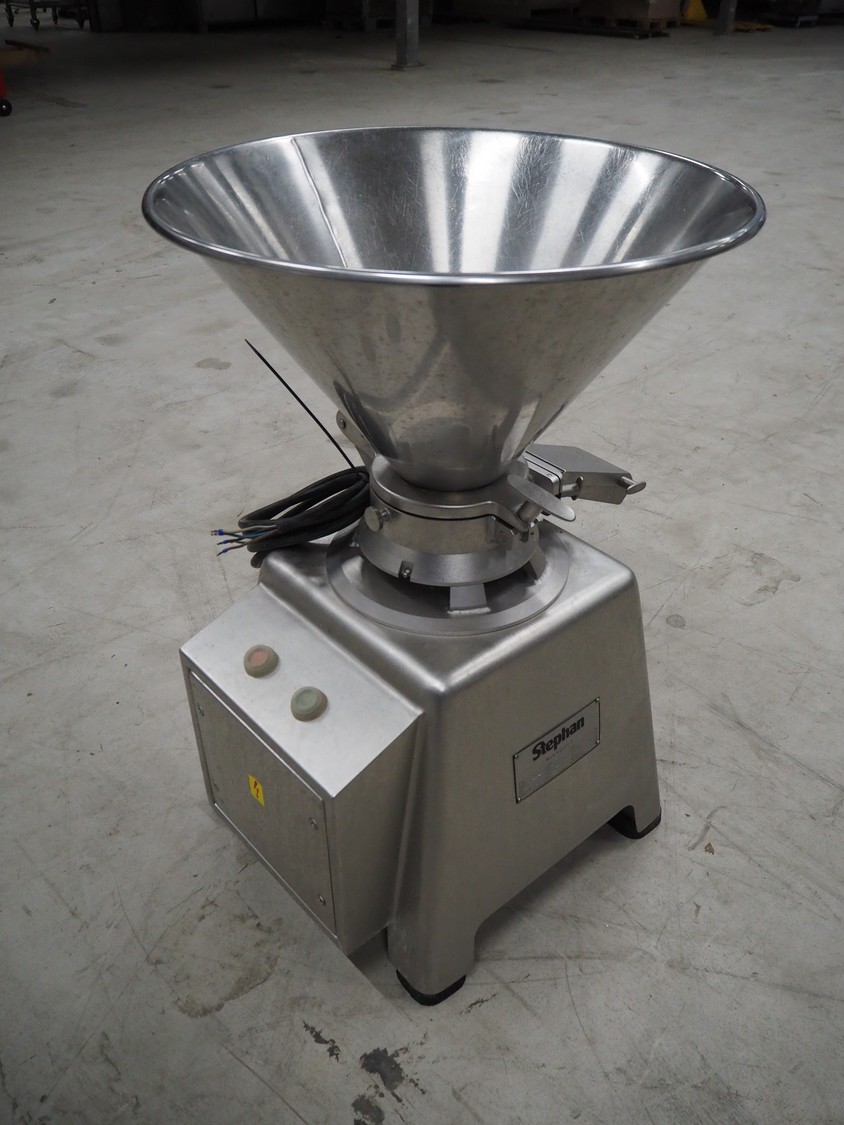 Stephan microcutter, type: VC10, number: 4811150, year of construction; 1991, 380 V, 50 Hz, 15.1 A, 7.5 kW, knife width: Ø 125 mm, outfeed clearance: 100 mm x 30 mm, total dimensions: 700 mm x 620 mm x 950 mm.
