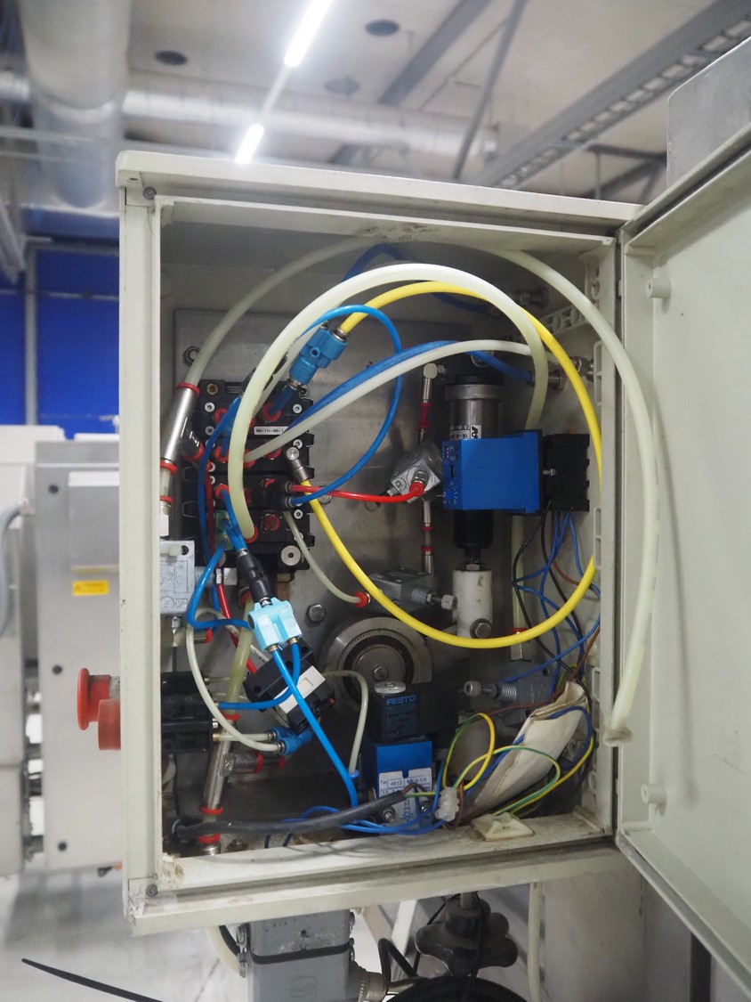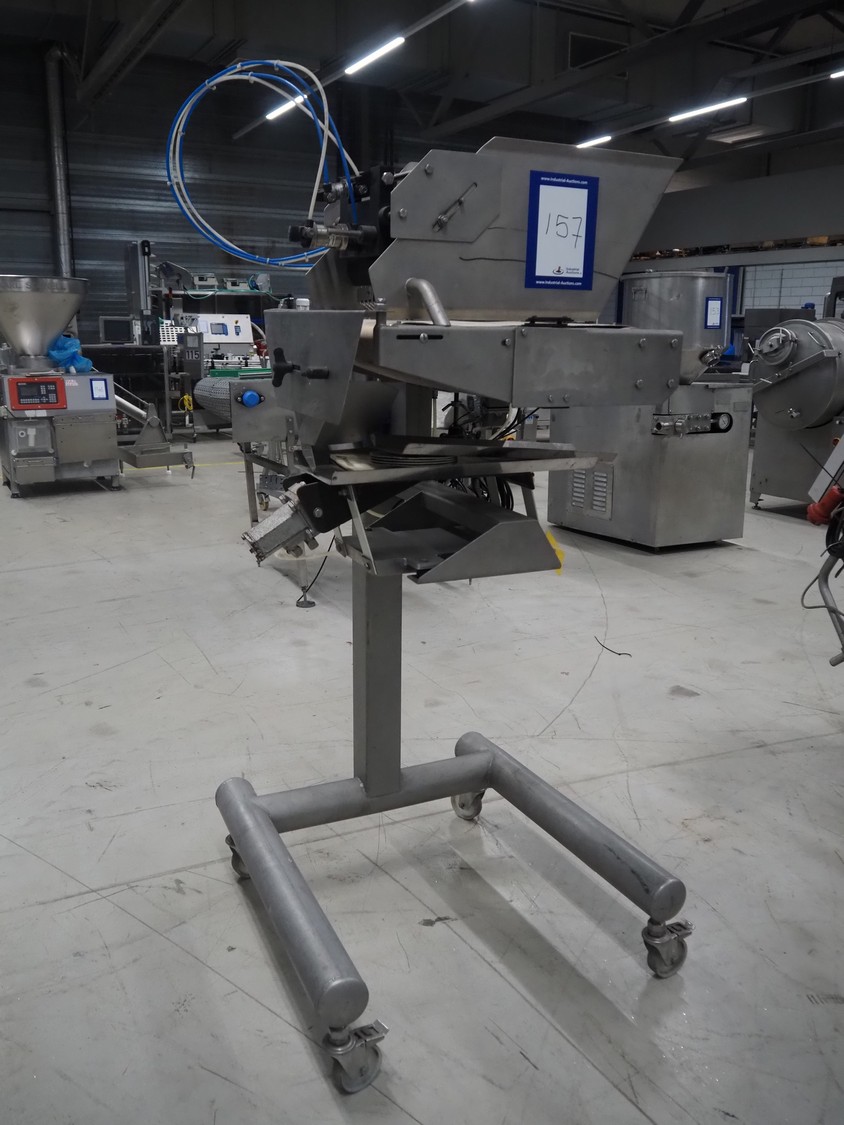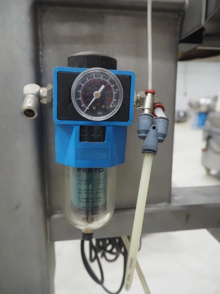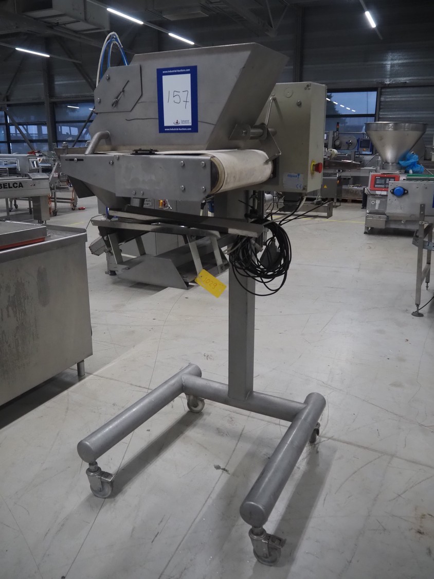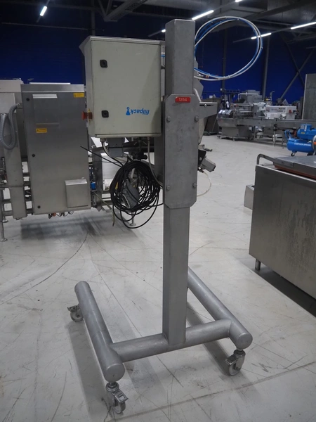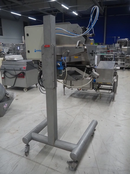 Fillpack mobile infeed hopper, type: DV2, number: 90105, year of construction: 1999, plastic belt, belt width: 680 mm, gutter width: 210 mm, total dimensions: 840 mm x 900 mm x 1800 mm.