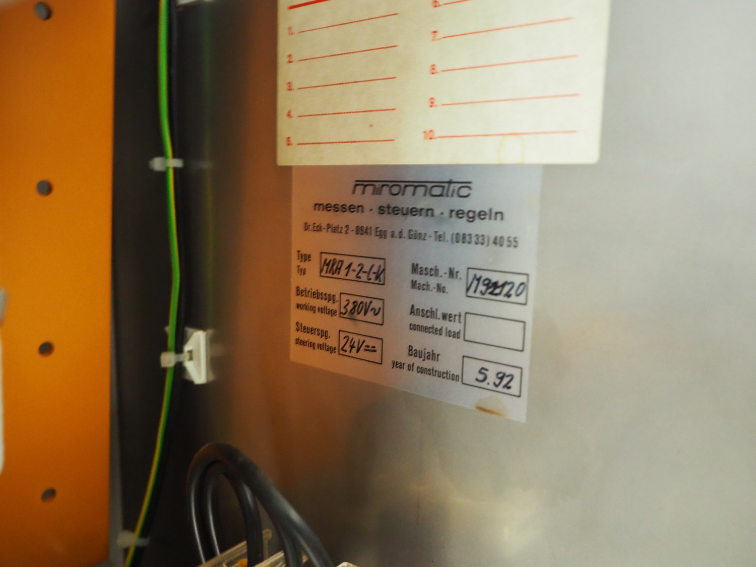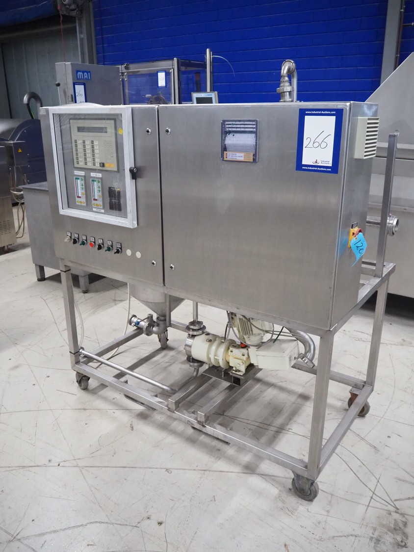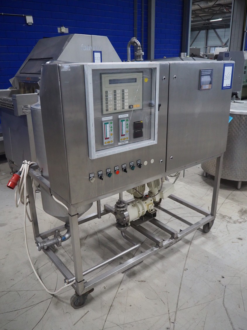 Miromatic mobile mixing unit, type: MRA 1-2-C-K, 380 V, IKA head reactor, type: 1000/25, number: 96-2138, year of construction: 1996, ORLITA pump, type: MF 15.30, serial number: 660124, volume tank: 30 liter, dimensions: 1560 mm x 910 mm x 1800 mm.