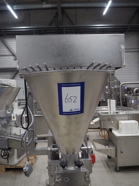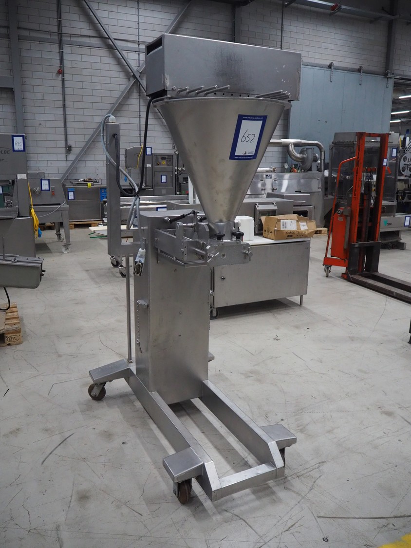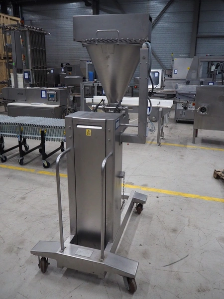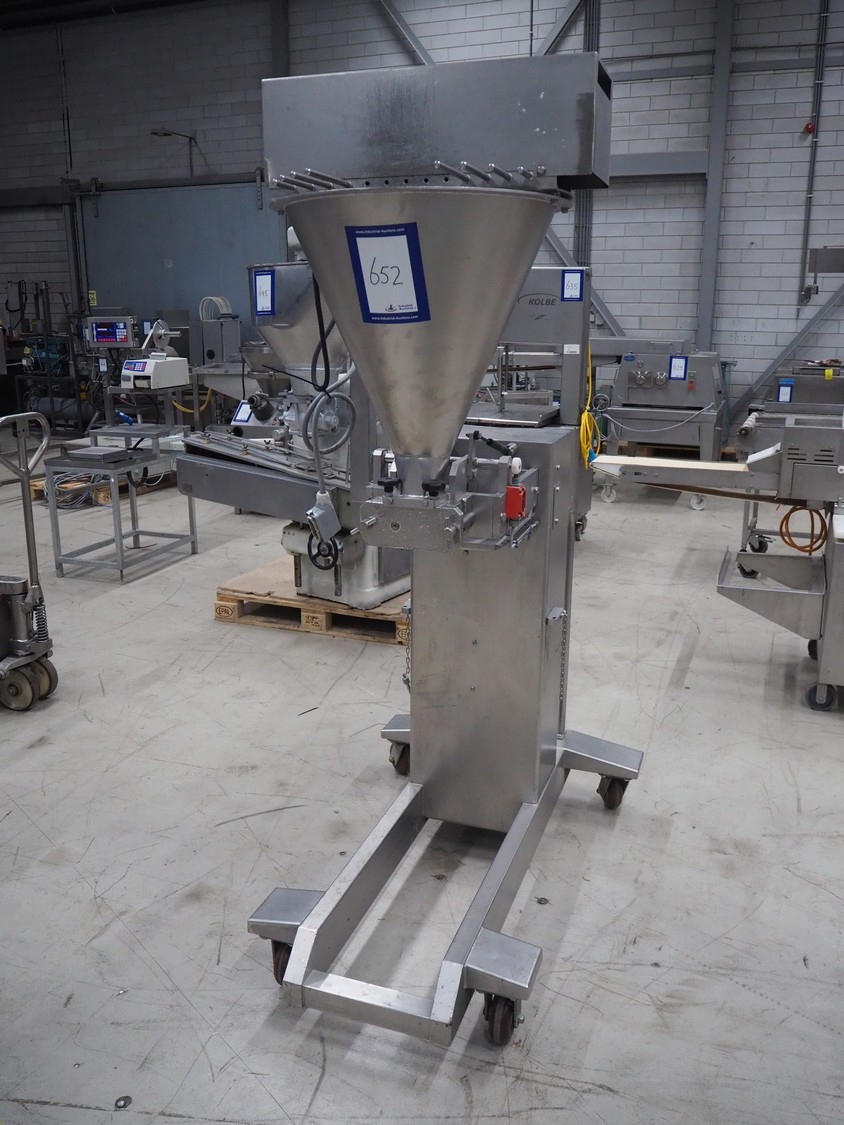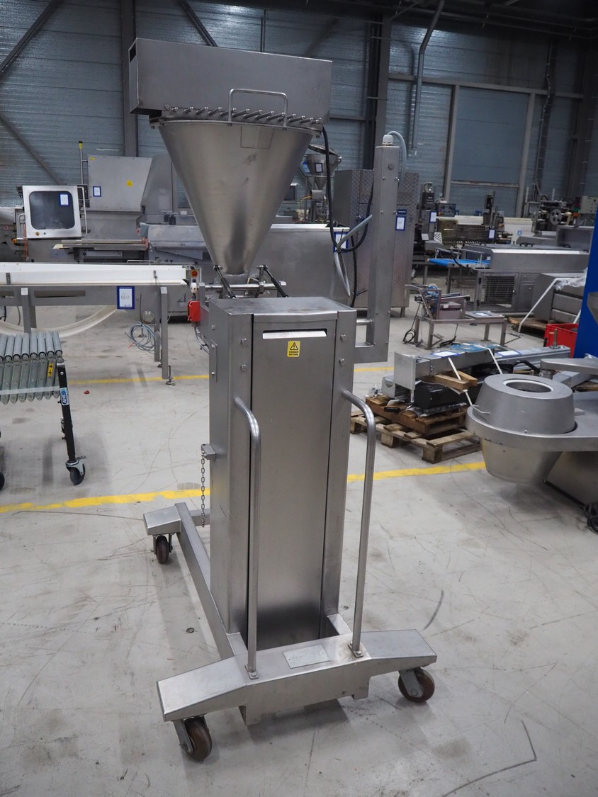 Rademaker mobile 2 head depositor, type: DEPOSITOR, serial number: 6320-709, year of construction: 2003, weight: 260 kg, outfeed diameter: 25 mm, total dimensions: 920 mm x 1400 mm x 2100 mm.