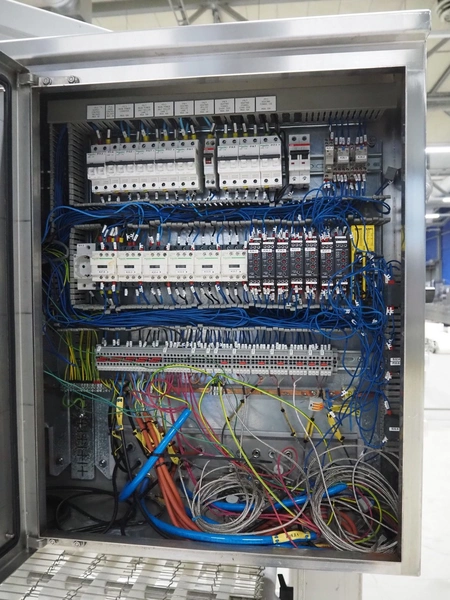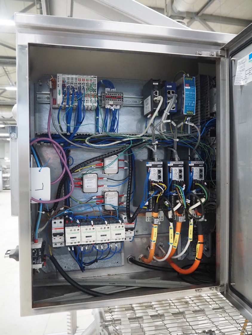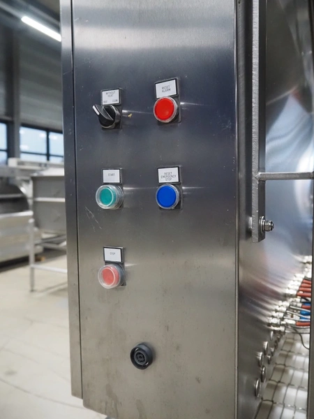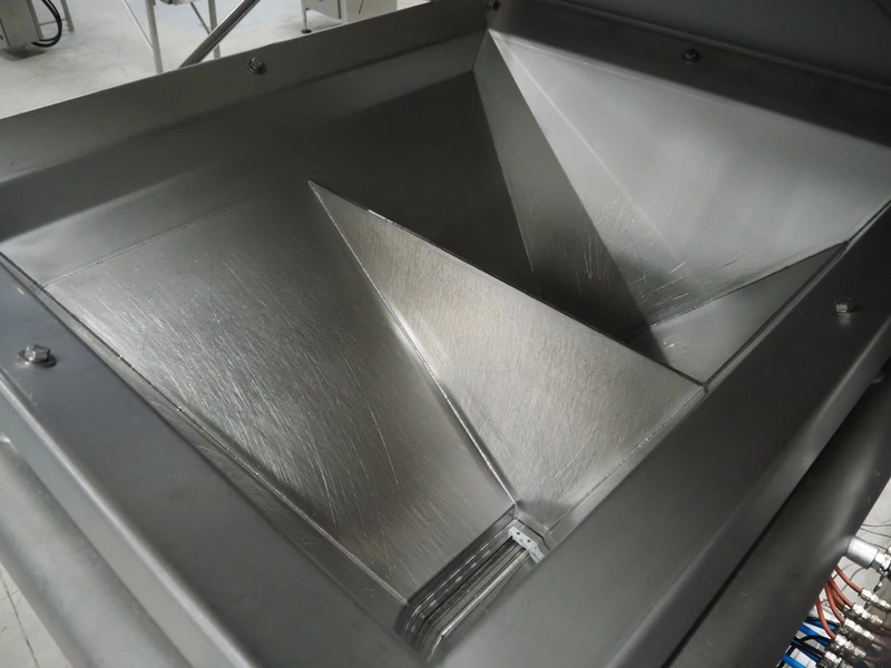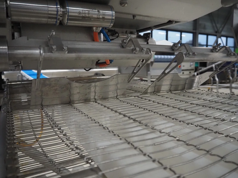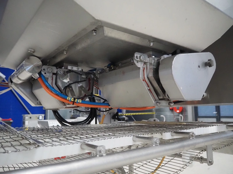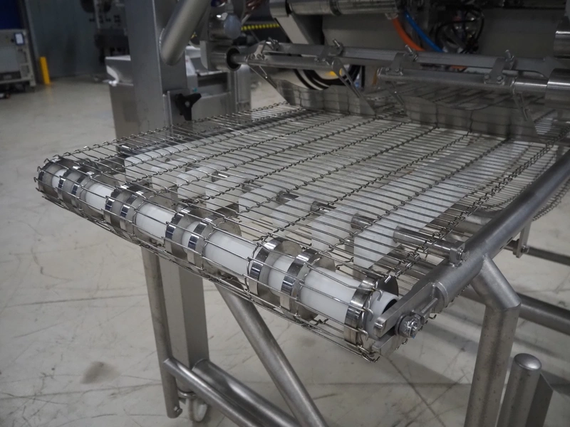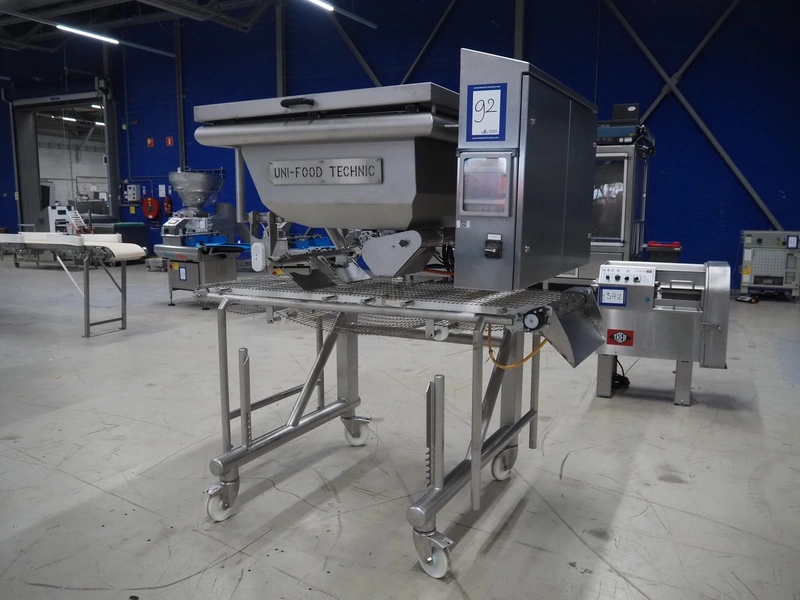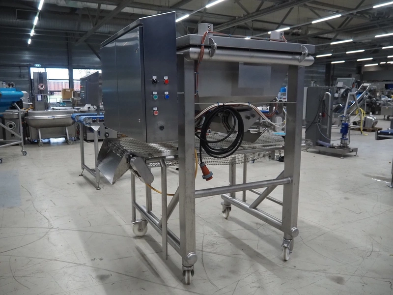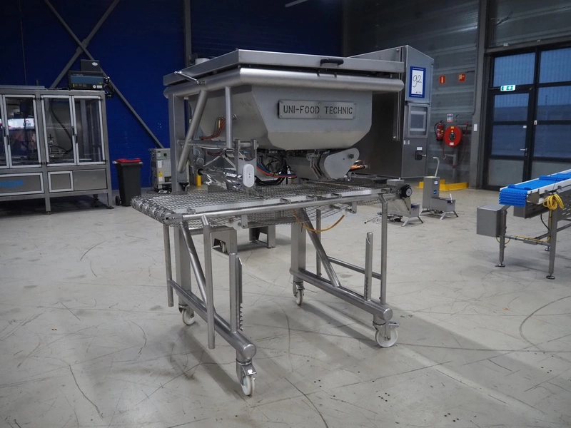 UNI-FOOD TECHNIC mobile depositor, s/s frame, s/s mesh belt, belt width: 710 mm, total dimensions: 1900 mm x 1300 mm x 2040 mm.