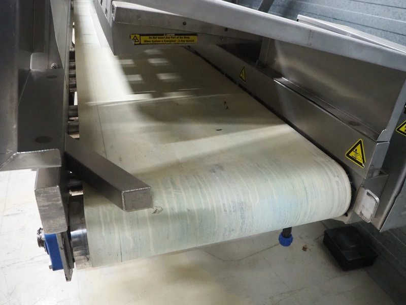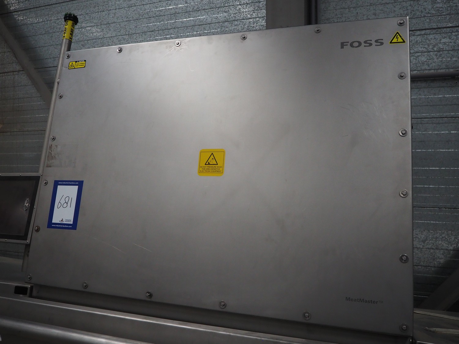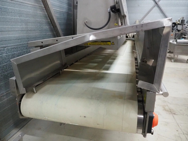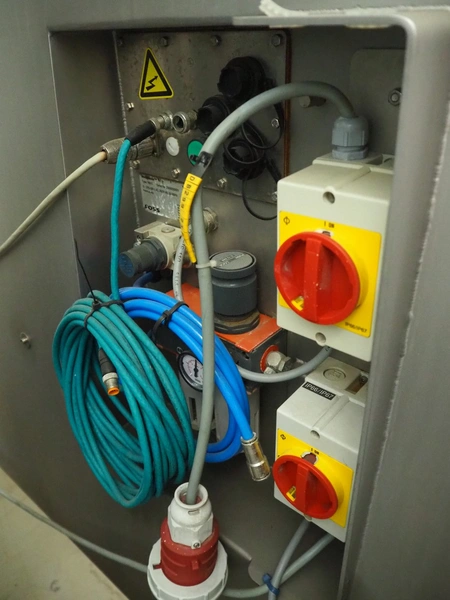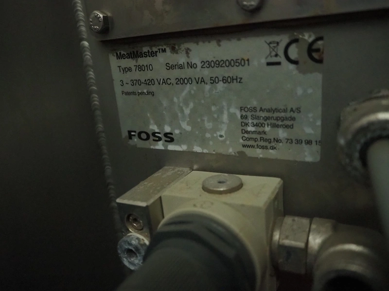 Foss mobile analyser, model: MeatMaster, type: 78010, serial number: 2309200501, 370-420 V, 3 Ph, 50-60 Hz, 2000 VA, plastic belt, belt width: 650 mm, total dimensions: 5350 mm x 1150 mm x 2700 mm. Screen damaged.