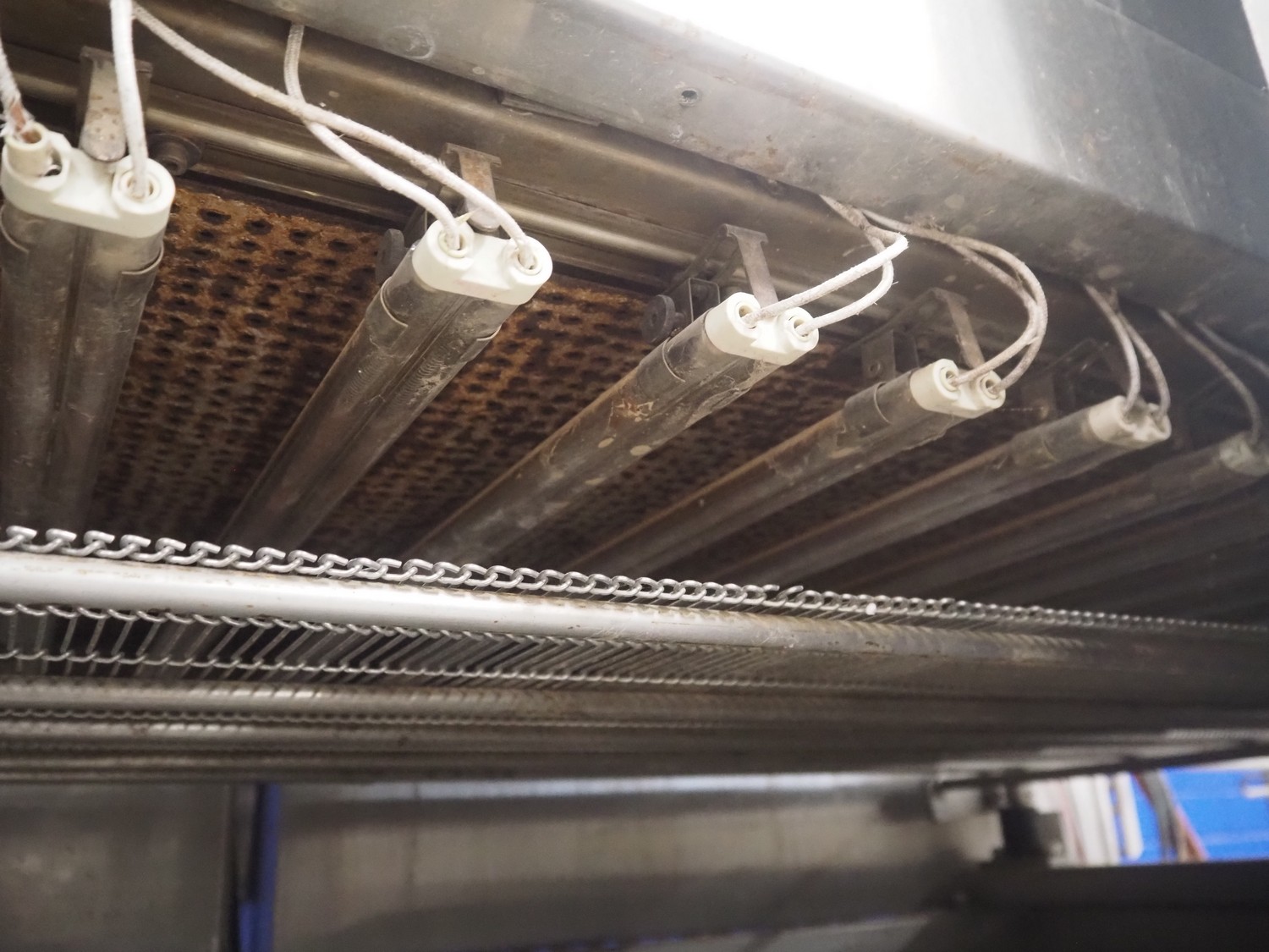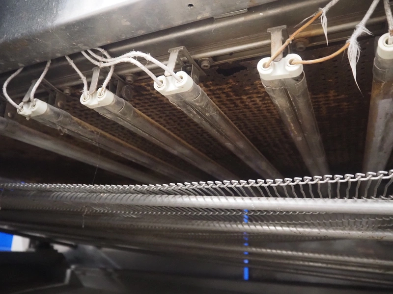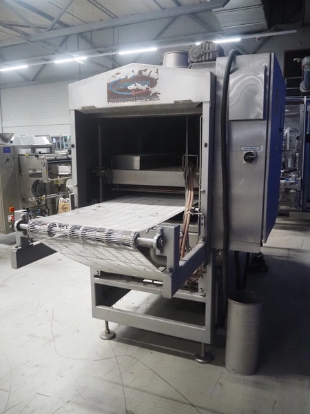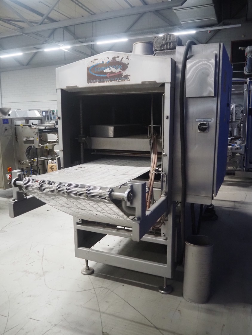 Formcook AB infrared conveyor grill, model: IR 6180401, year of construction: 2004, s/s mesh belt, belt width: 600 mm, total dimensions: 4150 mm x 1330 mm x 2400 mm