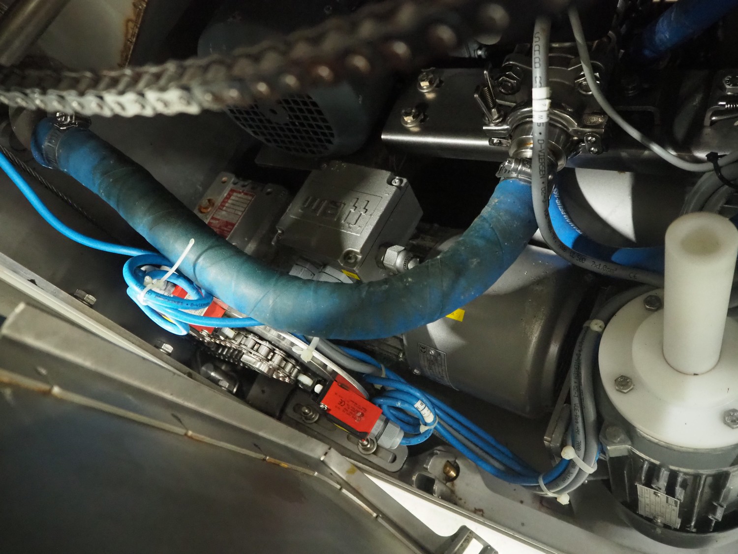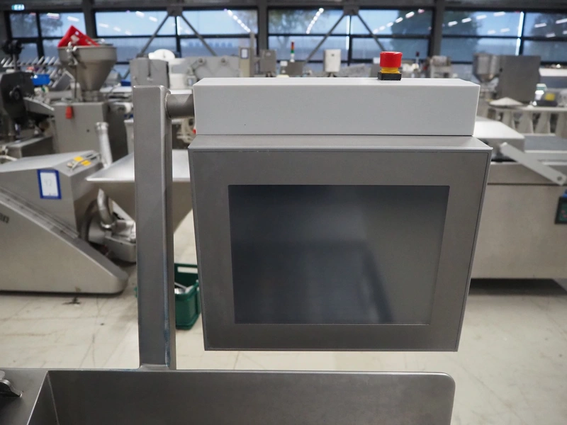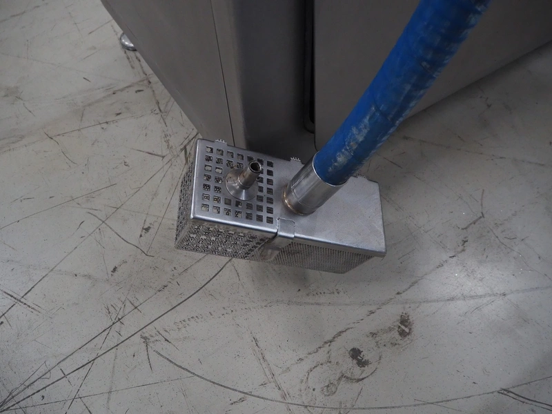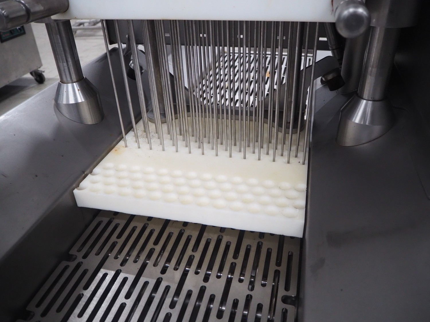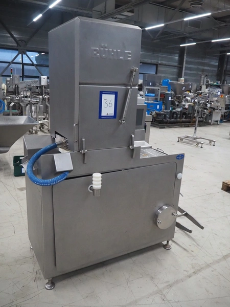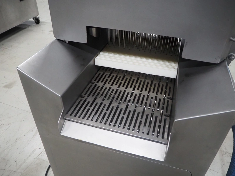 Rühle GmbH injector with lifter for crates, 56 needles, s/s walking beam, beam width: 340 mm, total dimensions: 1700 mm x 900 mm x 2000 mm.