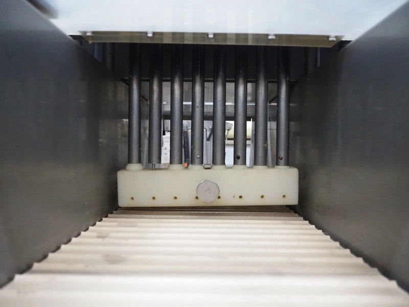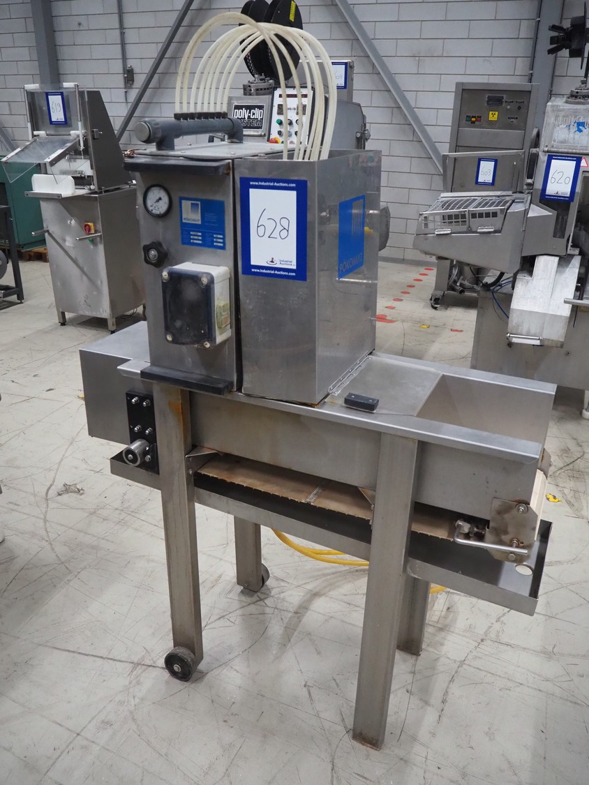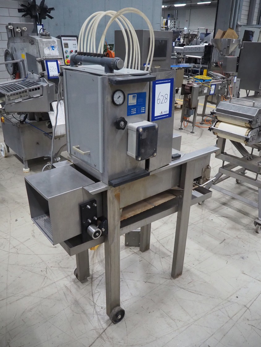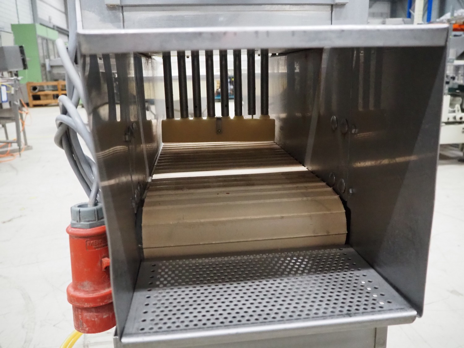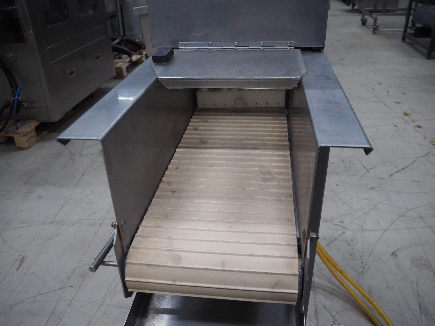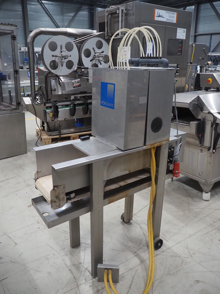 Pökomat mobile injector, type: P8/270, serial number: 335.1, 400 V, 1.5 A, 550 W, weight: 98 kg, 8 needles, plastic belt, belt width: 260 mm, total dimensions: 1250 mm x 500 mm x 1720 mm.
